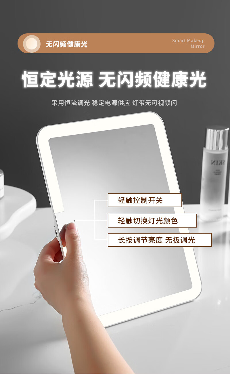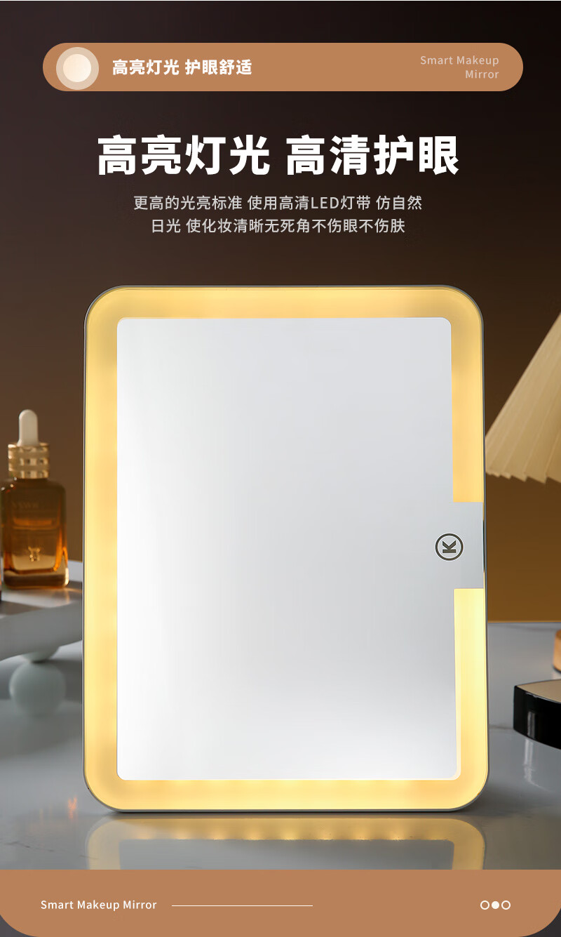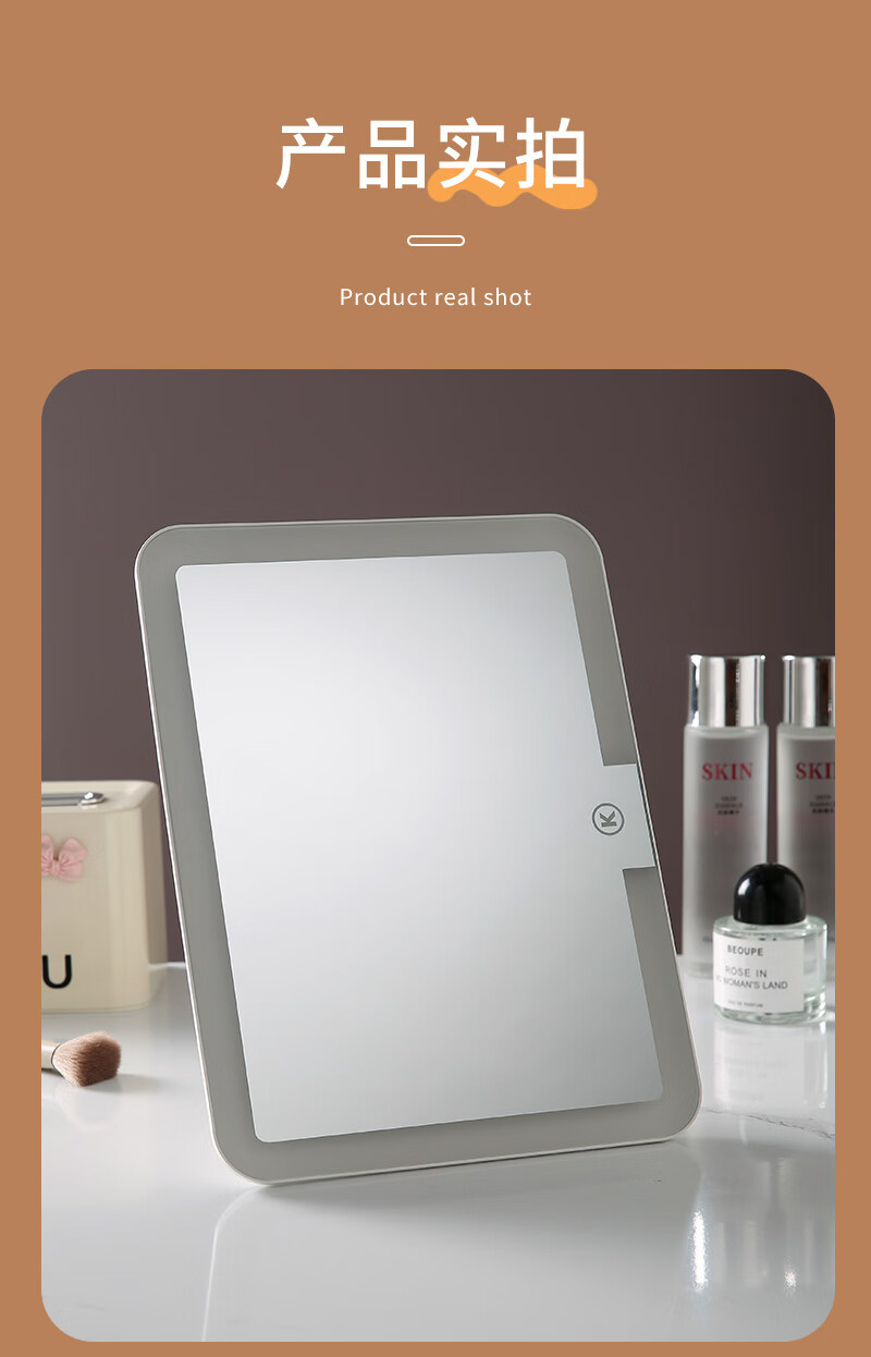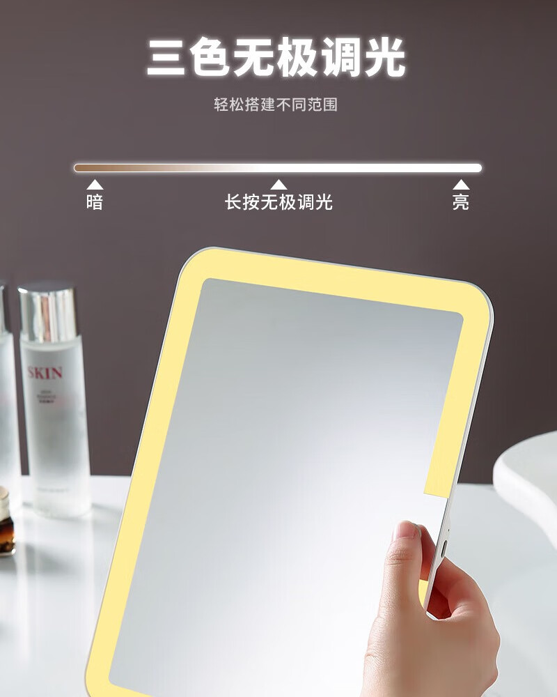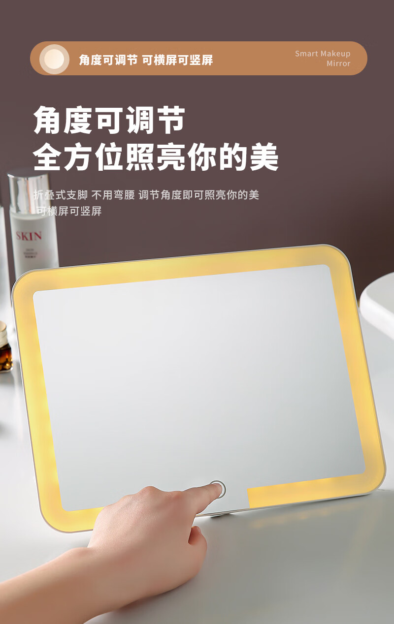 LED light makeup mirror extra large screen student dormitory desktop home desktop folding extra large LED light mirror dormitory gift for girls 10.5 inch extra large mirror 600 mAh