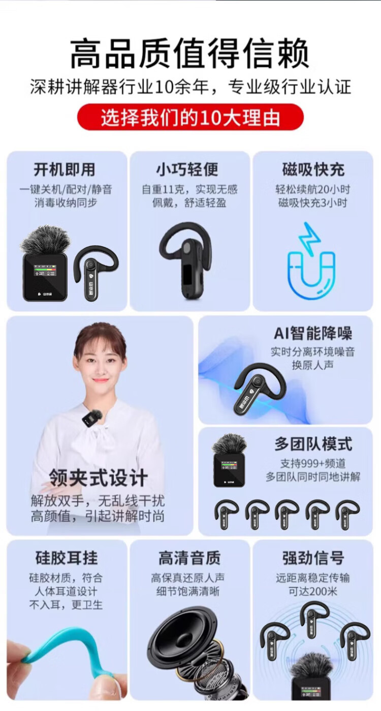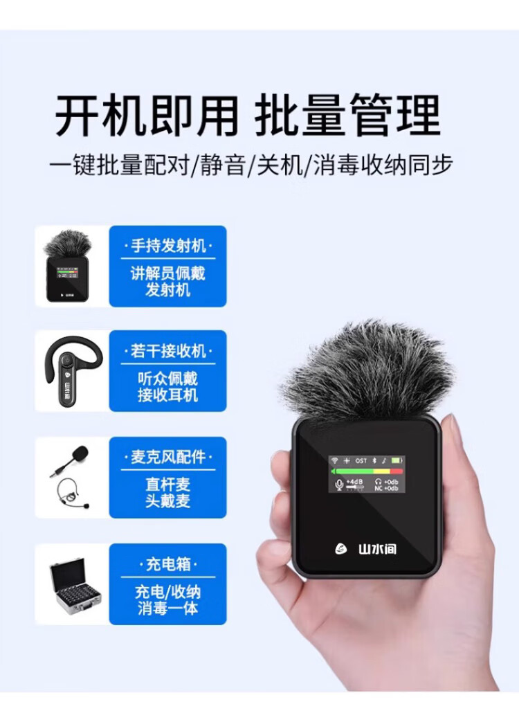 Landscape interpreter one-to-many government and enterprise reception important meeting official reception 30 people 50 people headphones wireless interpreter two transmitters + 50 receivers + charging and disinfection all-in-one box