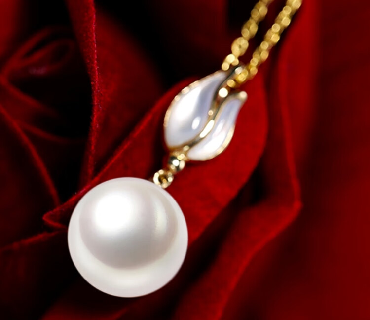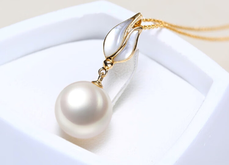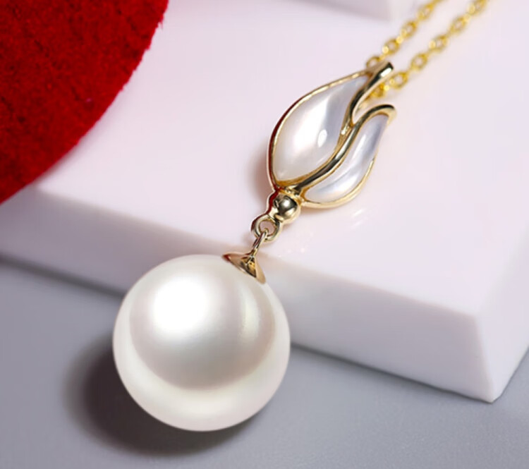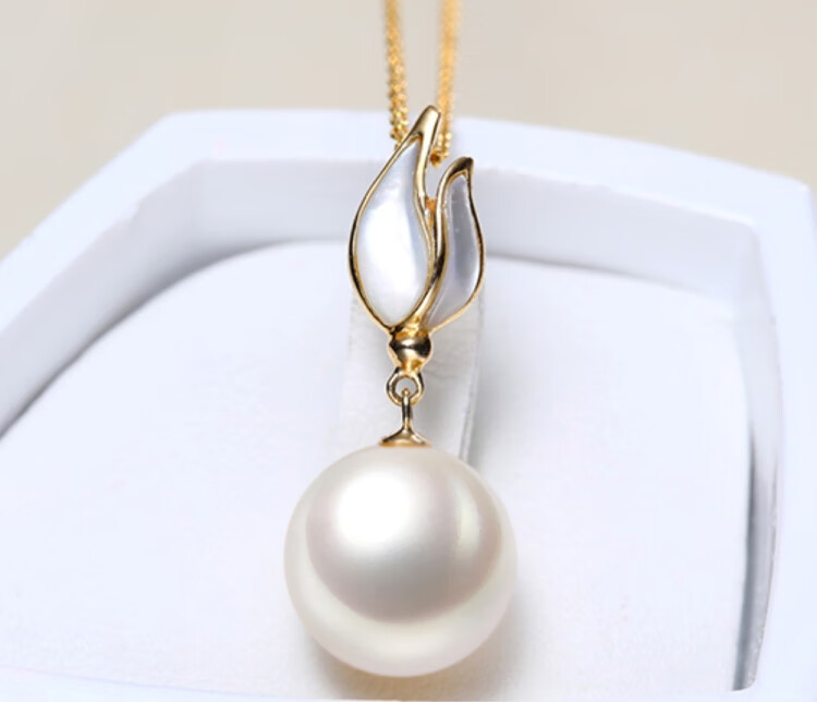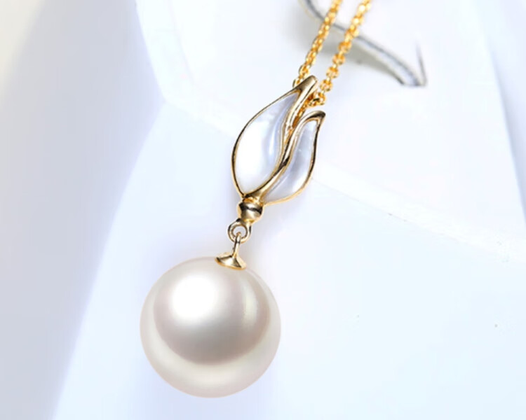 Bhiodha Nanzhu Family True Round White Freshwater Pearl Gold Inlaid High Quality Mother-of-Pearl Tulip Style Pendant 100-110mm