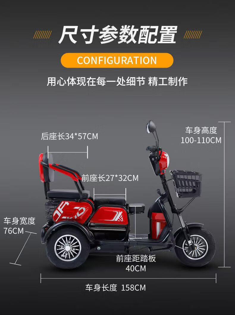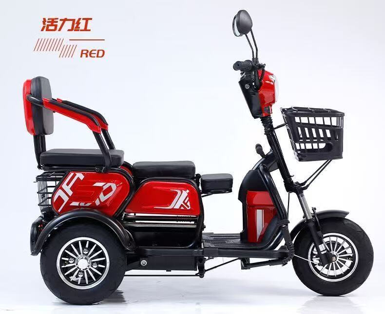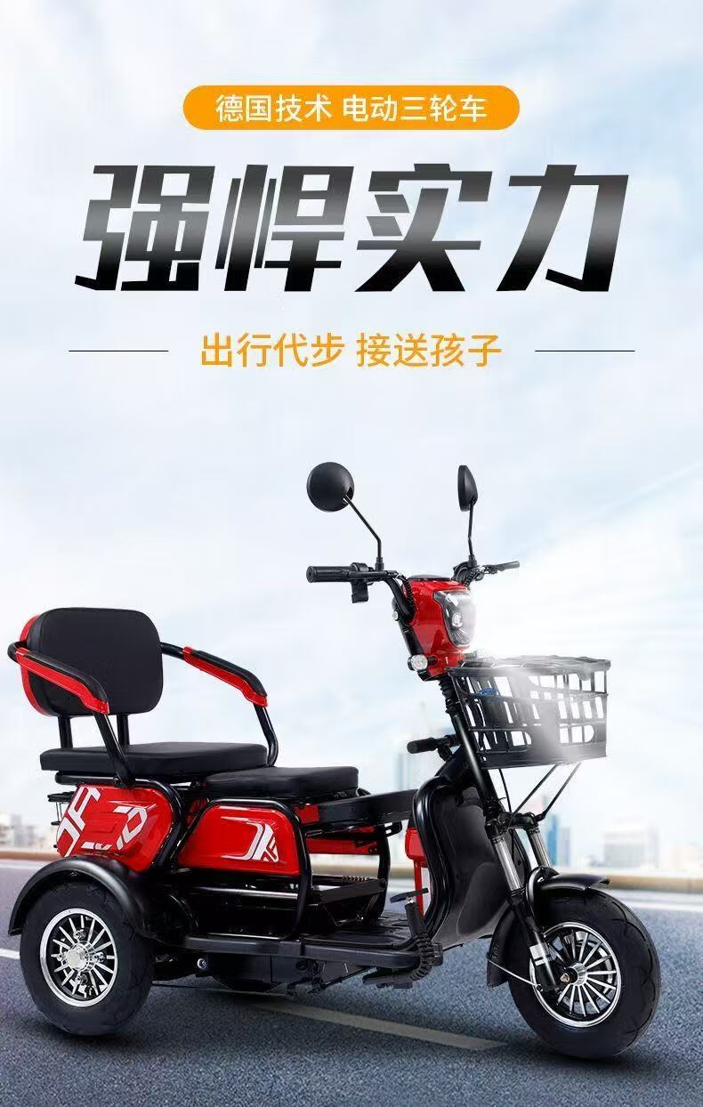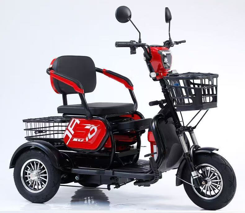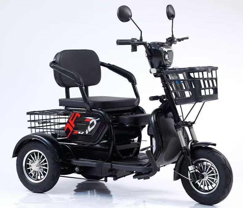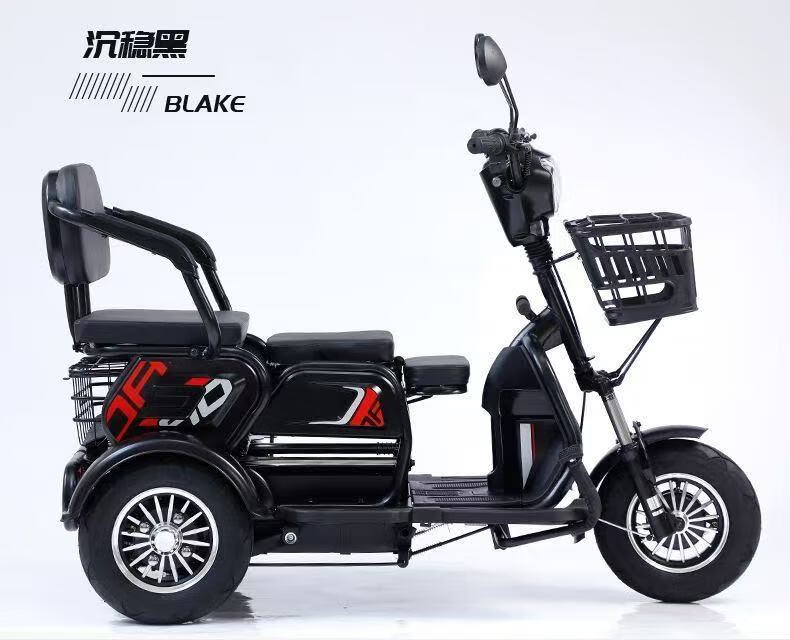 New electric tricycle for home use, lightweight and small, mobility scooter for the elderly, parent-child and ladies' electric scooter for picking up and dropping off children, black 48V lithium battery, 30 Ah - battery life of about 120 miles