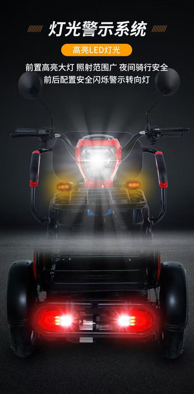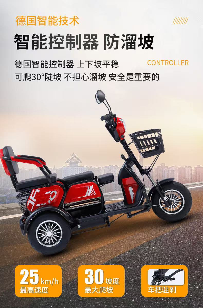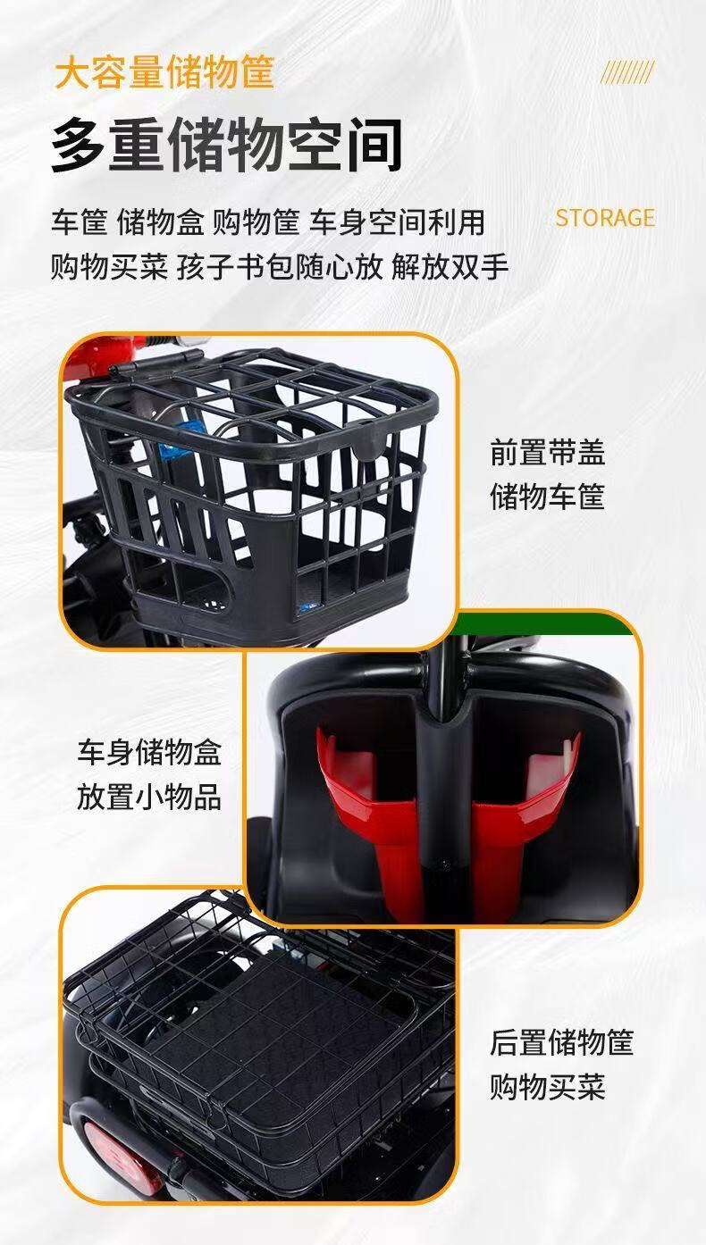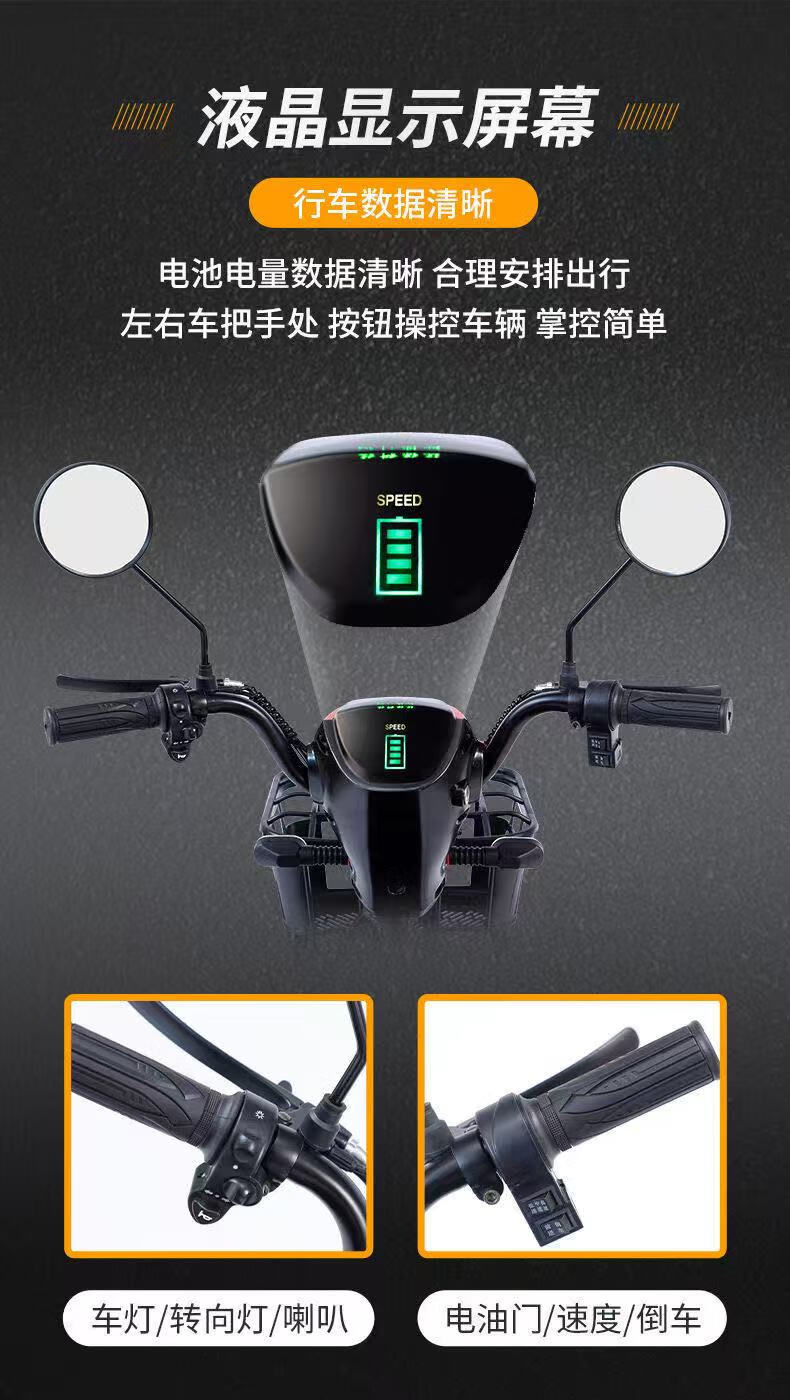 New electric tricycle for home use, lightweight and small, mobility scooter for the elderly, parent-child and ladies' electric scooter for picking up and dropping off children, black 48V lithium battery, 30 Ah - battery life of about 120 miles