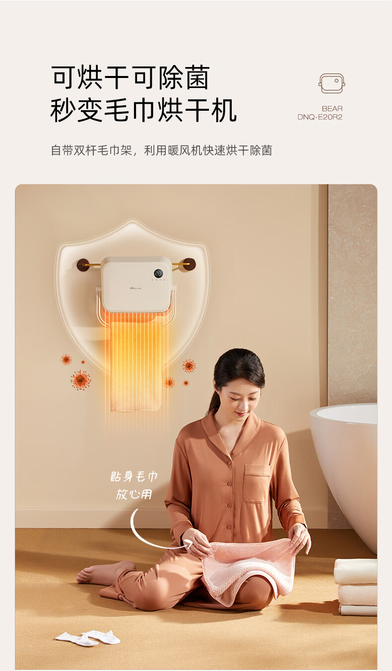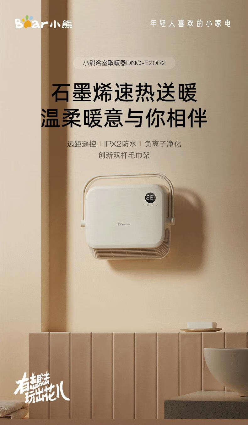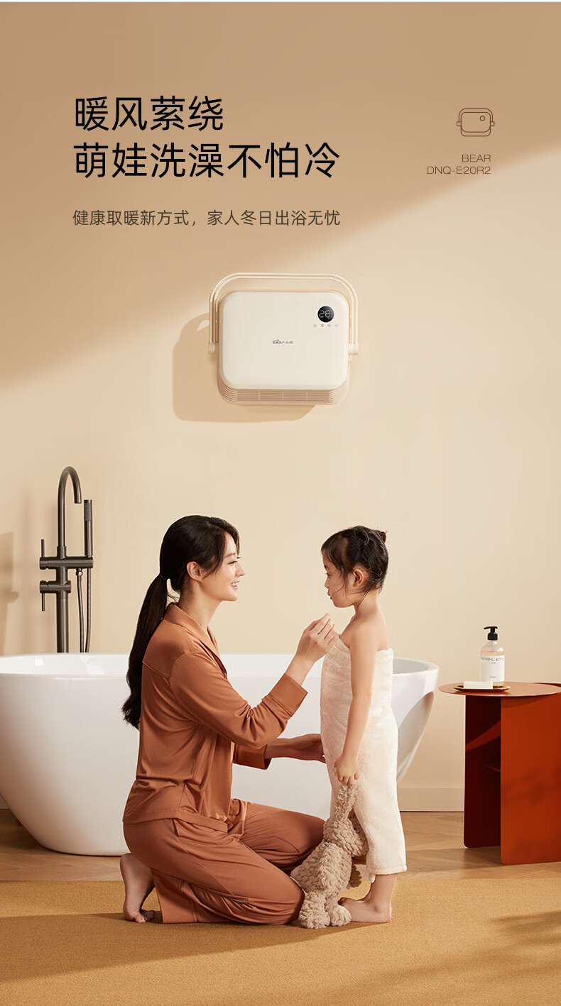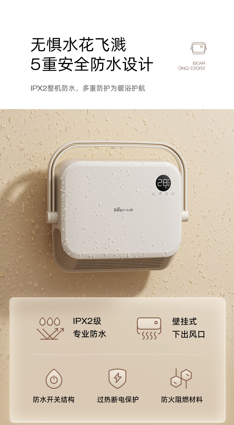 Bear Heater Bathroom Heater Fan Home Bathroom Bath Wall-mounted Graphene Bath Heater Electric Heater Beige Knob Mechanical Model + Three-speed Temperature Adjustment + IPX2 Waterproof