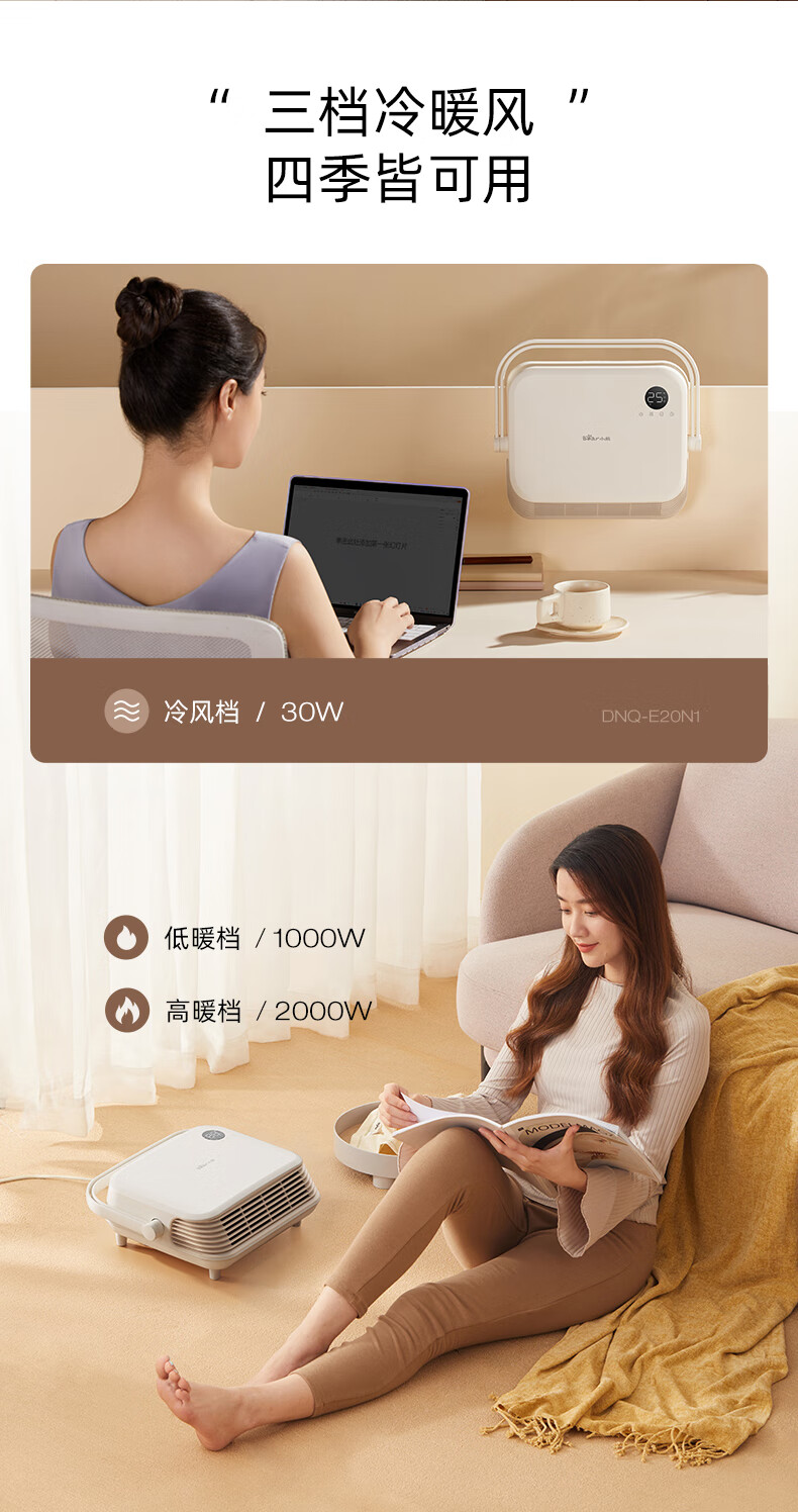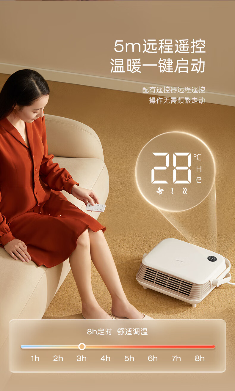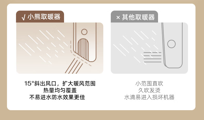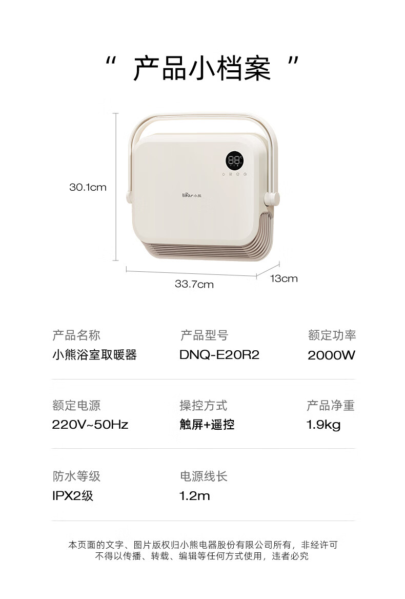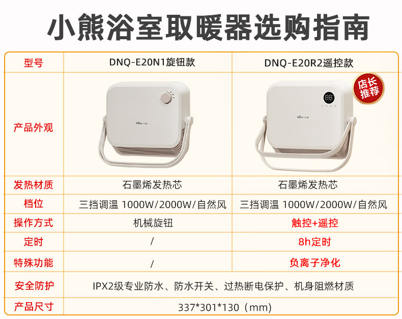 Bear Heater Bathroom Heater Fan Home Bathroom Bath Wall-mounted Graphene Bath Heater Electric Heater Beige Knob Mechanical Model + Three-speed Temperature Adjustment + IPX2 Waterproof
