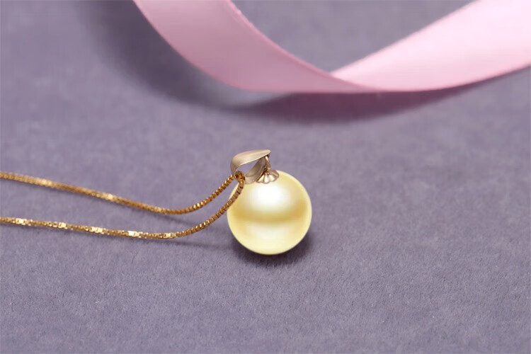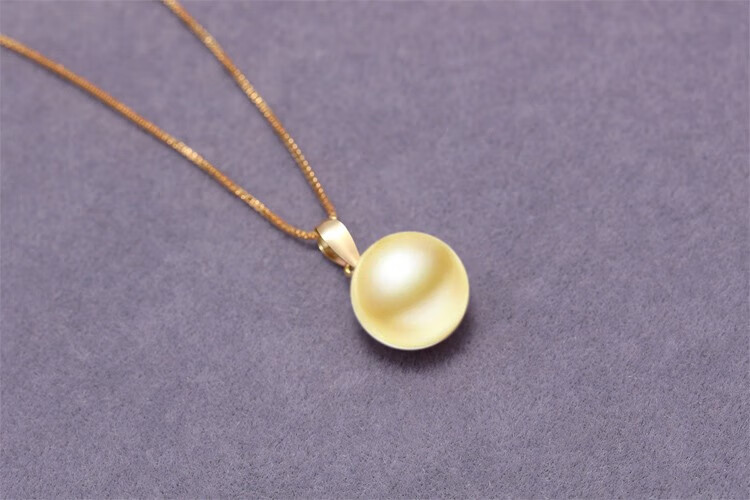 Bhiodha Nanzhu Family Light Gold South Sea Pearl Pendant Gold Simple South Sea Gold Beads for Mom’s Birthday Gift 100-110mm