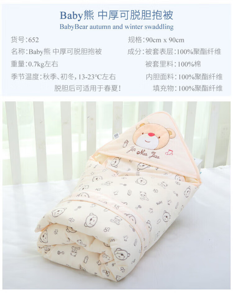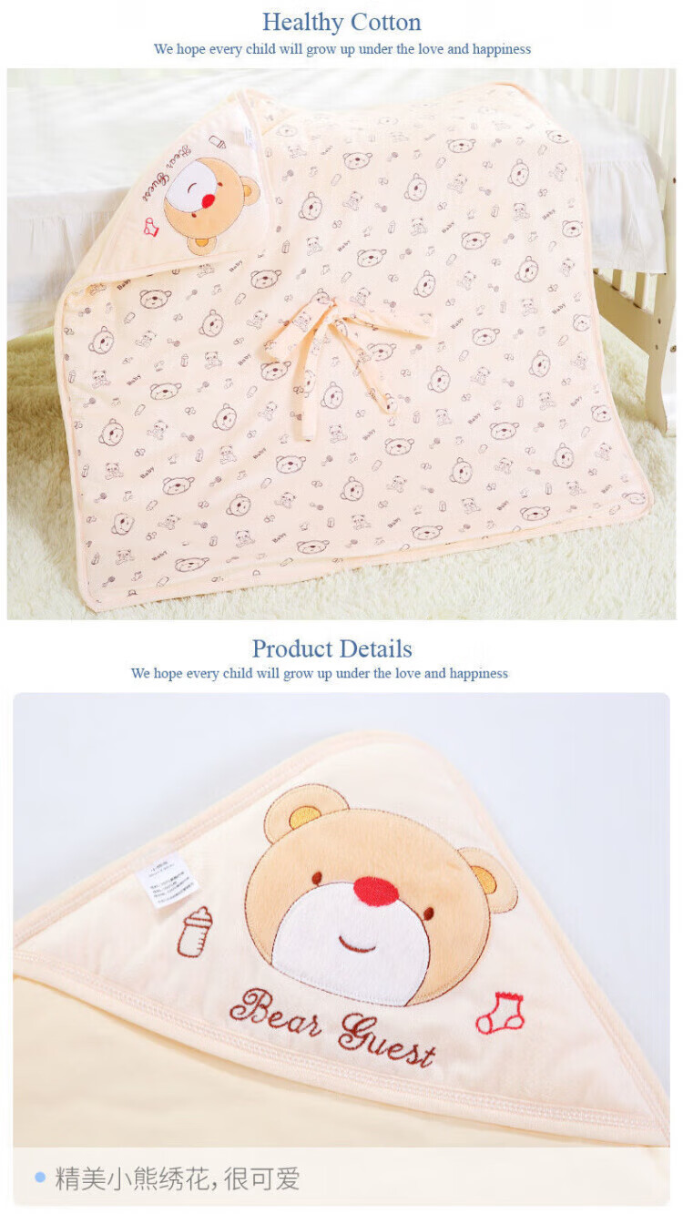 Meifei Newborn Autumn and Winter Pure Cotton Baby Quilt Baby Supplies Spring Wrap Quilt Newborn Wrap Plus Spring and Autumn Thin Quilted Bear Powder