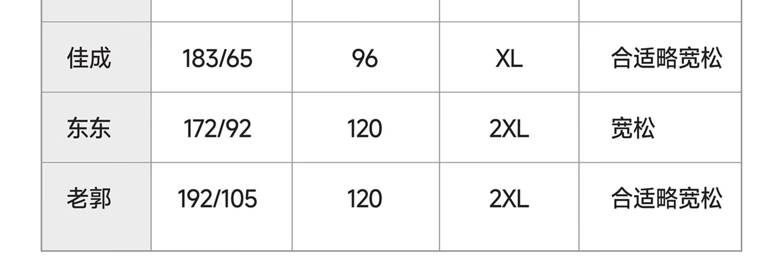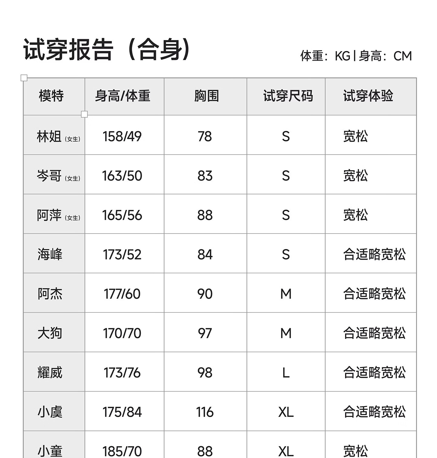China (cm) 165 / 88-90 170 / 96-98 175 / 108-110 180 / 118-122 185 / 126-130