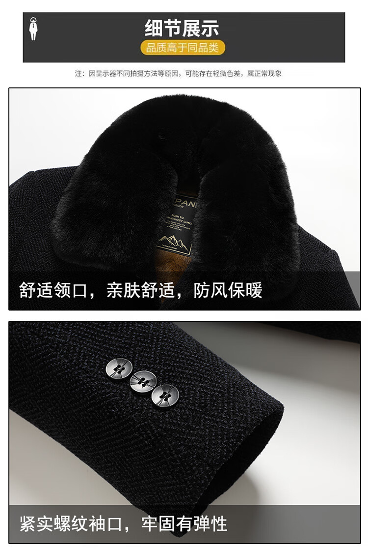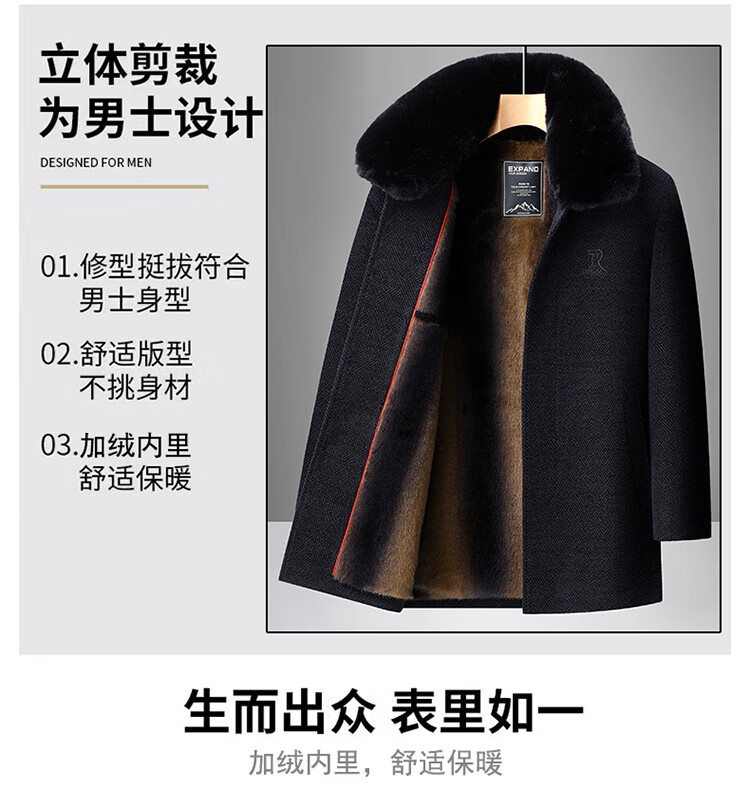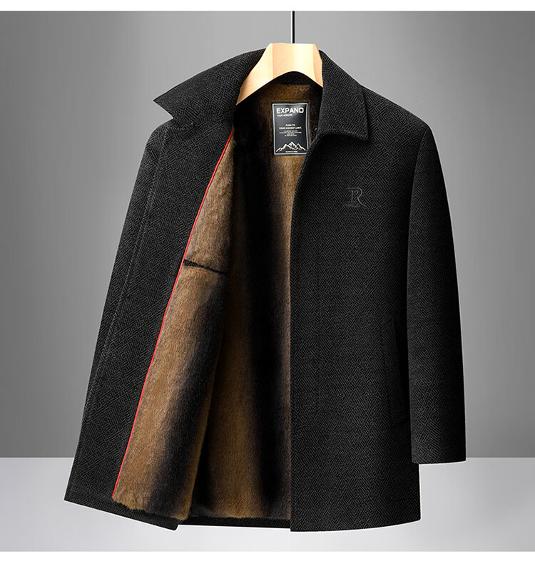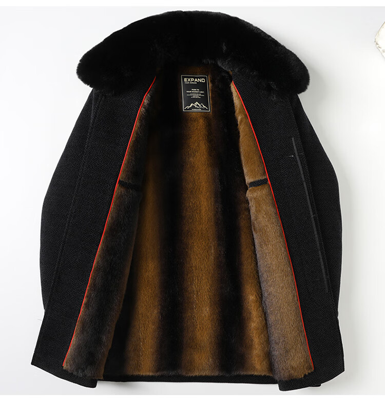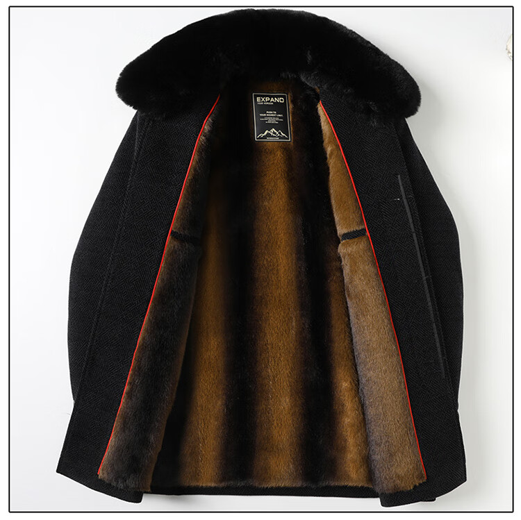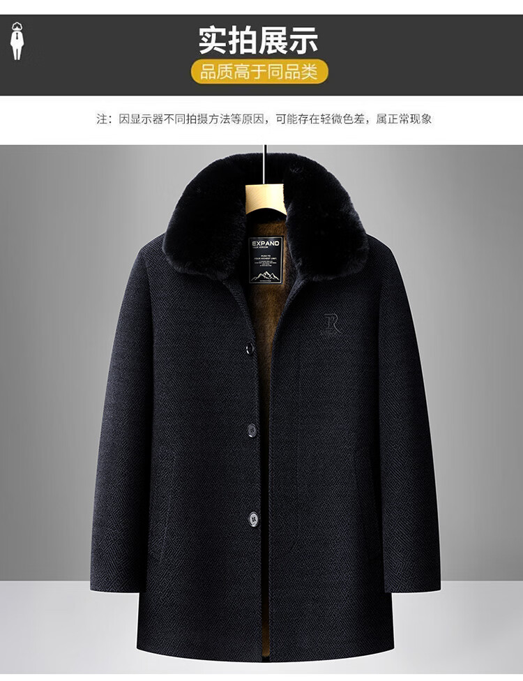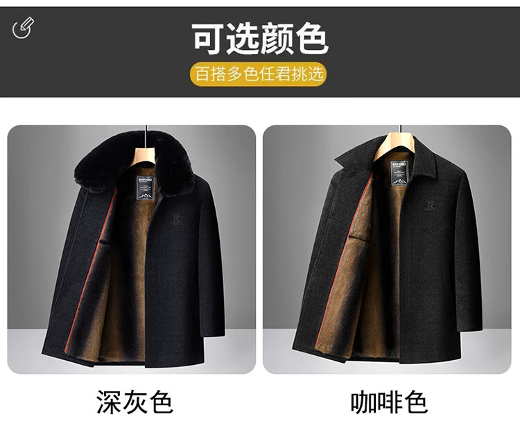 Xiaolilang new winter new lapel plus velvet thickening mid-length dad detachable fur collar jacket coffee color 4XL 195