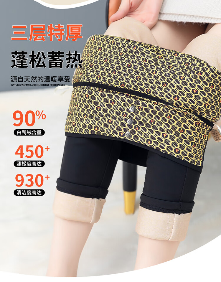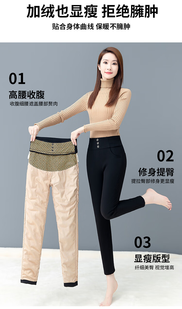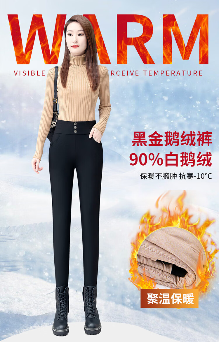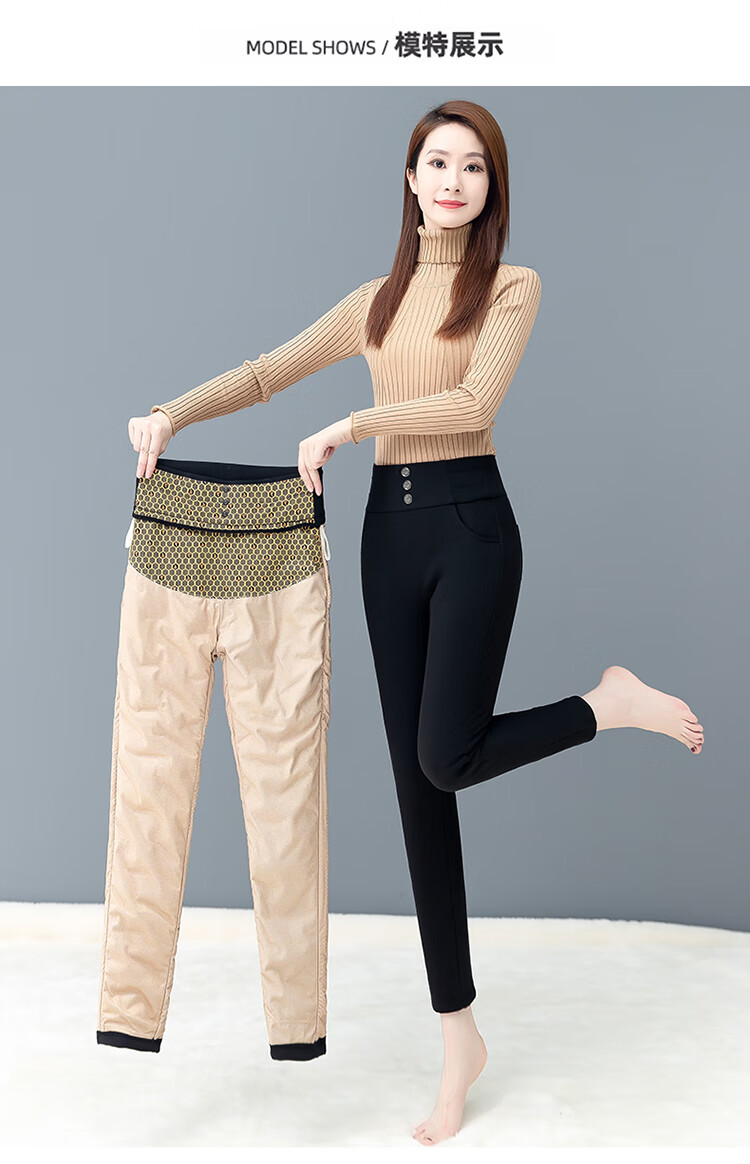 Flying white goose down pants for women in the snow 2025 new winter warm cotton pants high waist slim stretch slim pencil pants minus 40 degree cold weather pants black_Front goose down + back camel down M_Recommended weight 80-95Jin Jin is equal to 0.5 kg Down pants for small people