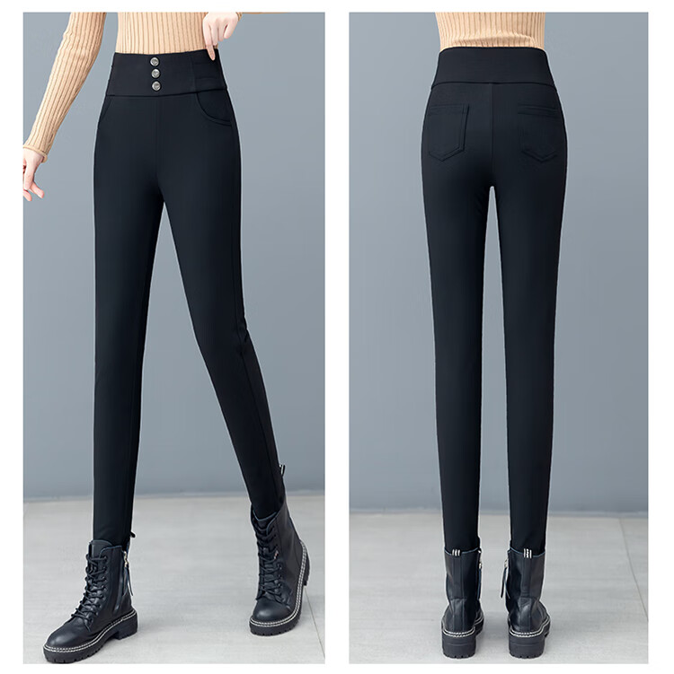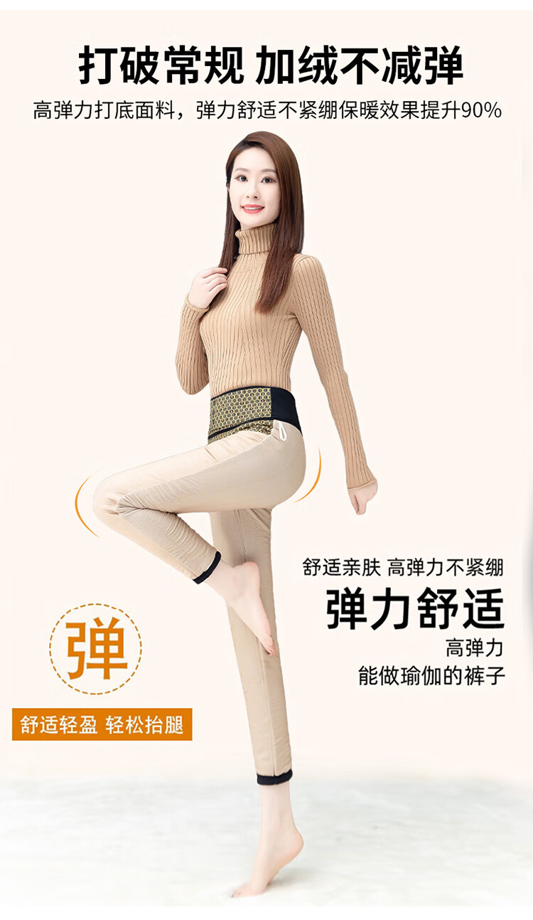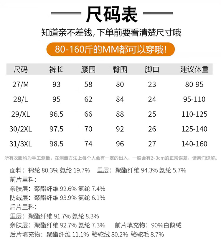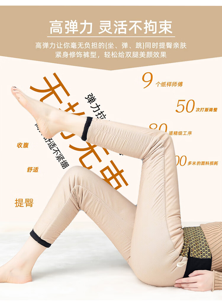 Flying white goose down pants for women in the snow 2025 new winter warm cotton pants high waist slim stretch slim pencil pants minus 40 degree cold weather pants black_Front goose down + back camel down M_Recommended weight 80-95Jin Jin is equal to 0.5 kg Down pants for small people