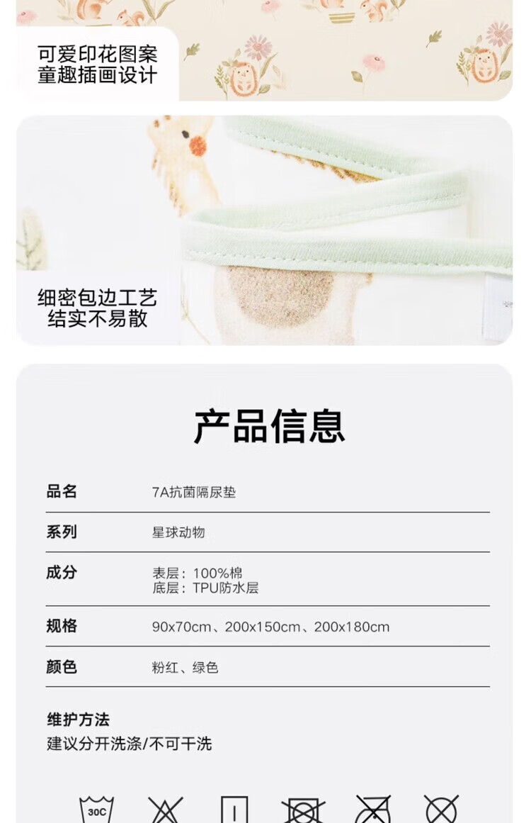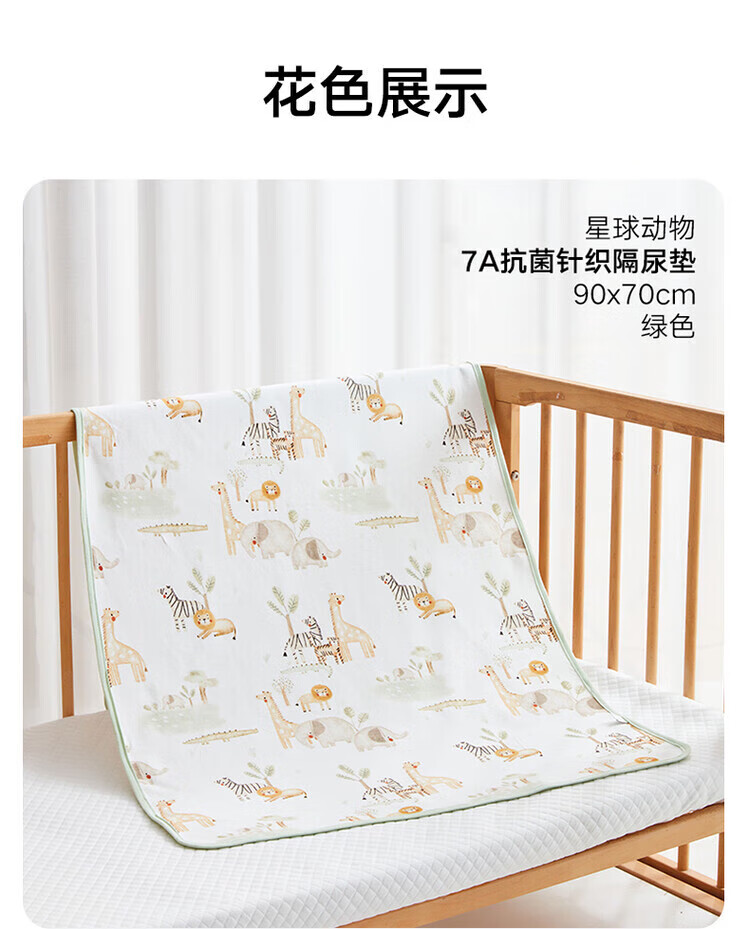 Goodbaby (gb) baby changing pad sheet Simmons mattress protector washable antibacterial breathable and waterproof Planet Animal-Green 90*70cm