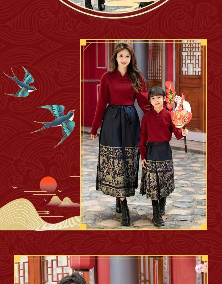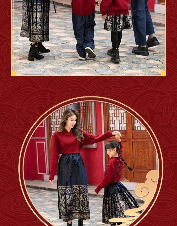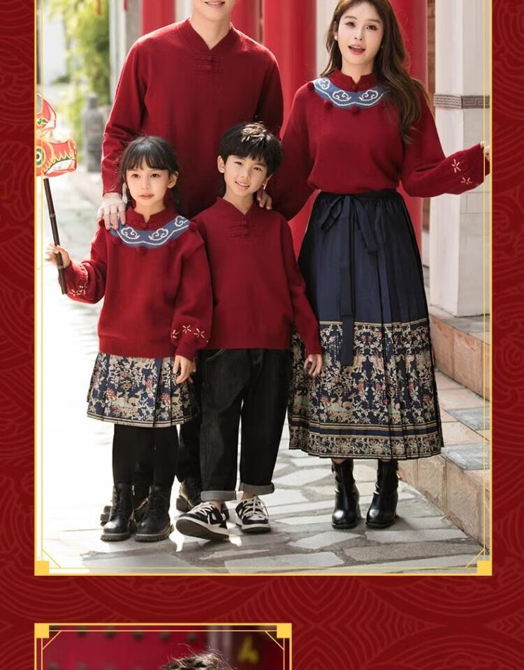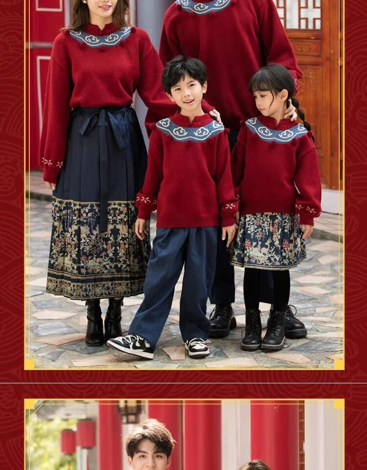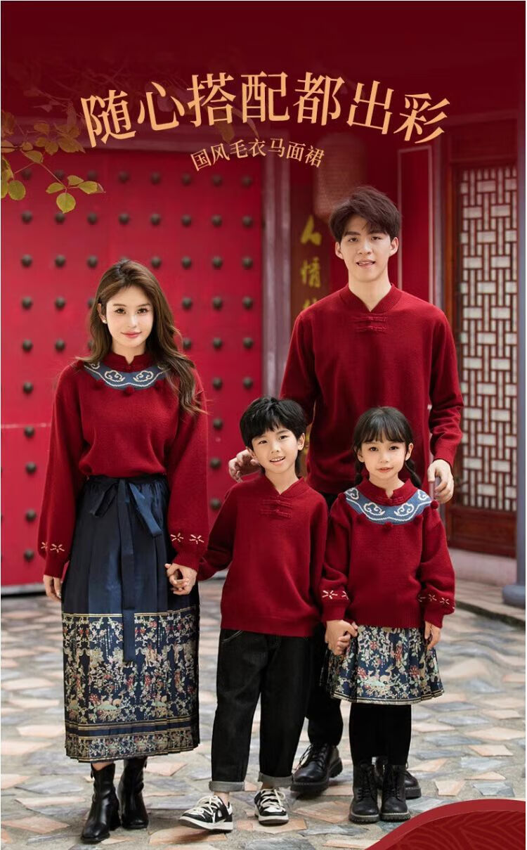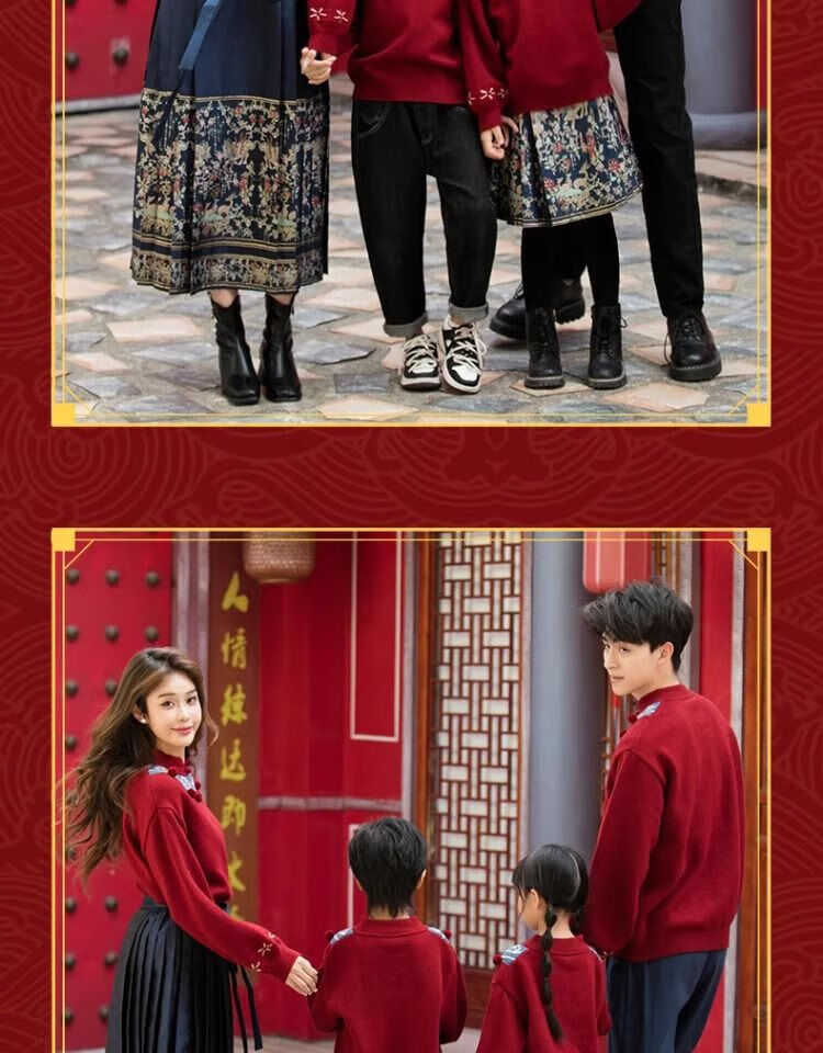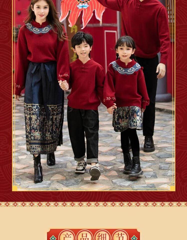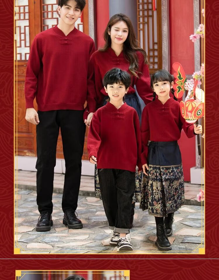 Remtin high-end autumn and winter parent-child clothing for a family of three and four. Horse-faced skirts for the Year of the Dragon. New Year's greetings clothes. 2025 red. Red. Handicapped style. 170. Mom size M (single jacket/90Jin Jin is equal to 0.5kg -130Jin Jin is equal to 0.5kg)