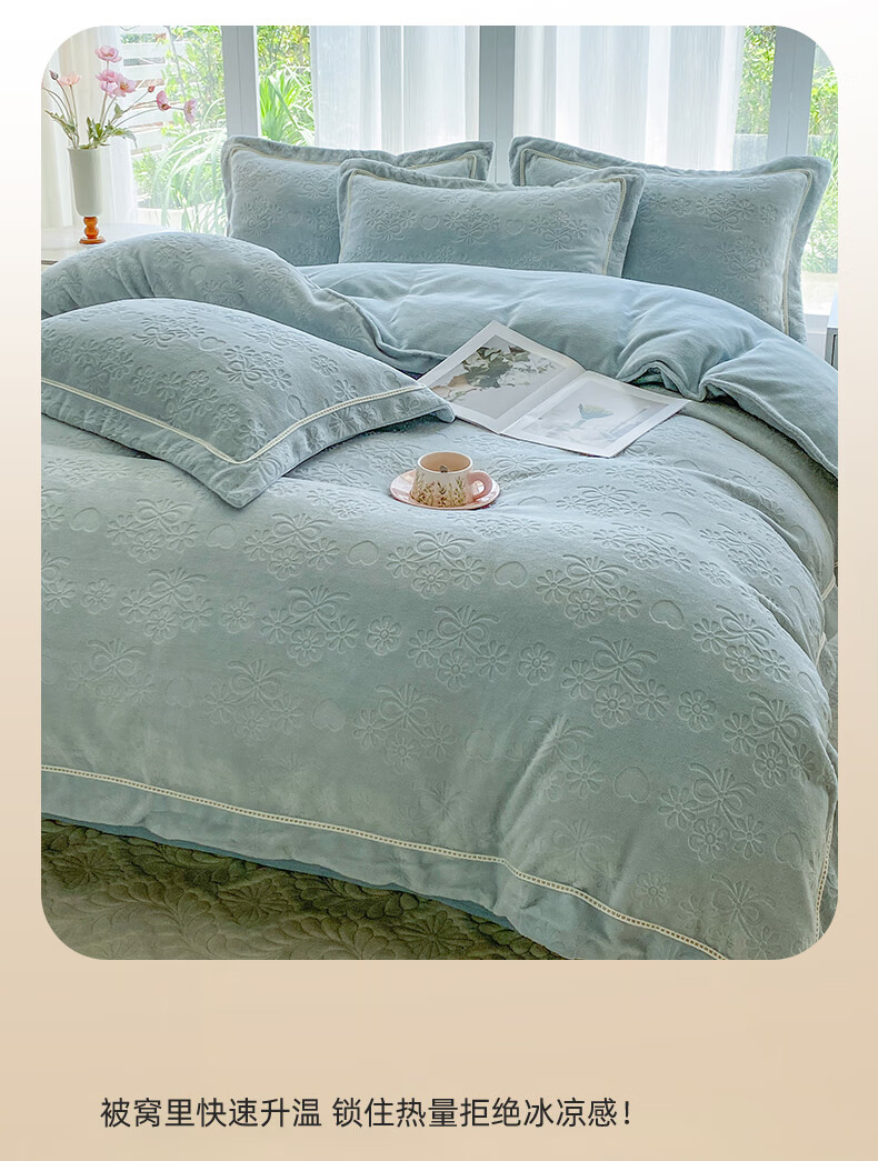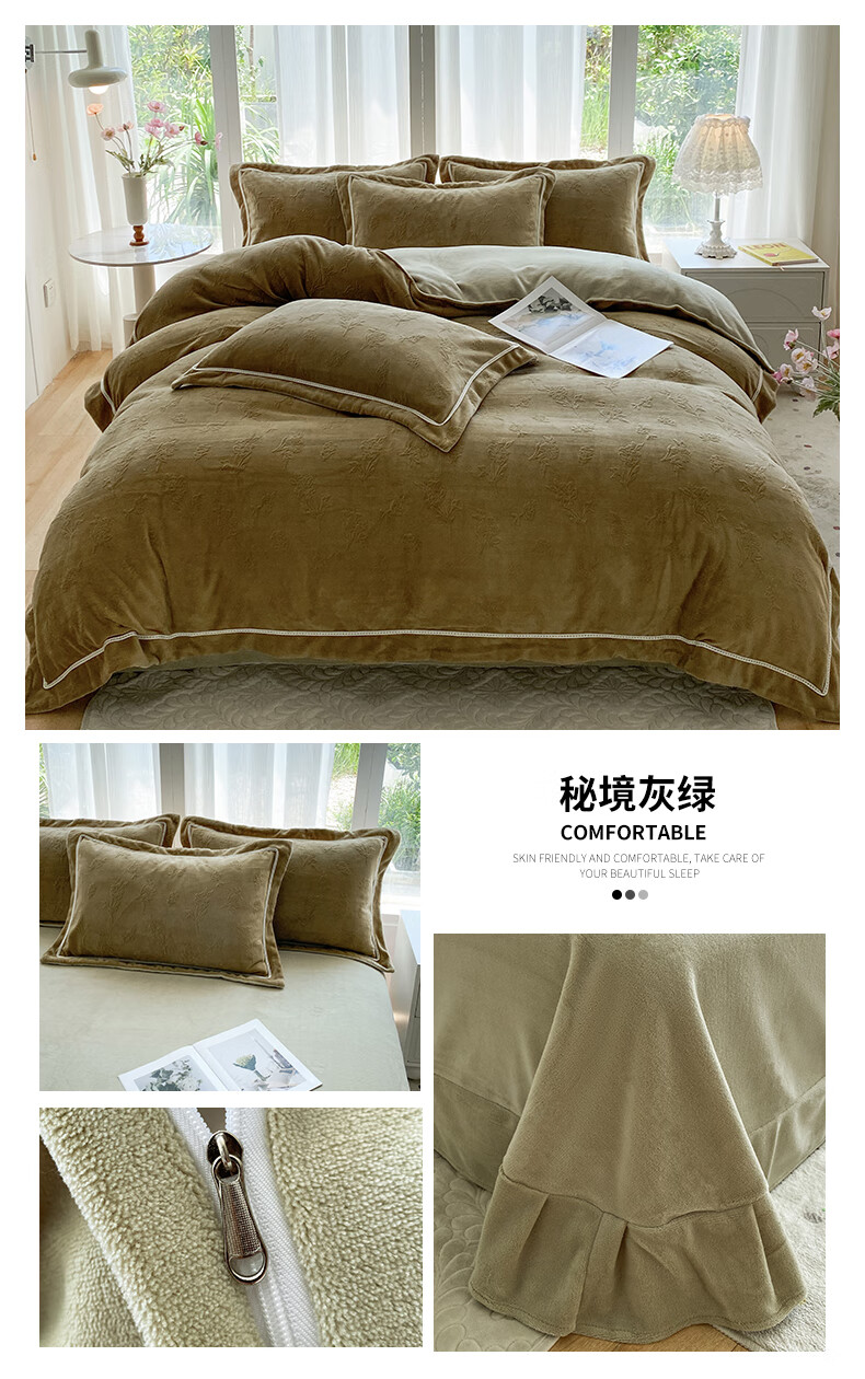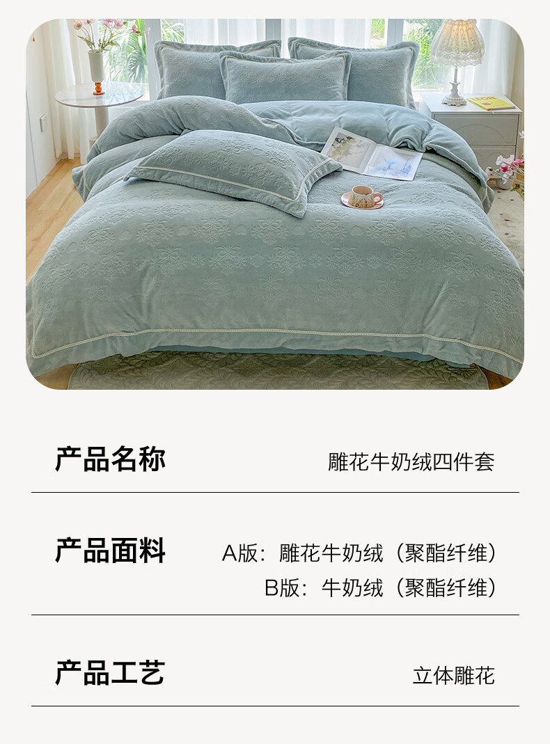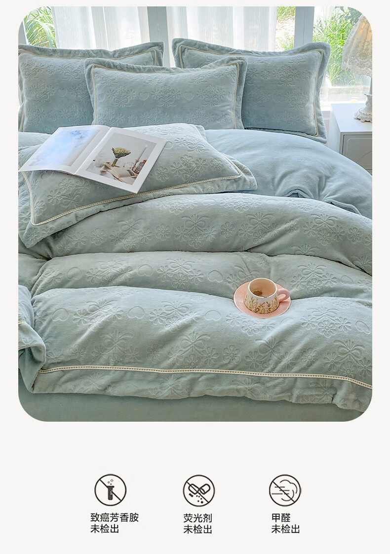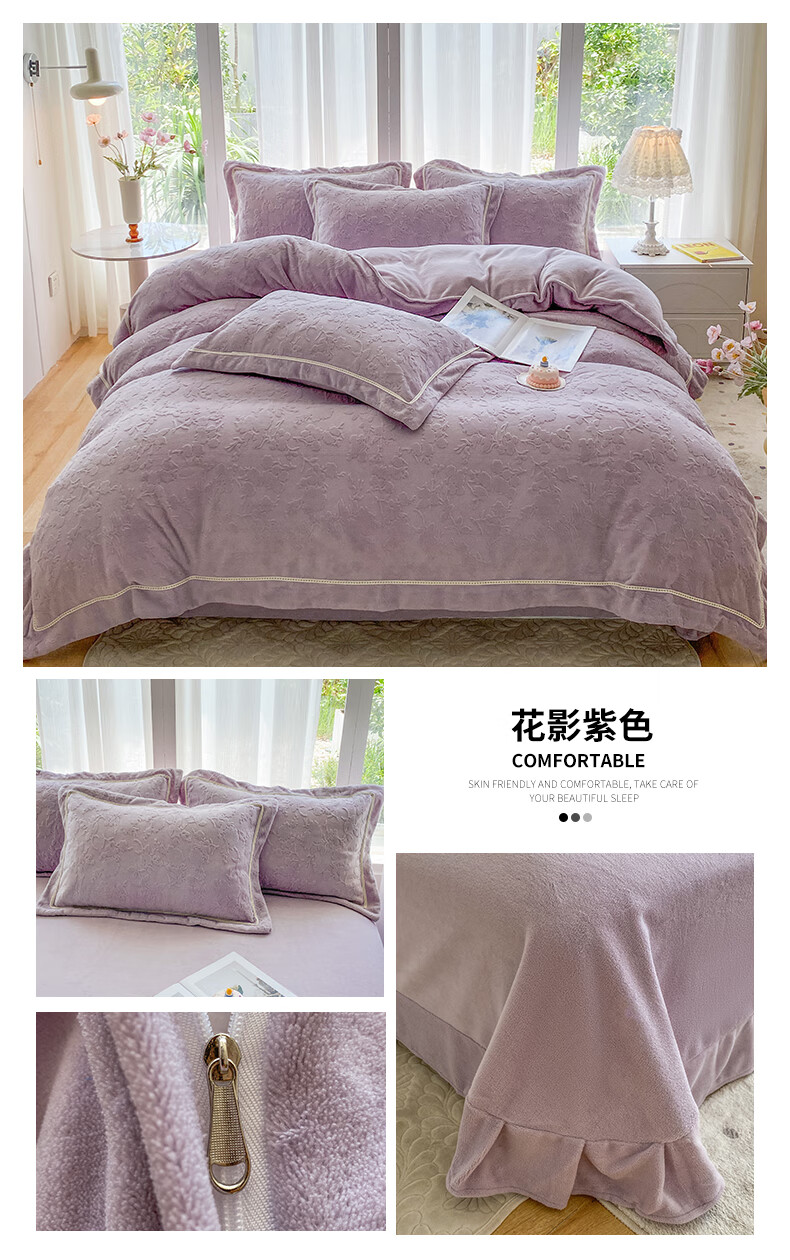 Violet (Violet) new type A carved milk velvet four-piece set high-density short-hair baby velvet coral velvet quilt cover sheet sheet bed sheet style 1.5 four-piece set-quilt cover 200cm*230cm