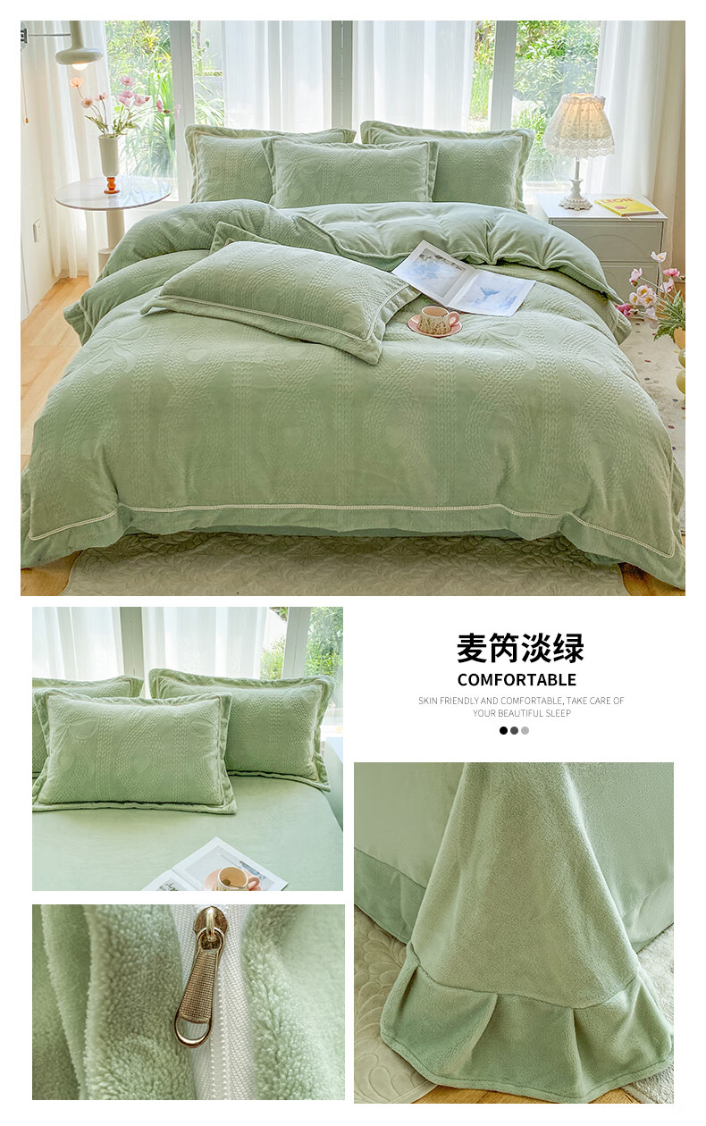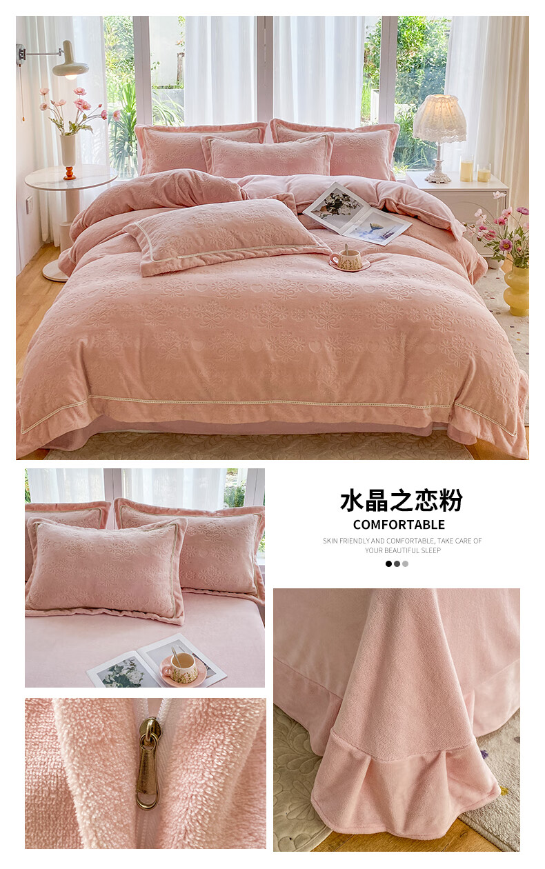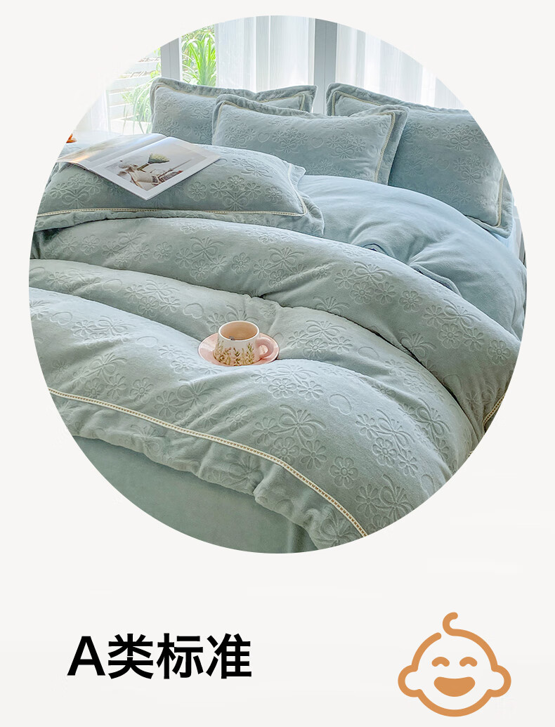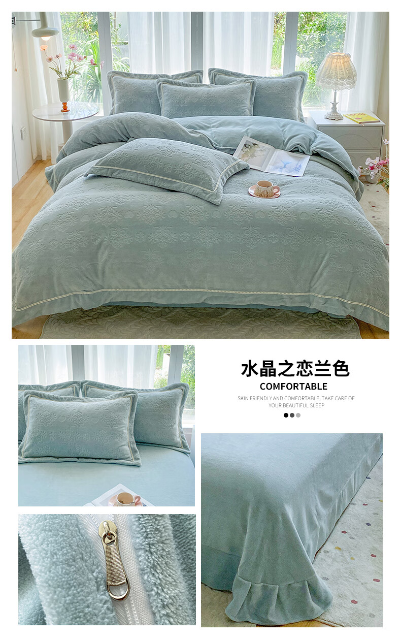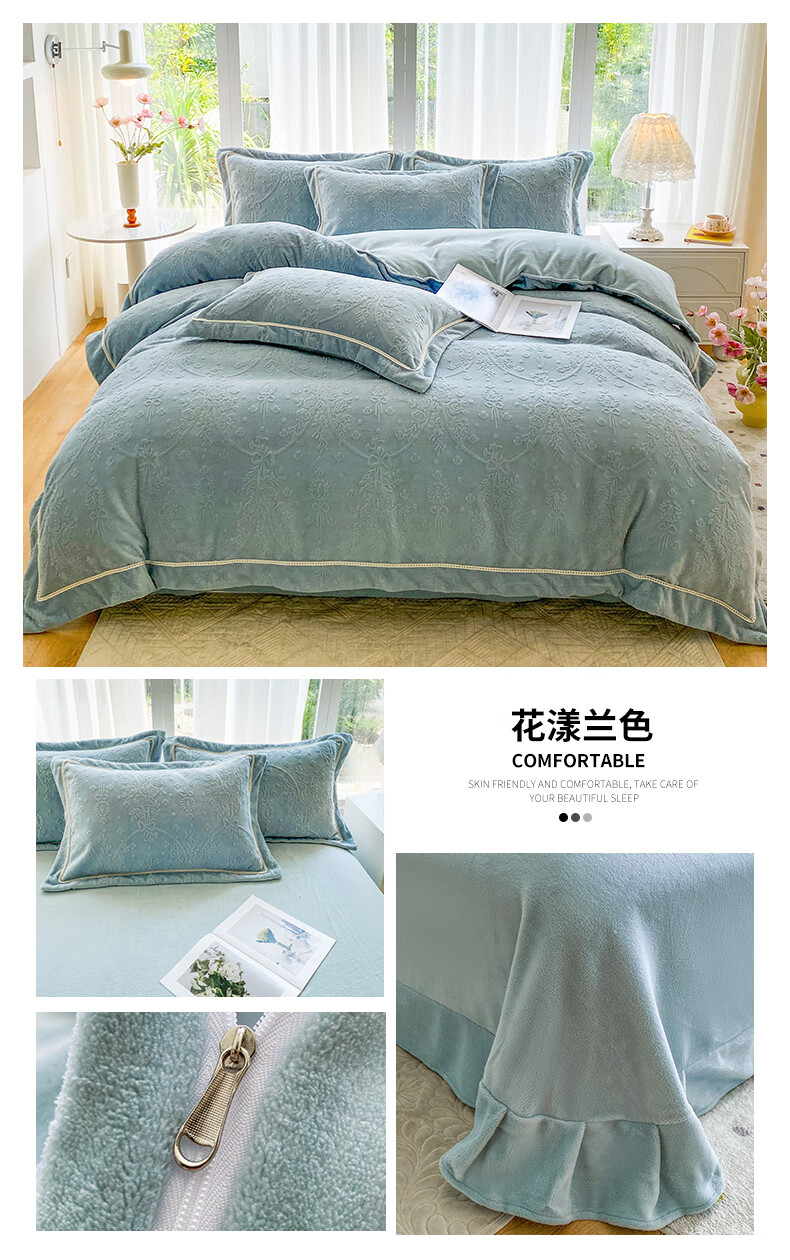 Violet (Violet) new type A carved milk velvet four-piece set high-density short-hair baby velvet coral velvet quilt cover sheet sheet bed sheet style 1.5 four-piece set-quilt cover 200cm*230cm