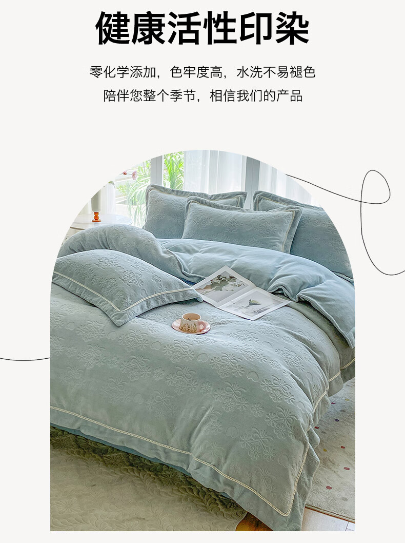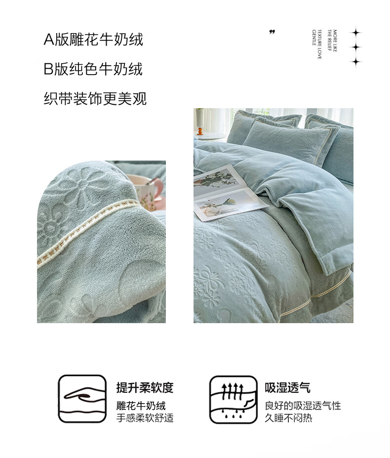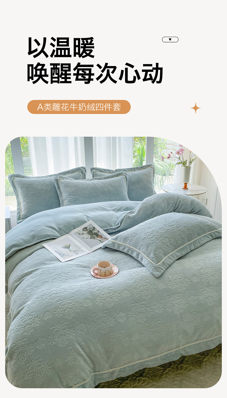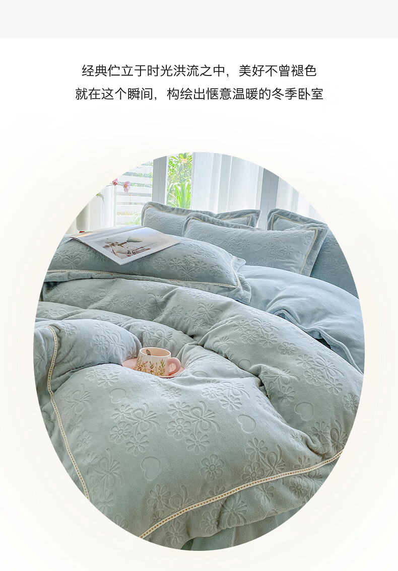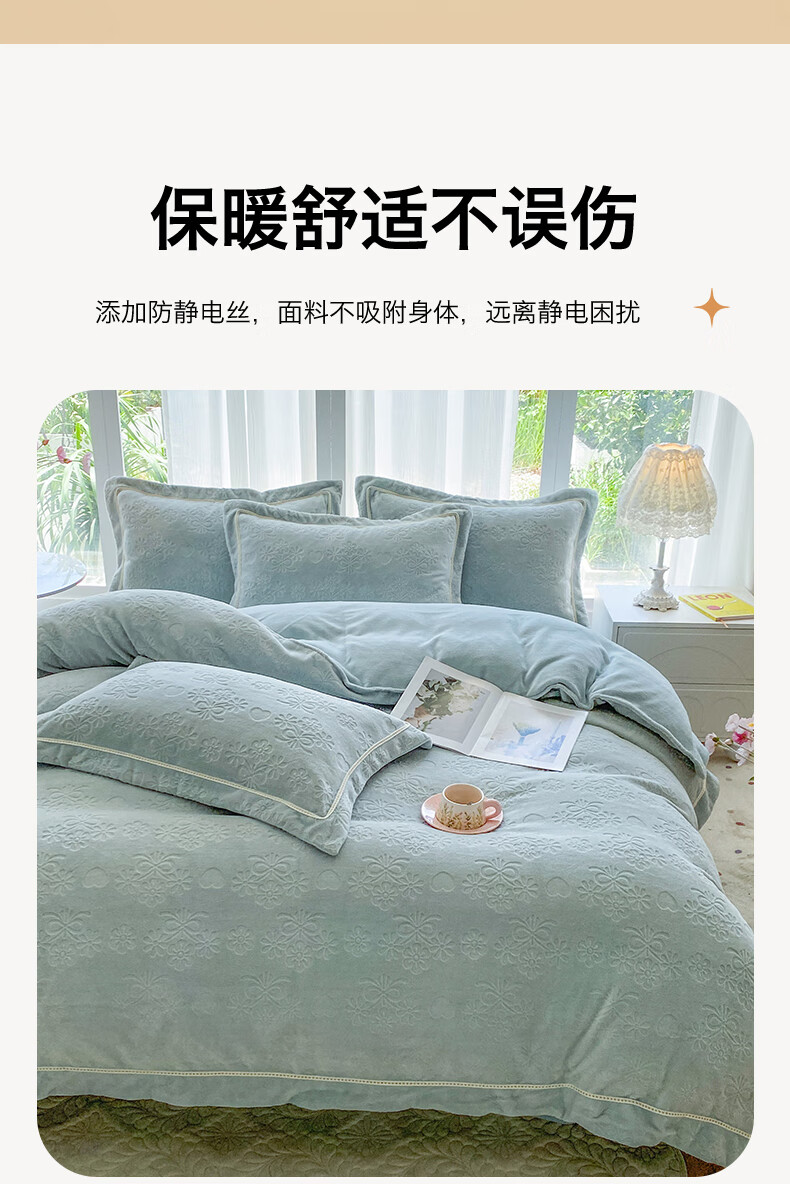 Violet (Violet) new type A carved milk velvet four-piece set high-density short-hair baby velvet coral velvet quilt cover sheet sheet bed sheet style 1.5 four-piece set-quilt cover 200cm*230cm