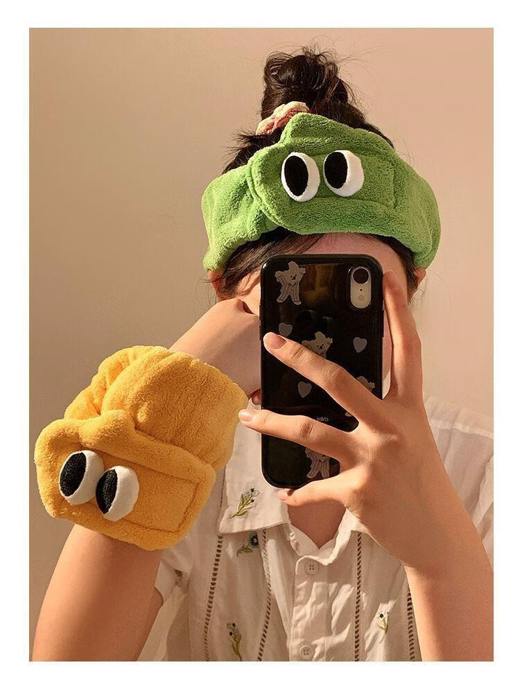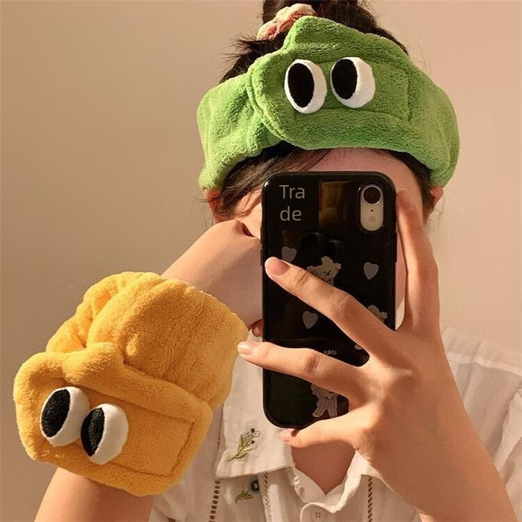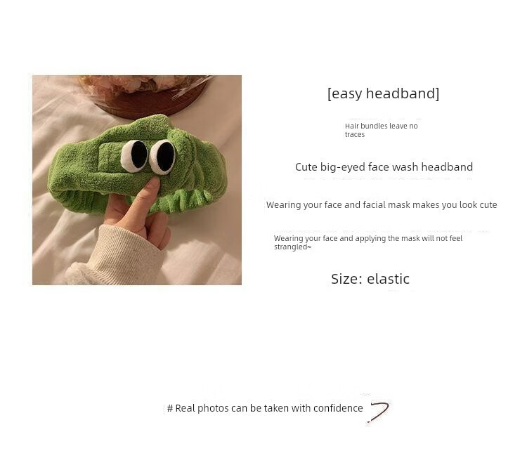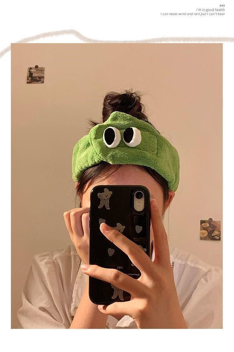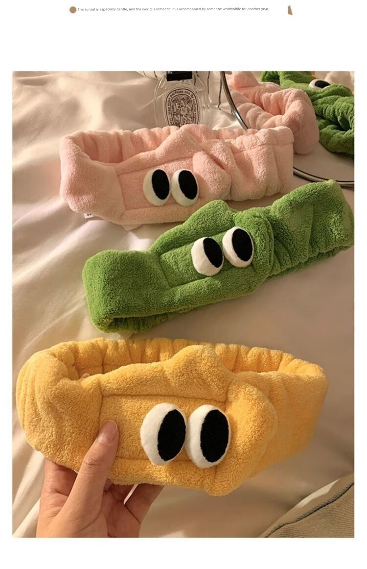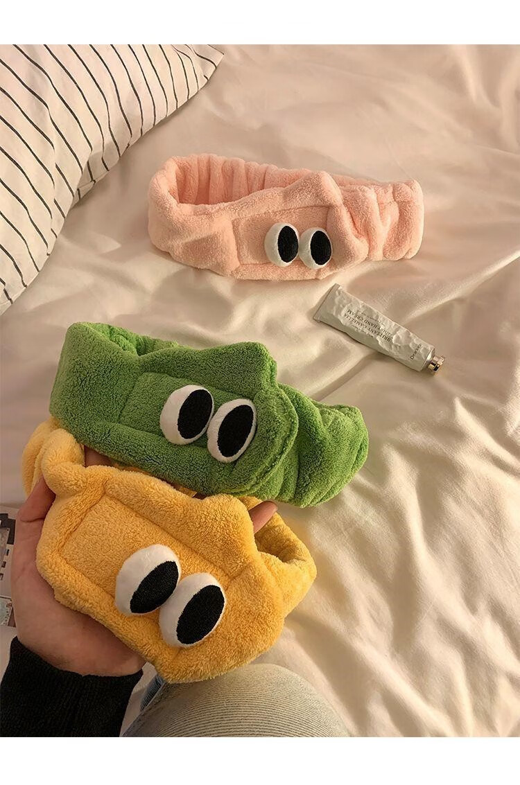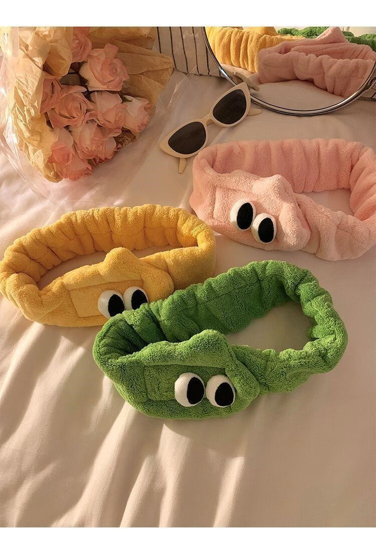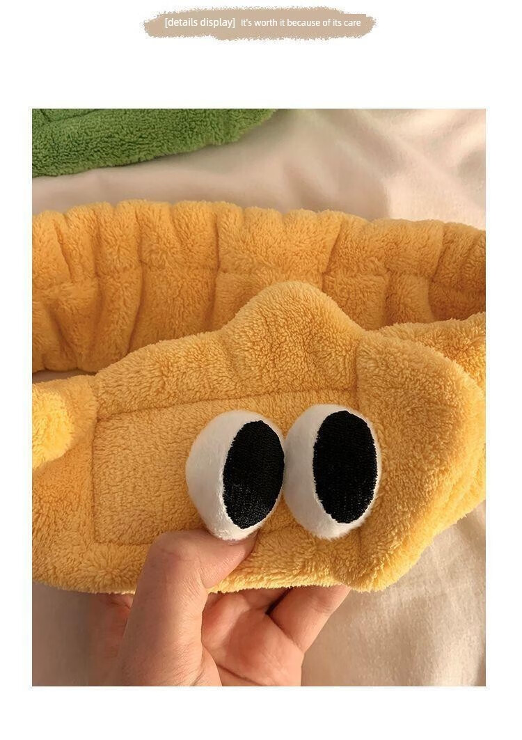 Hua Mu Rong Cute Big Eyes Face Wash Headband Women's Mask Wash Year of the Snake Cartoon Plush Headband Winter Headband Headband Pink + Green Soft and Cute