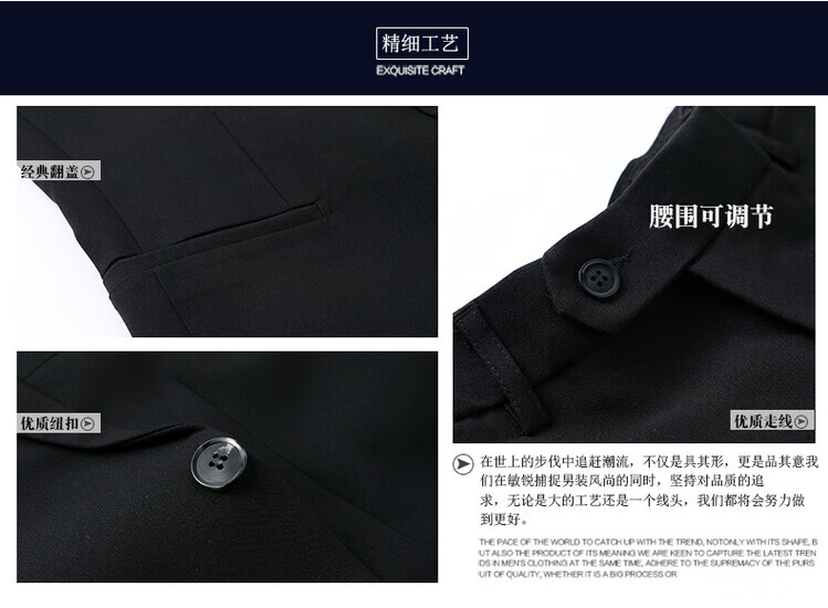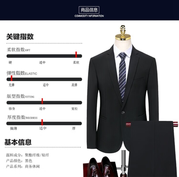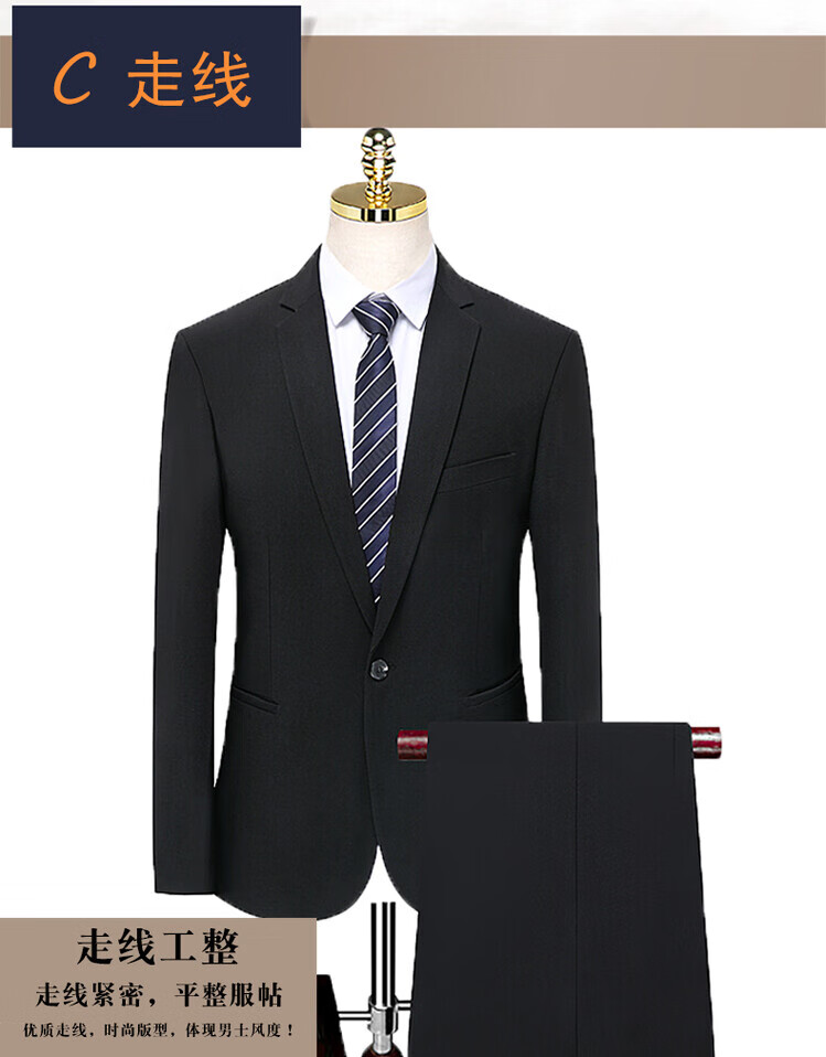 LESS IS MORE Lilang Men's Business Suit Suit New Slim Fit Interview Civil Servant Suit Two-piece Spring and Autumn Workplace Formal Wear Black XL 180