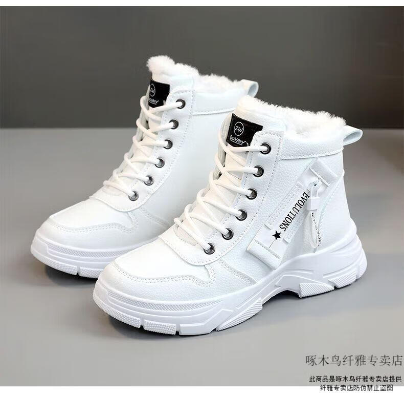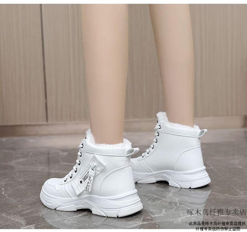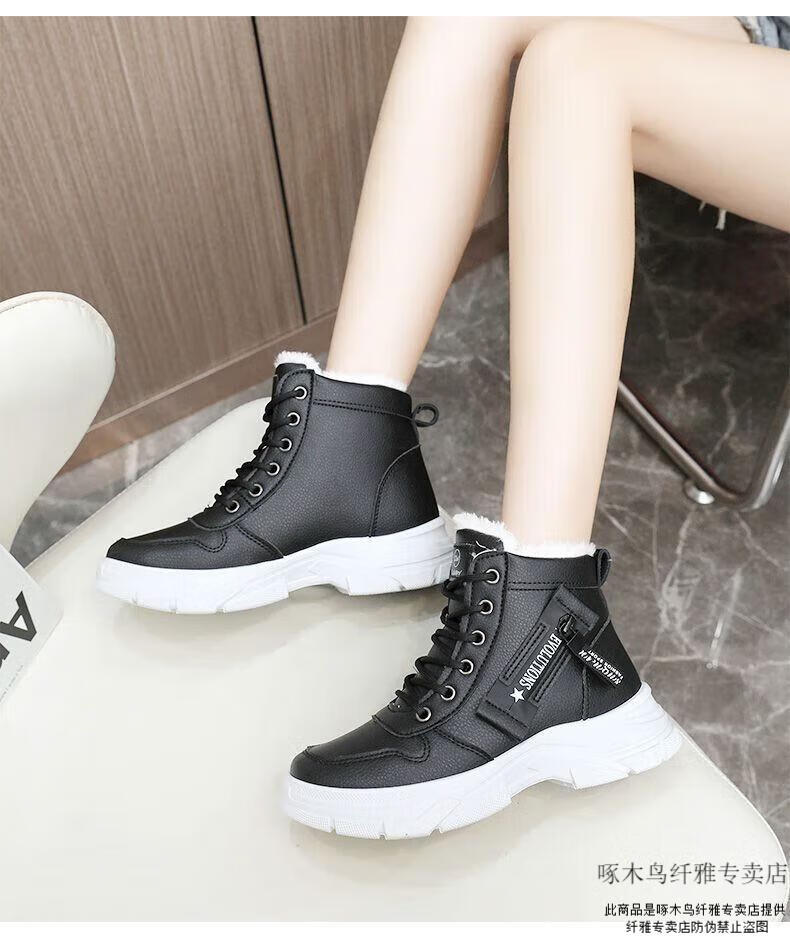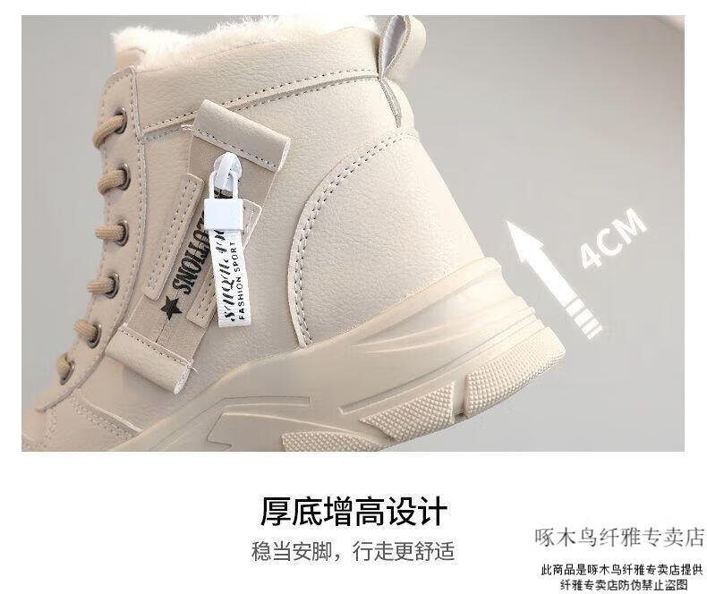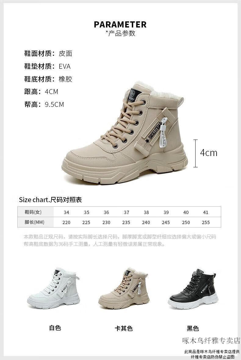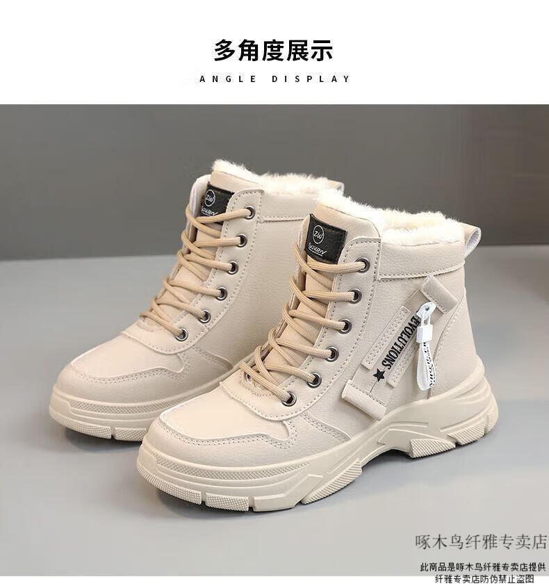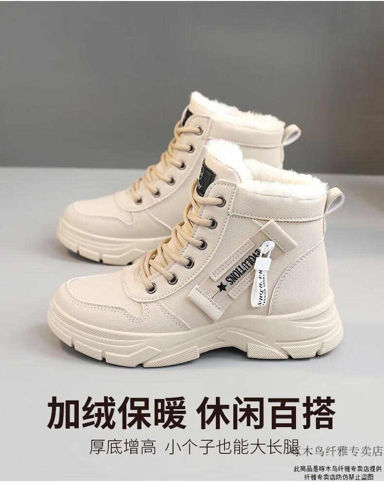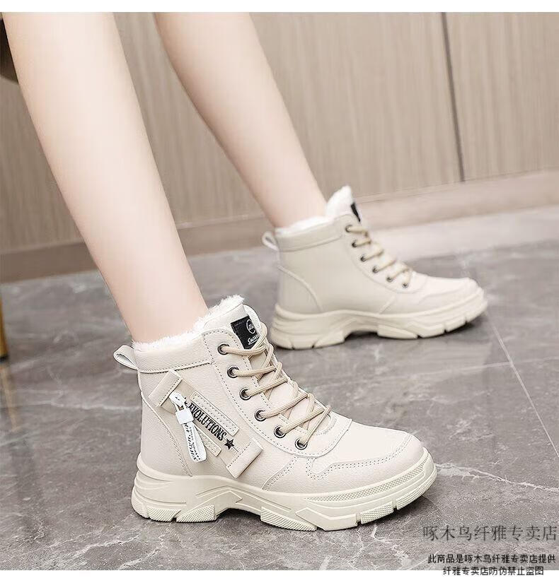 Woodpecker brand snow boots for women, plus velvet and thickening, autumn and winter 2025 new high-top cotton shoes, thick soles, real soft leather Martin boots (khaki), sub-zero warmth, velvet and thickening, collection and purchase, priority delivery 37