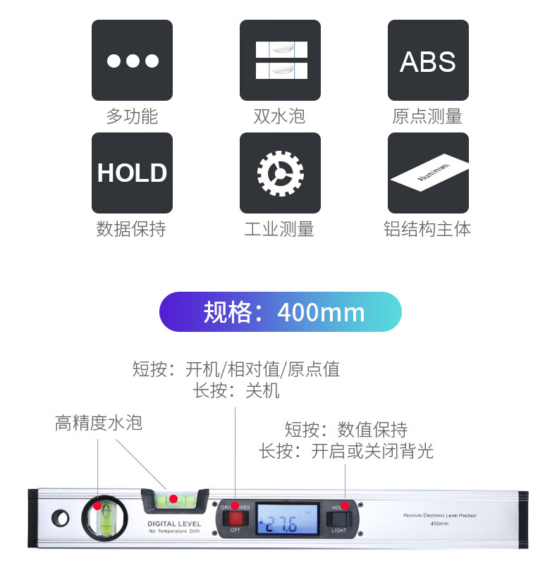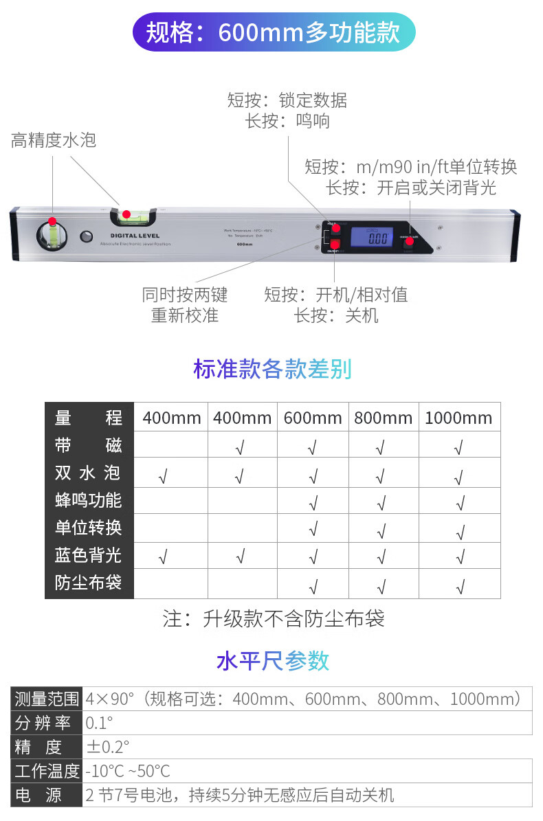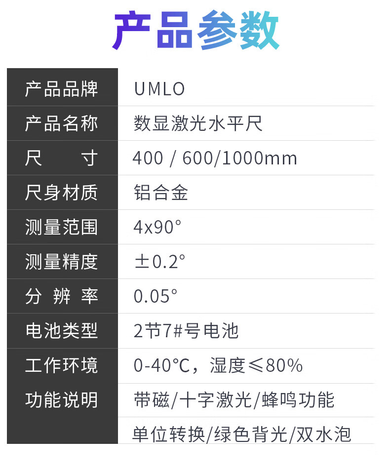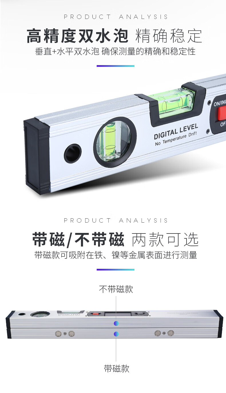 UMLO high-precision digital display level with laser strong magnetic angle meter aluminum alloy balance level measuring angle 600mm waterproof digital display level without laser