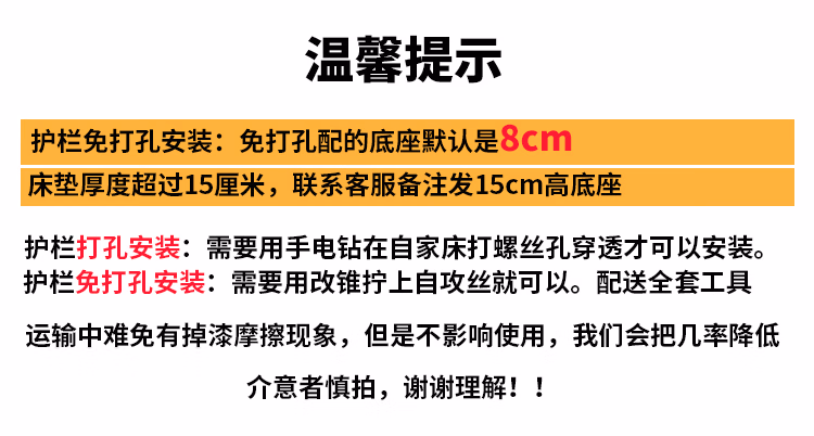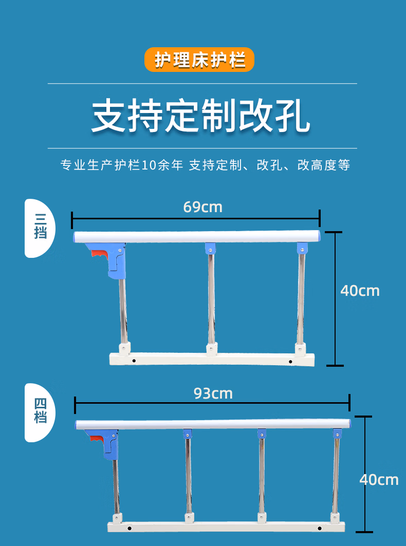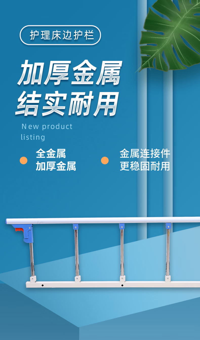 Universal hospital bed guardrail elderly bedside handrail riser anti-fall bed guardrail nursing bed accessories plus ordinary stainless steel full metal 3 gears electric drill drilling