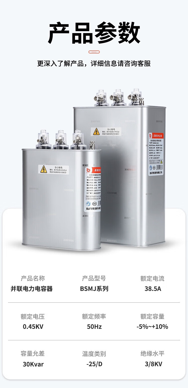 Refers to the moon capacitor BSMJ0.4/0.45-15/20/30 three-phase reactive power compensation self-healing low voltage parallel BSMJ0.45-50-3