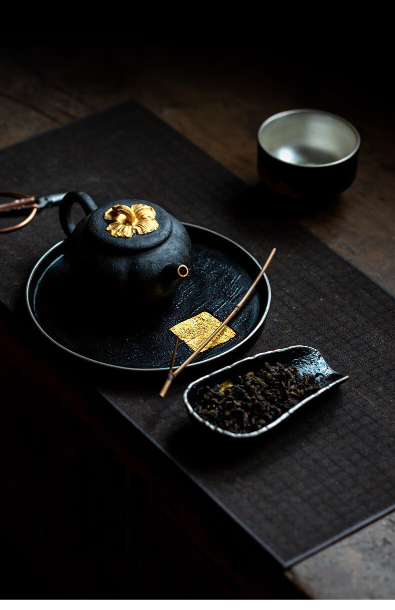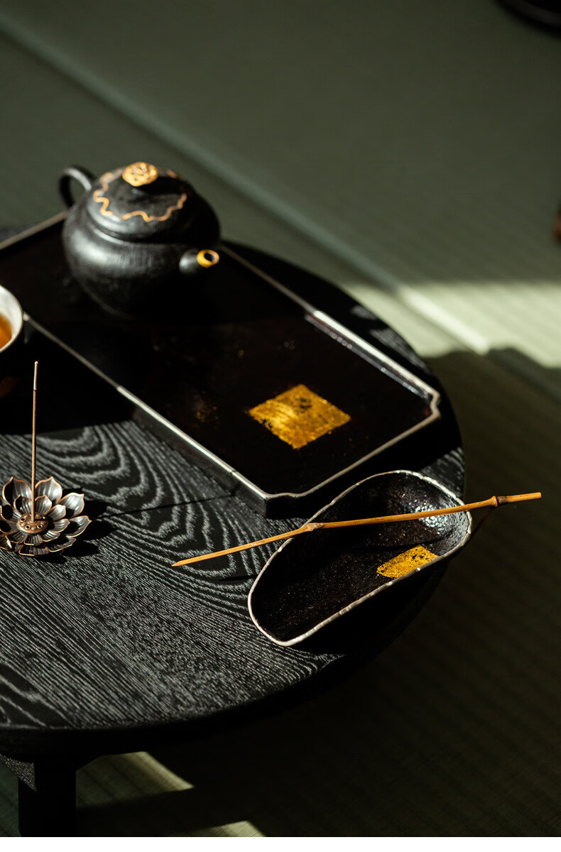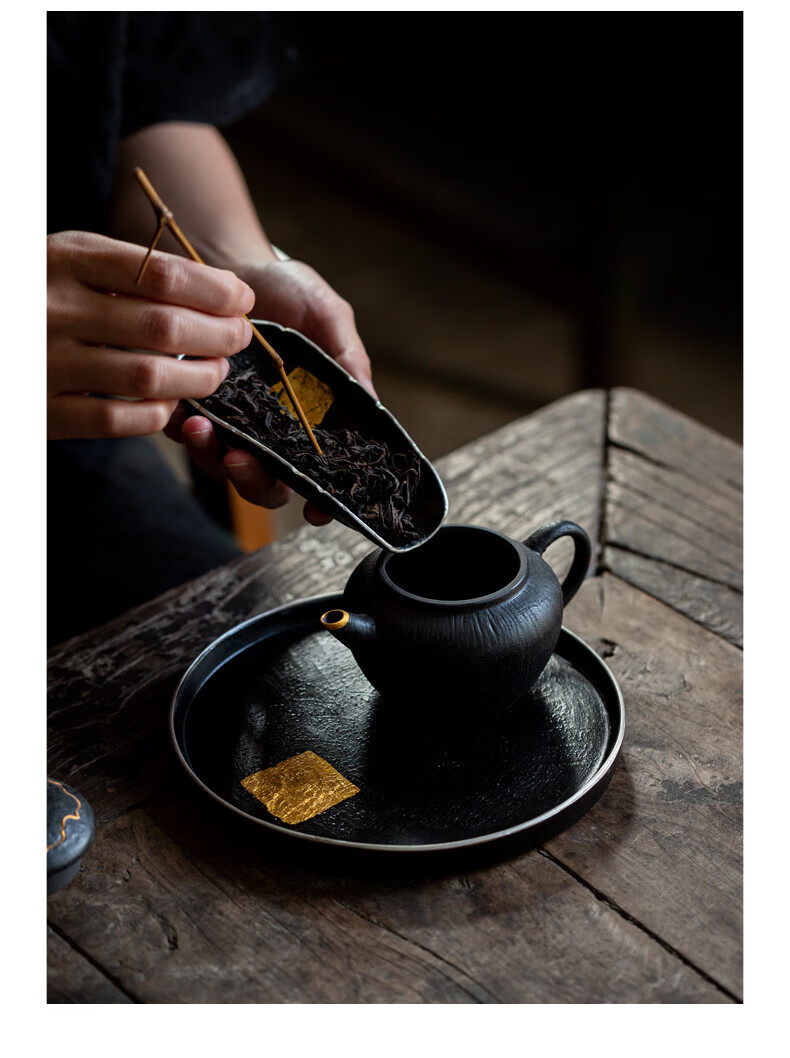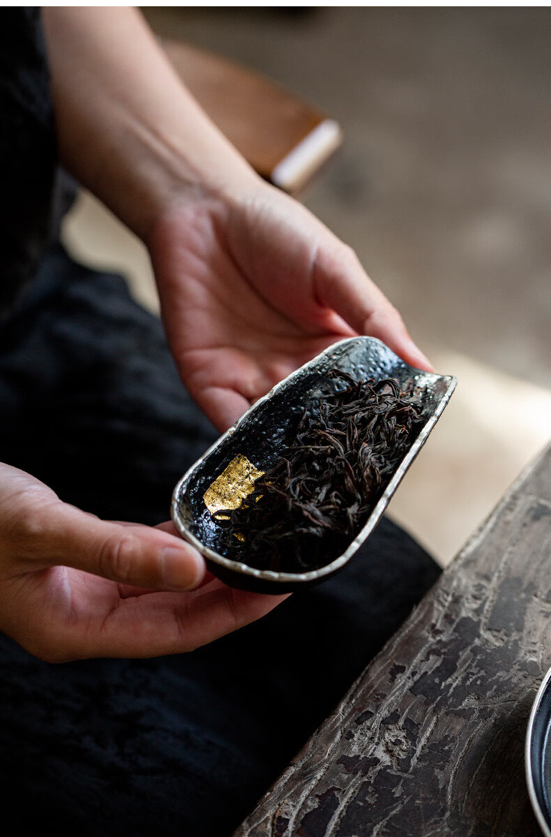 Xinyi gold foil large lacquer art tea spoon tea shovel hand-hammered Zen tea spoon tea set Kung Fu tea tea ceremony accessories gold foil tea spoon