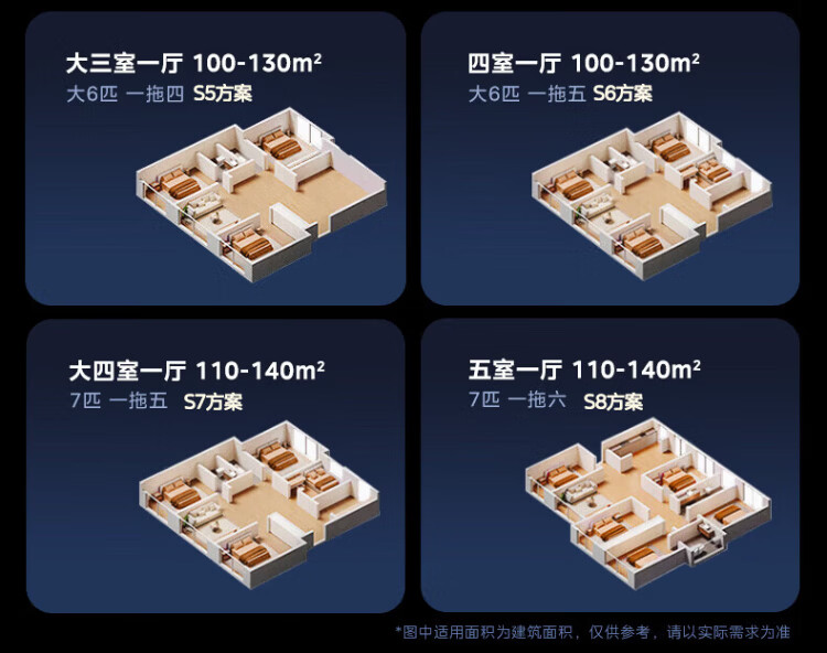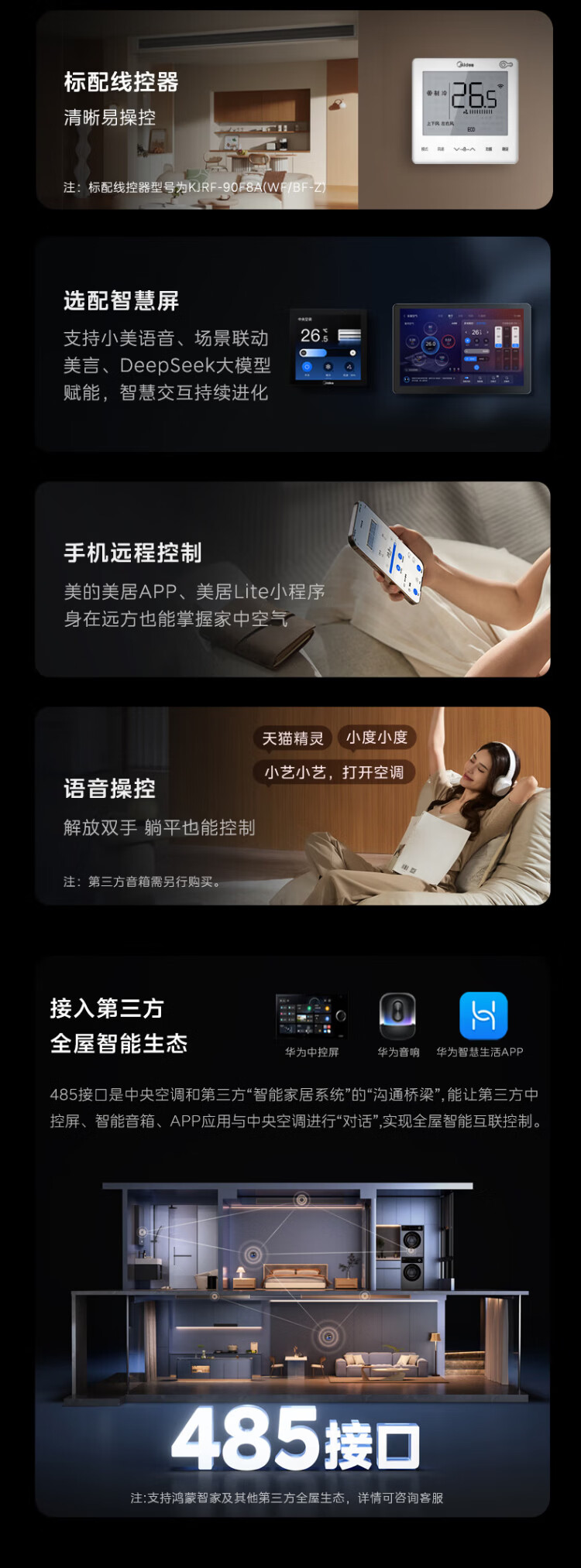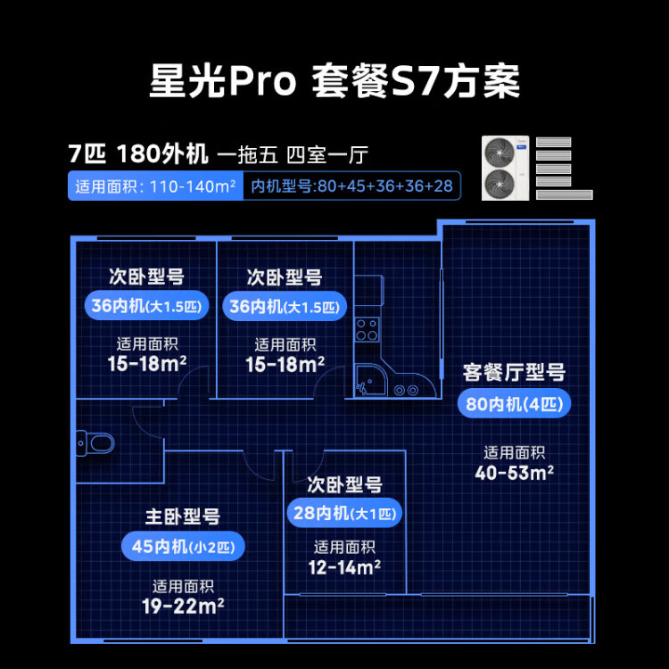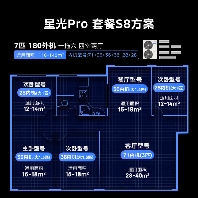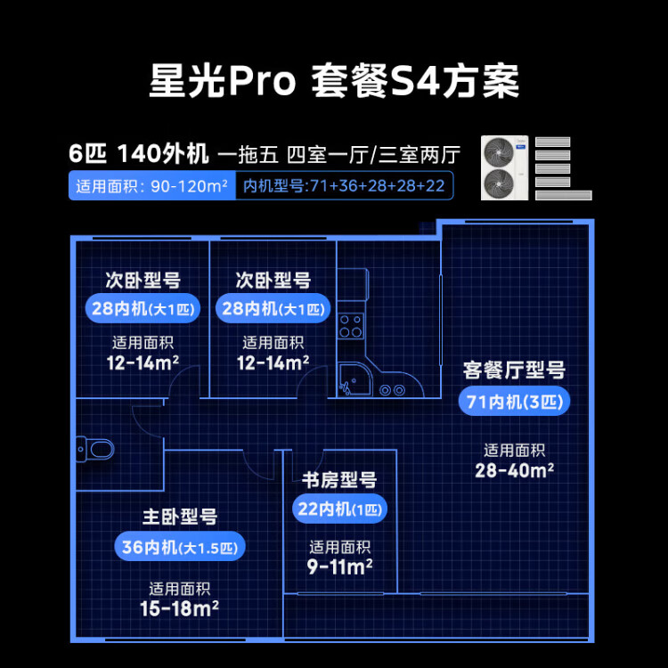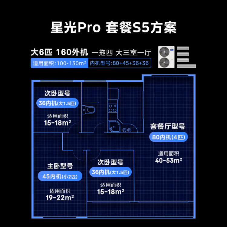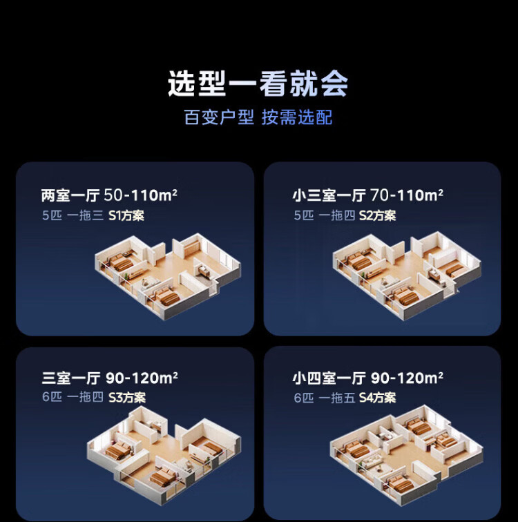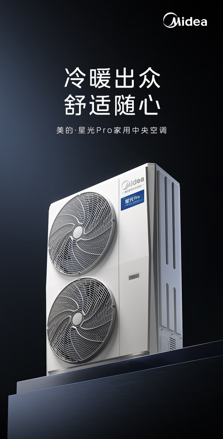 Midea Starlight Pro multi-connection, Lijia third generation upgraded model, home central air conditioner, first-level energy efficiency, frequency conversion, double wind wheel, intelligent self-cleaning, 5 HP, one to three, two bedrooms and one living room, S1 plan