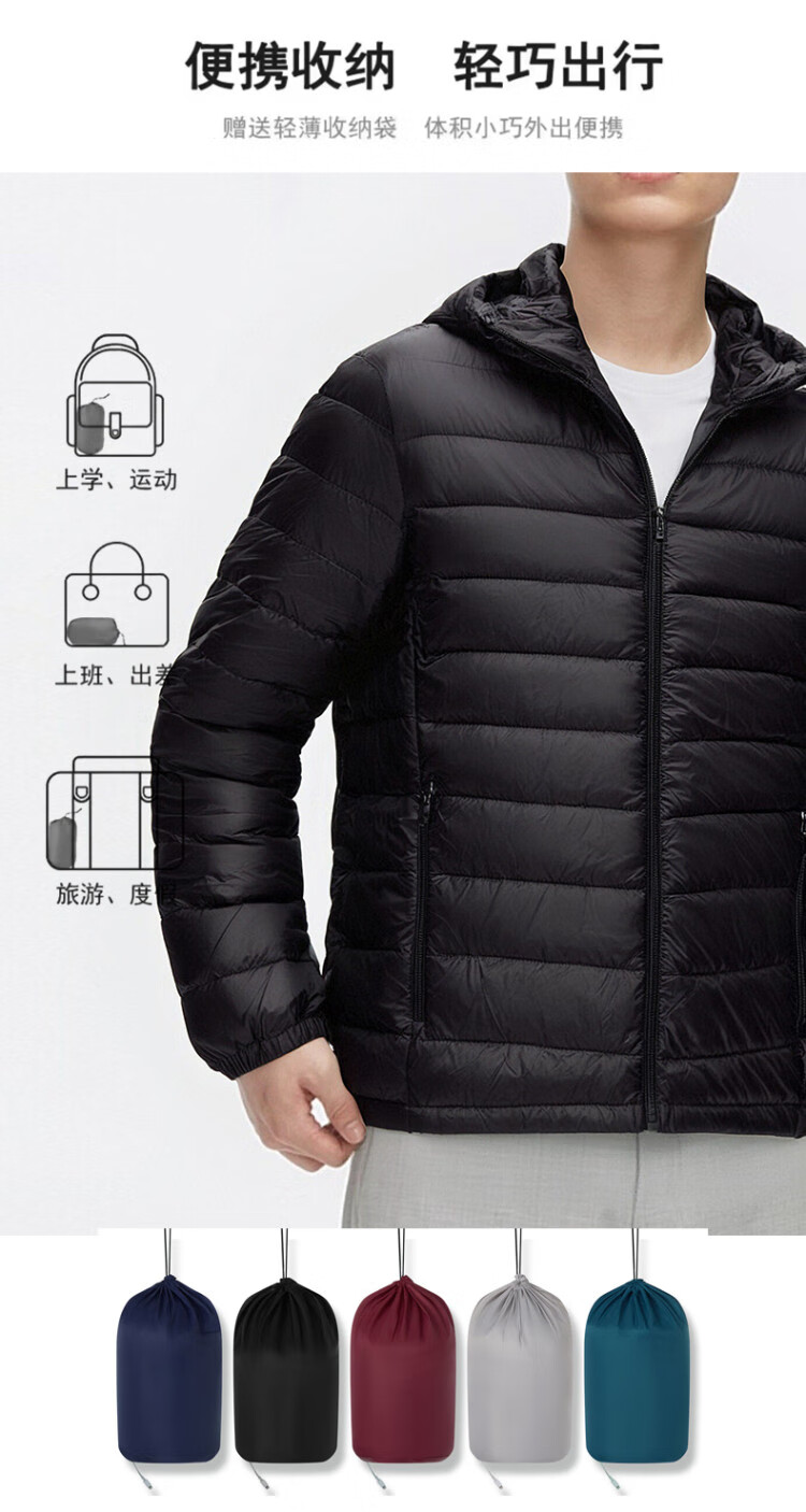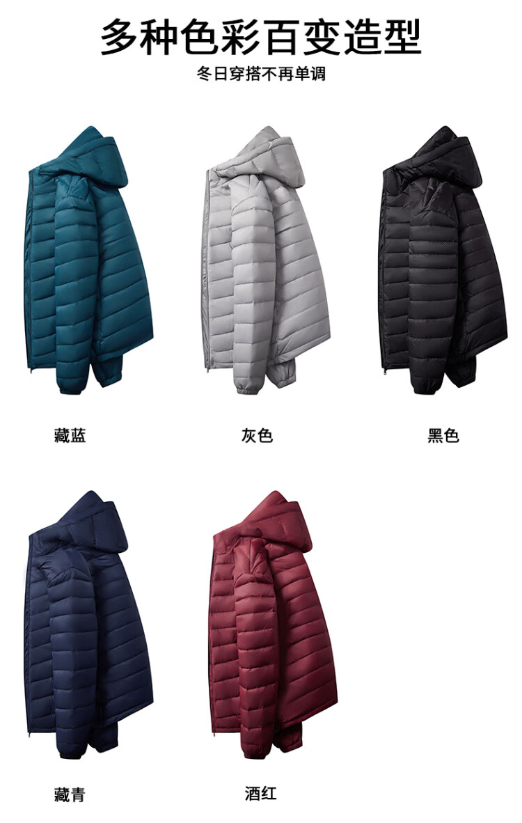 New 2026 national standard white duck down offline same style for men and women, light and warm hooded down jacket, burgundy 2XL