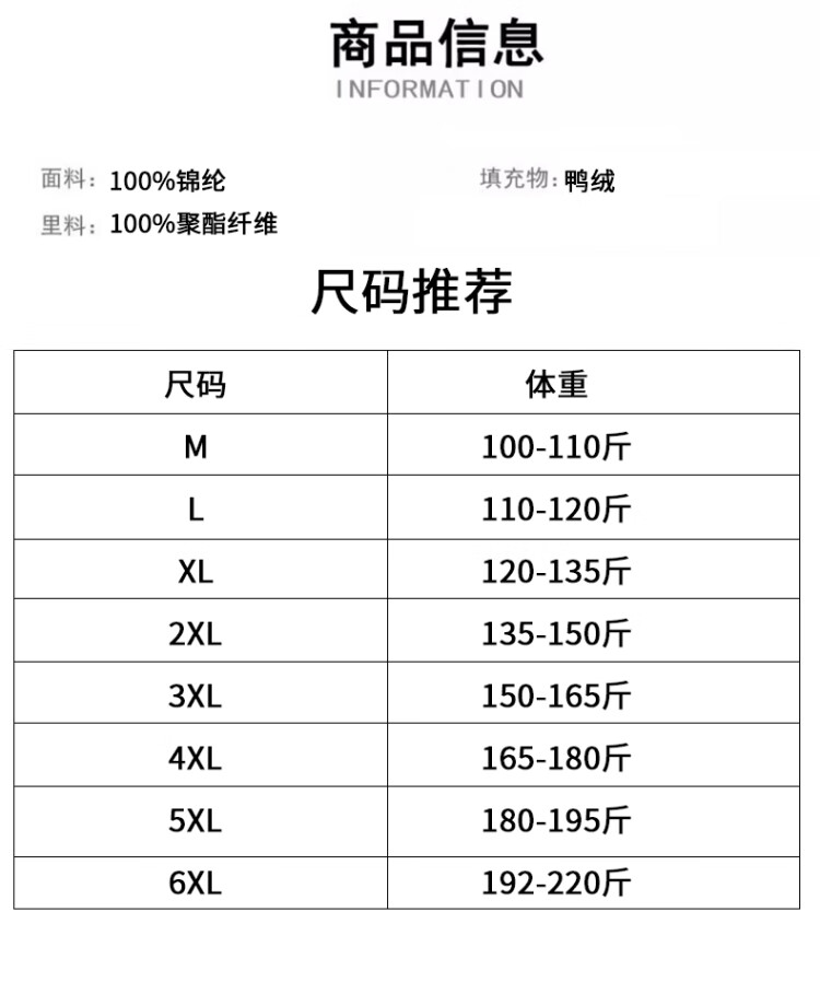 China (cm) 165 / 88-90 170 / 96-98 175 / 108-110 180 / 118-122 185 / 126-130