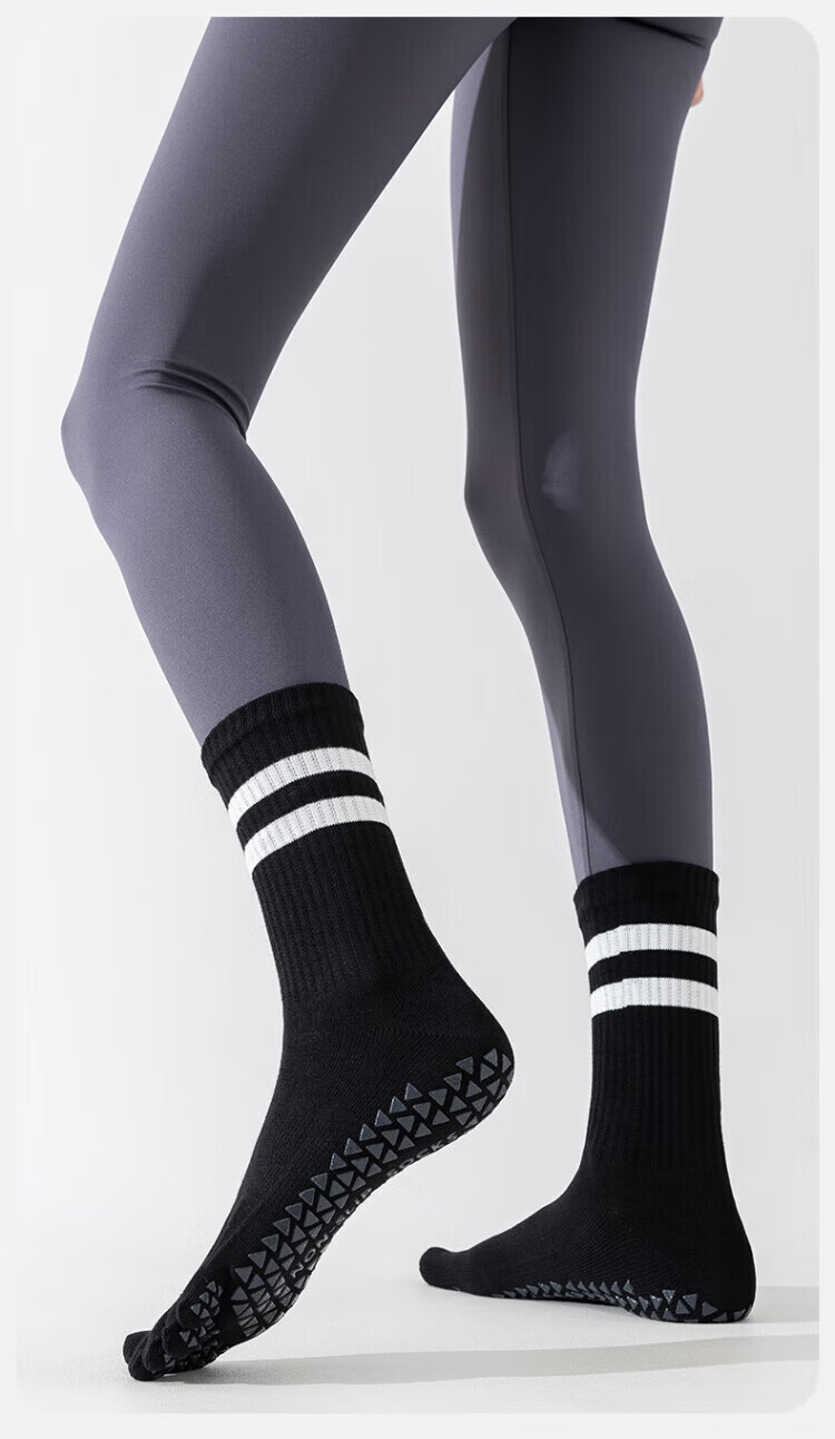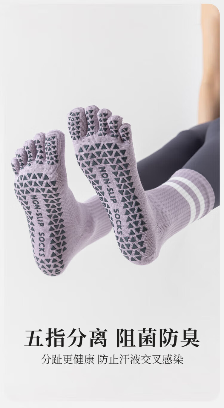 German yoga socks five-finger non-slip women's Pilates training indoor sports special fitness long tube split toe one-size-fits-all 1 pair purple