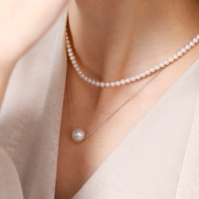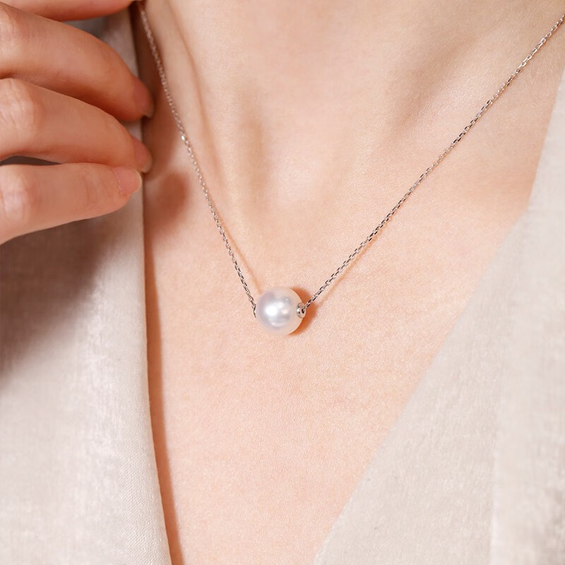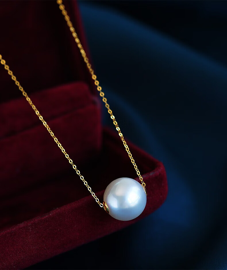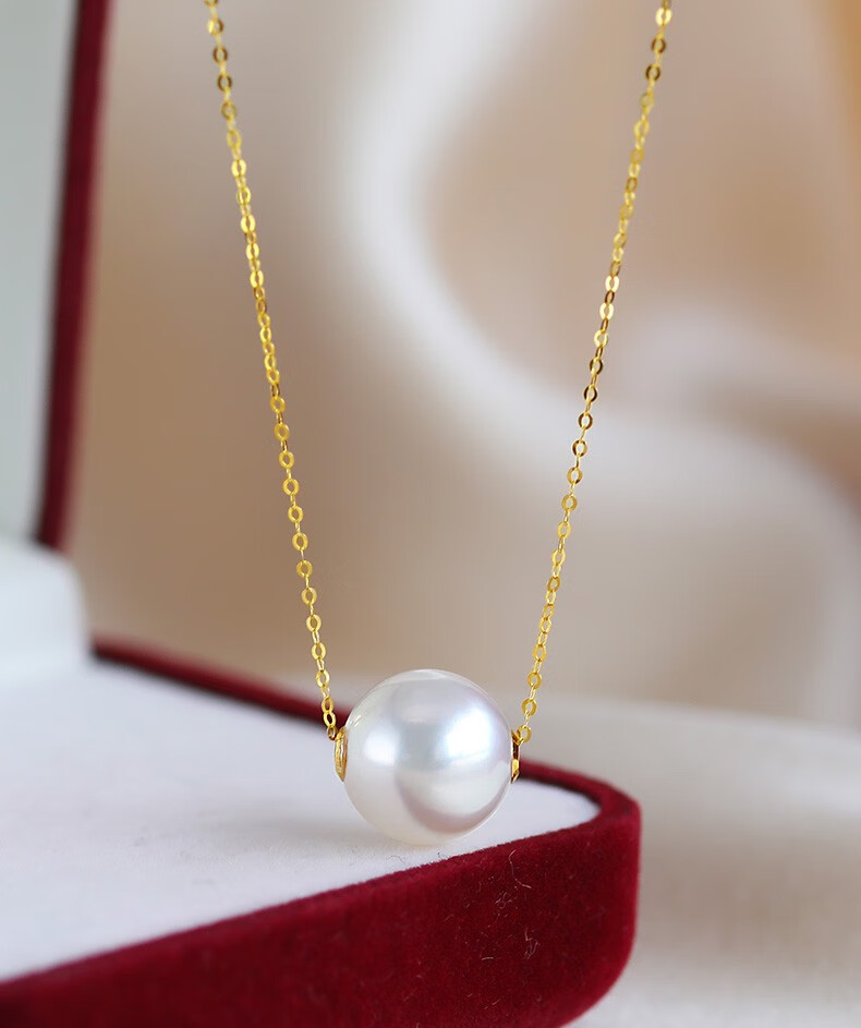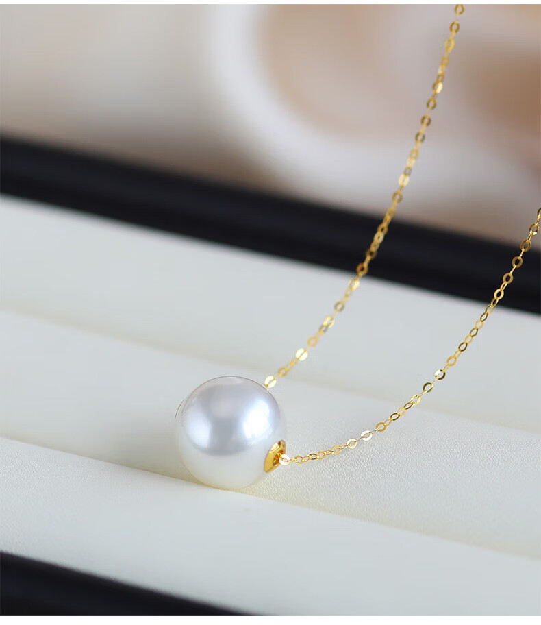 Nayu Australian Seawater South Sea White Pearl Pendant Golden Passepartout Pearl Necklace Quality 9-10mm White Cold Light (Platinum)
