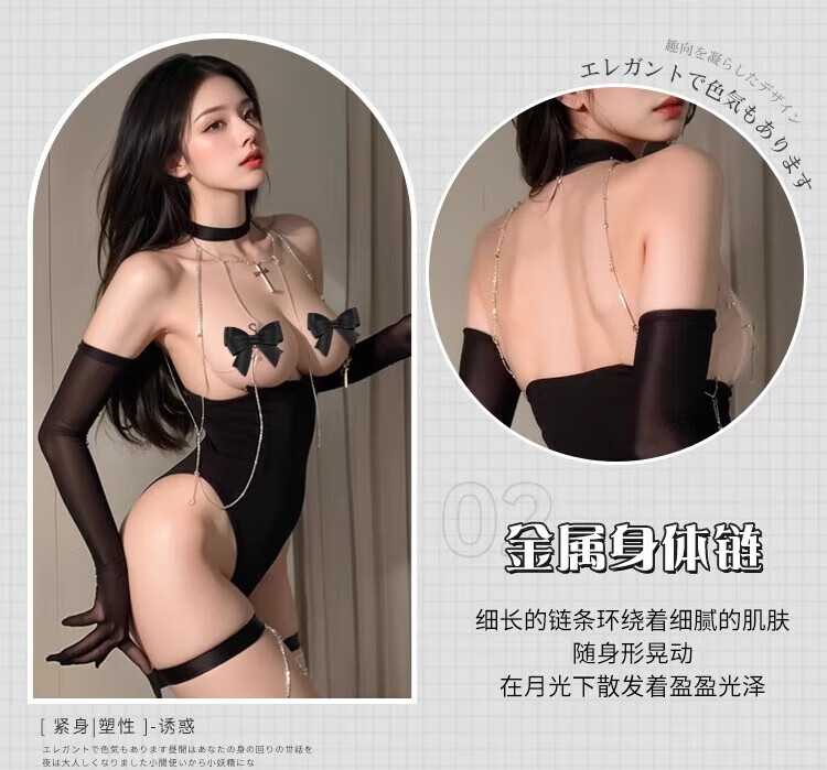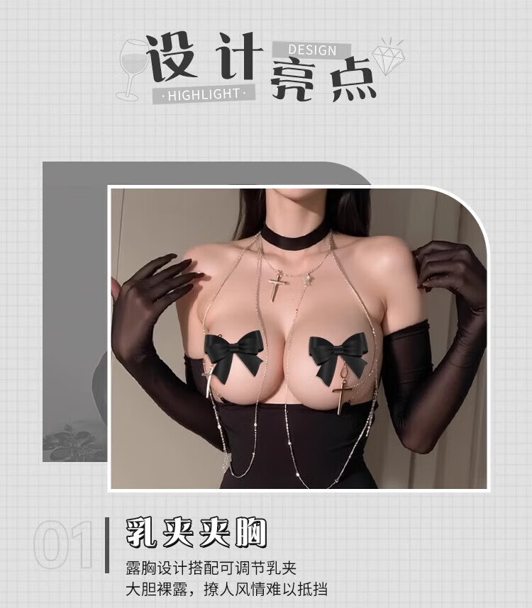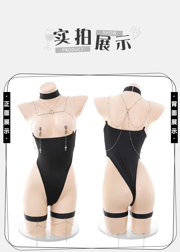 Admire sexy lingerie for couples to stimulate high-end uniforms, sexy succubus tight-fitting breast-baring breast clips for training, breast clips, one-piece speed shirt, complete set with free body chain