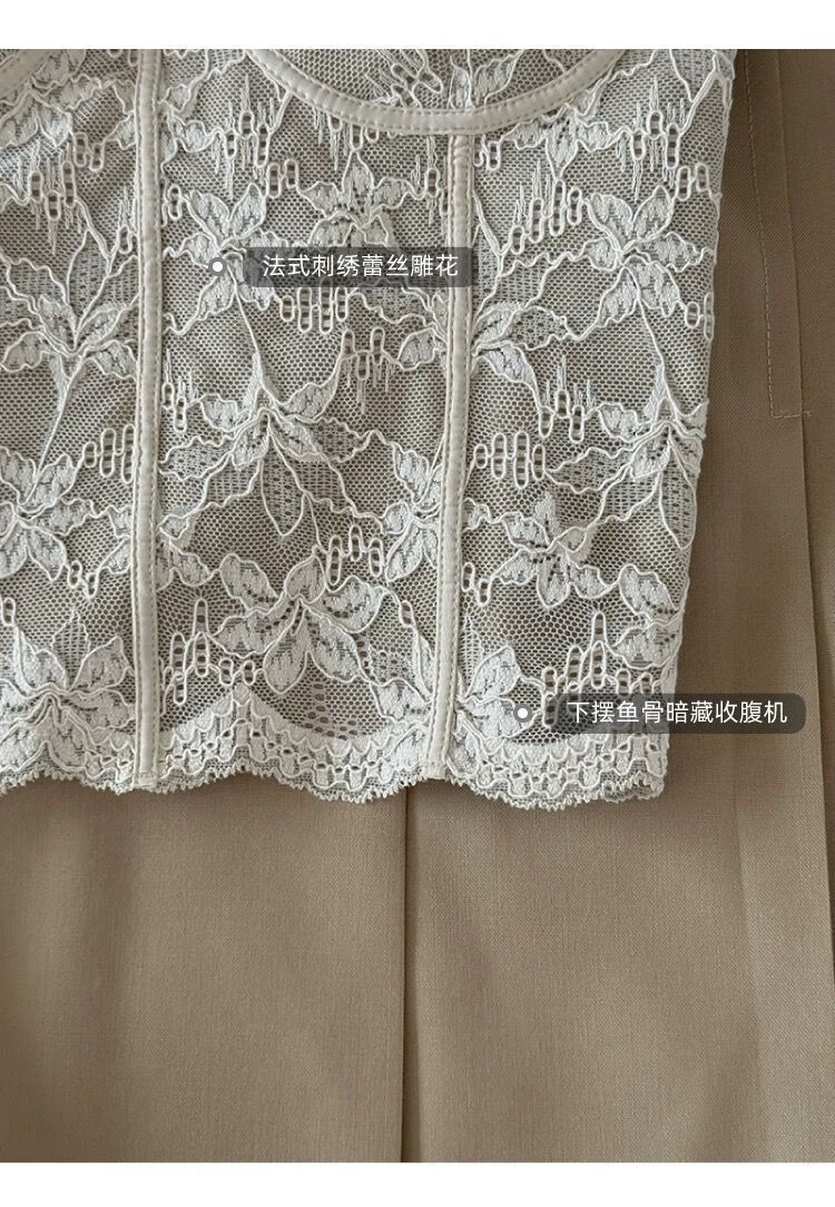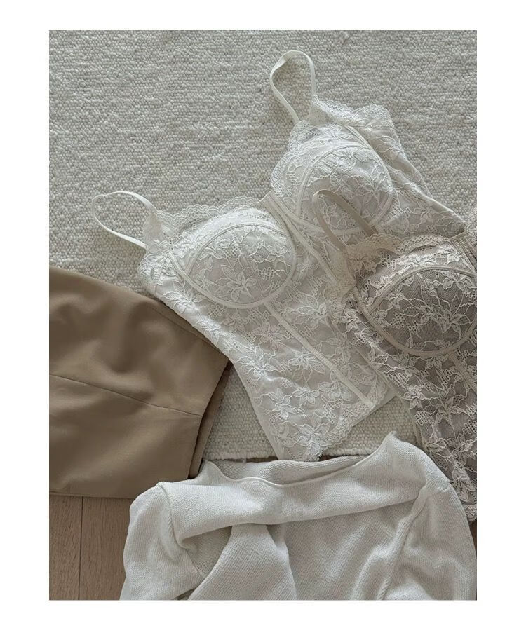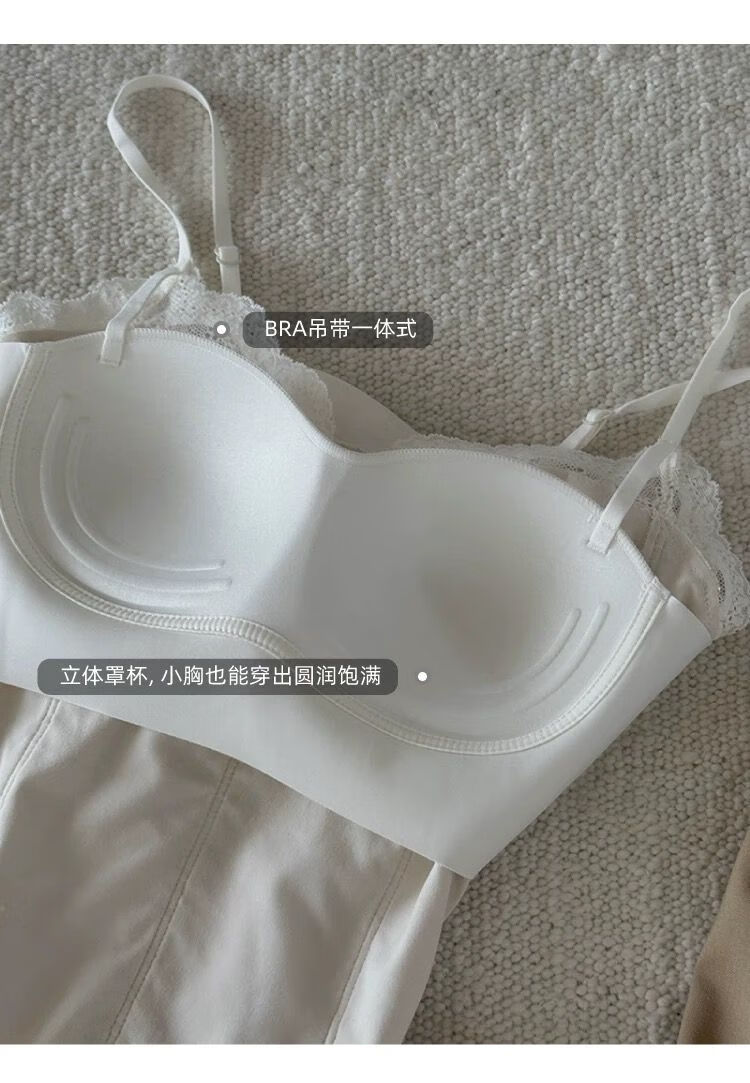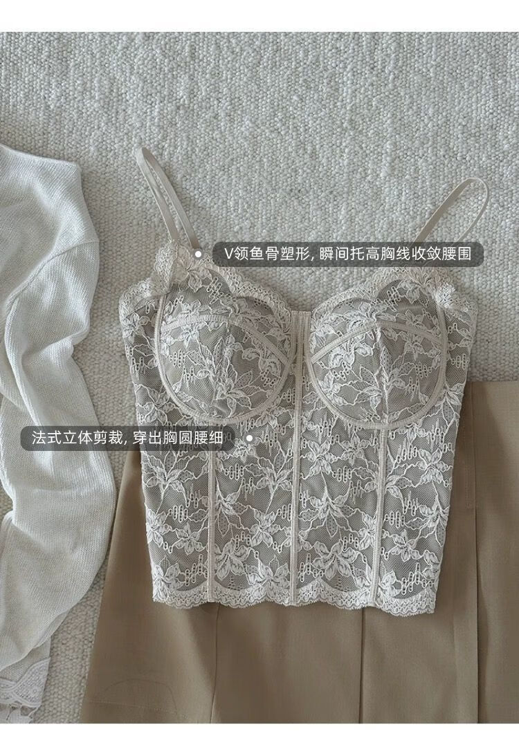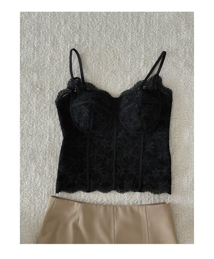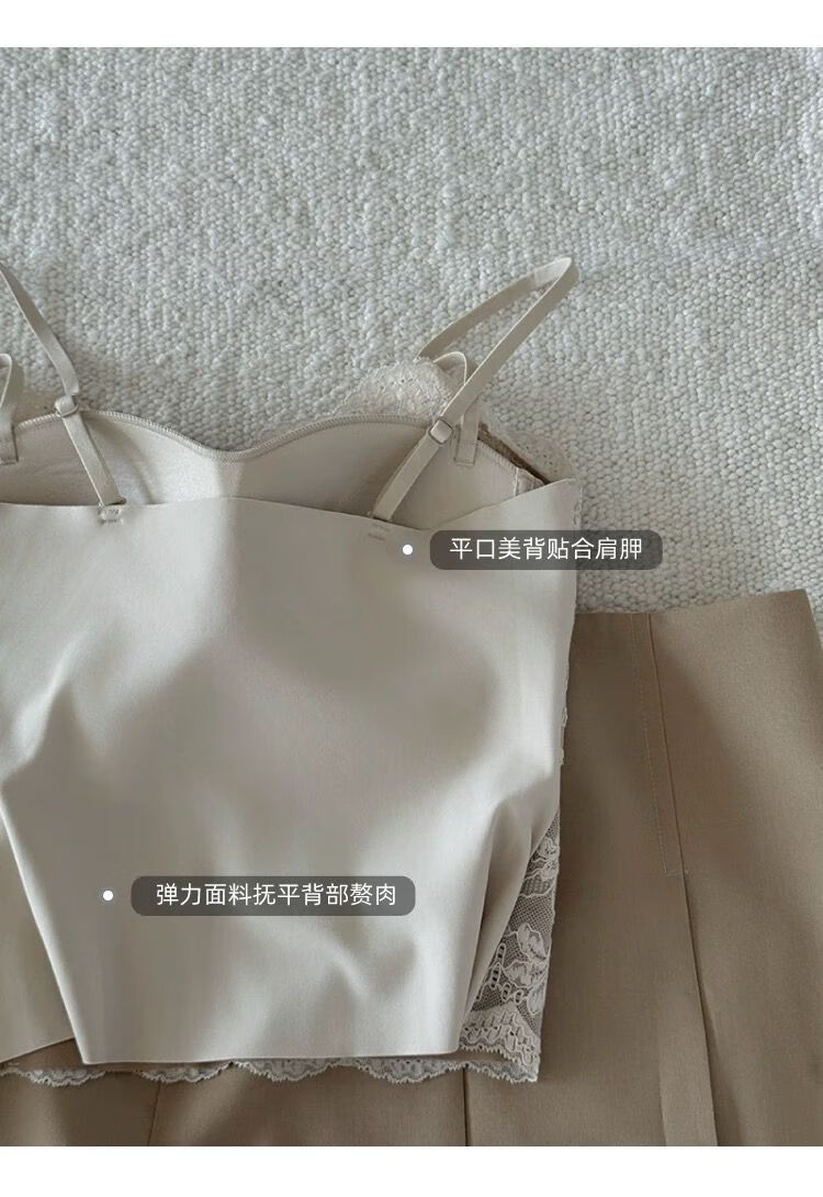 LangSha French Fishbone Bra Lace Camisole Women's Inner Back Bra All-in-one Bottoming Top with Breast Pad Black S Recommended 32/70AB