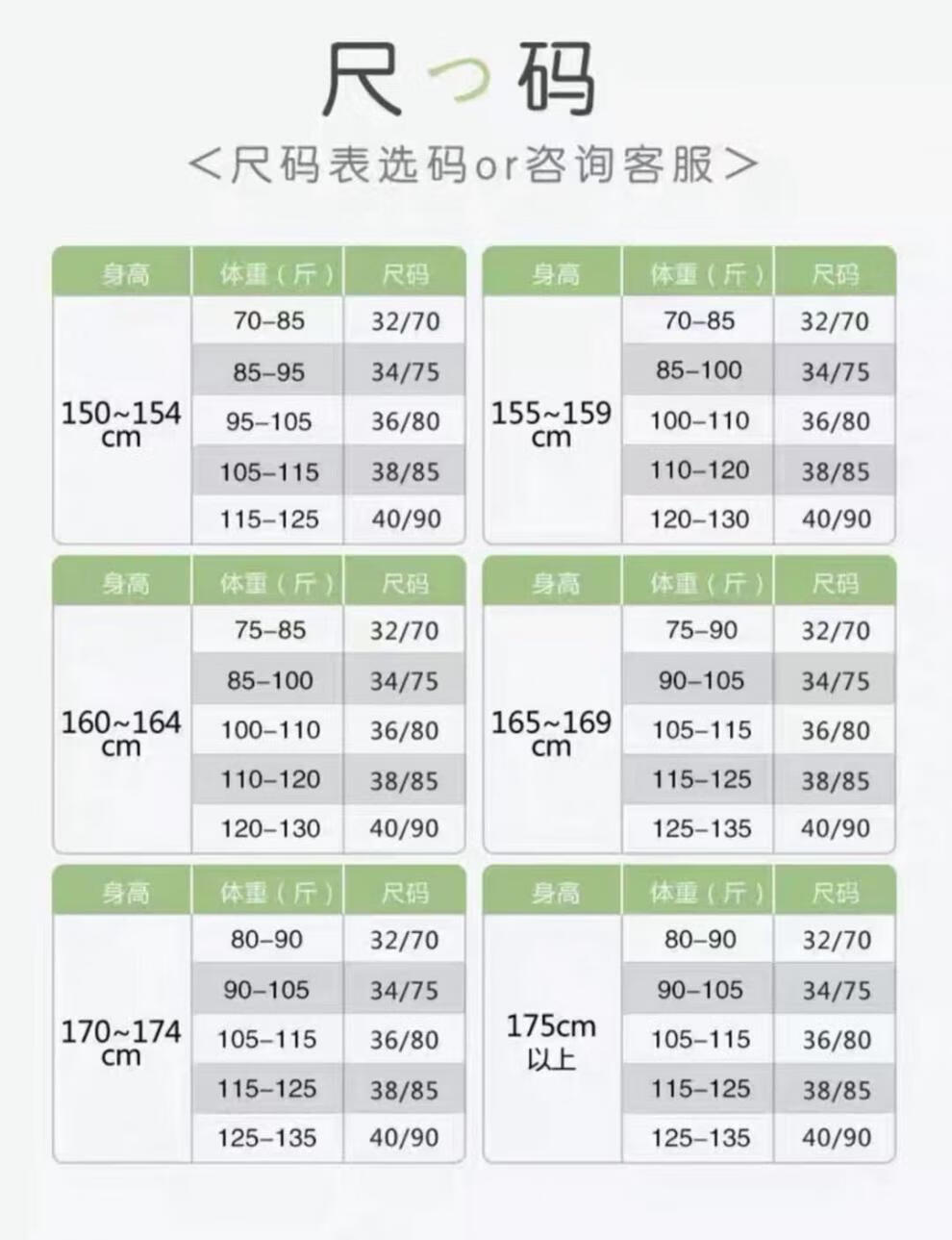 China (cm) 160-165/84-86 165-170 / 88-90 167-172 / 92-96 168-173 / 98-102 170-176 / 106-110