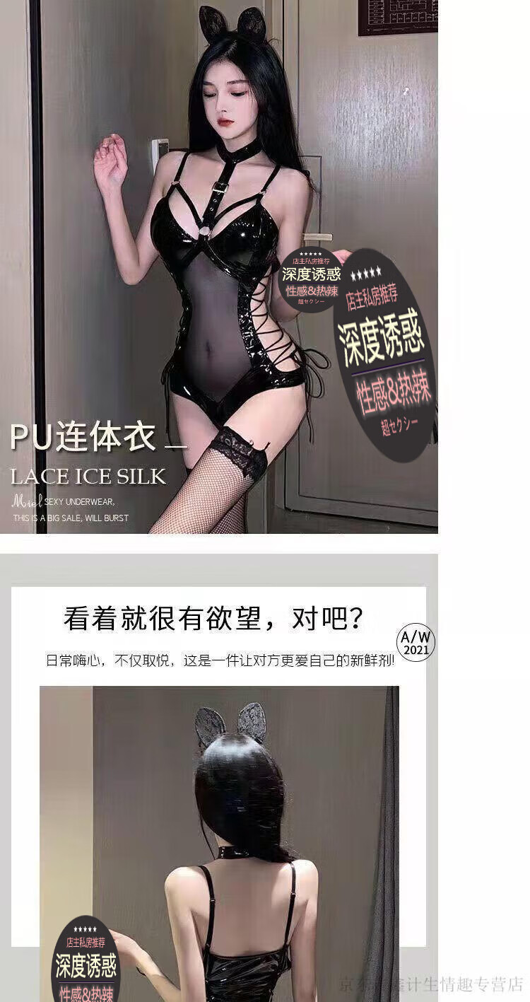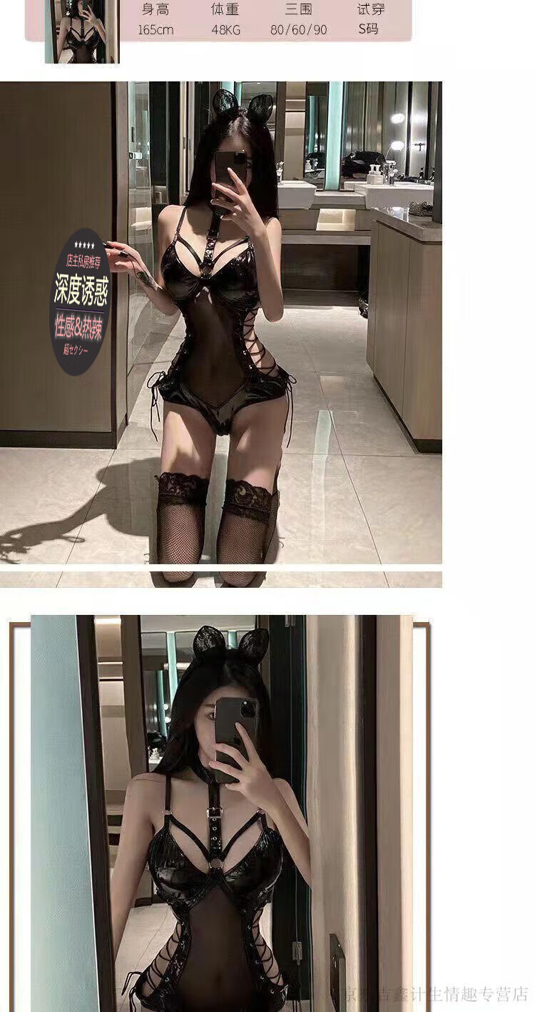 Long Night Set Sexy Lingerie Sexy Pajamas New Patent Leather Tight Leather Clothes Bondage Queen's One-piece Bodysuit Does Not Include Accessories One Size
