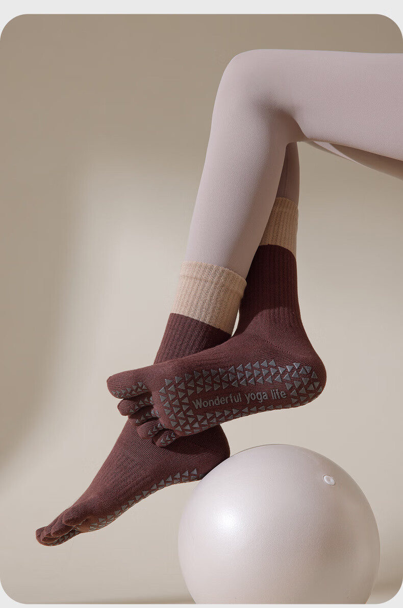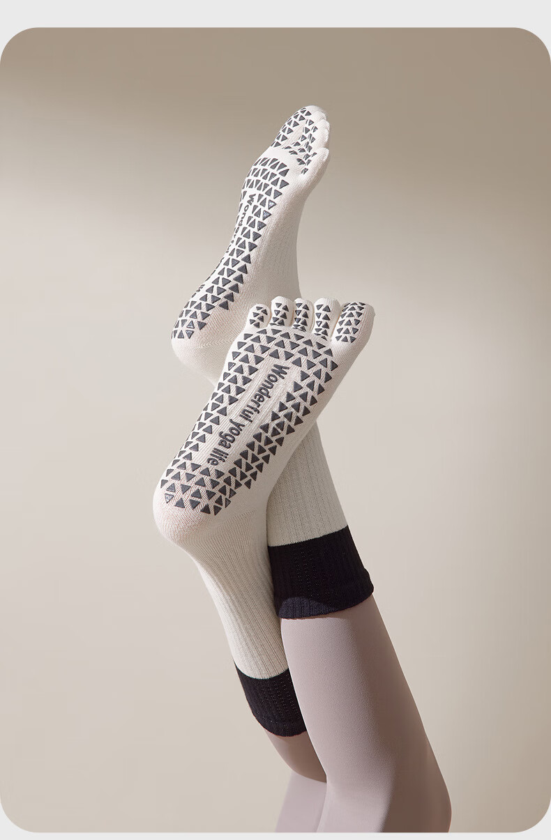 Sangxi five-finger yoga socks professional non-slip mid-calf indoor sports socks Pilates socks autumn and winter warm floor socks dance white + gray black