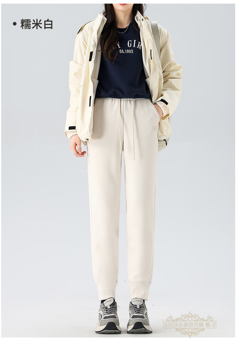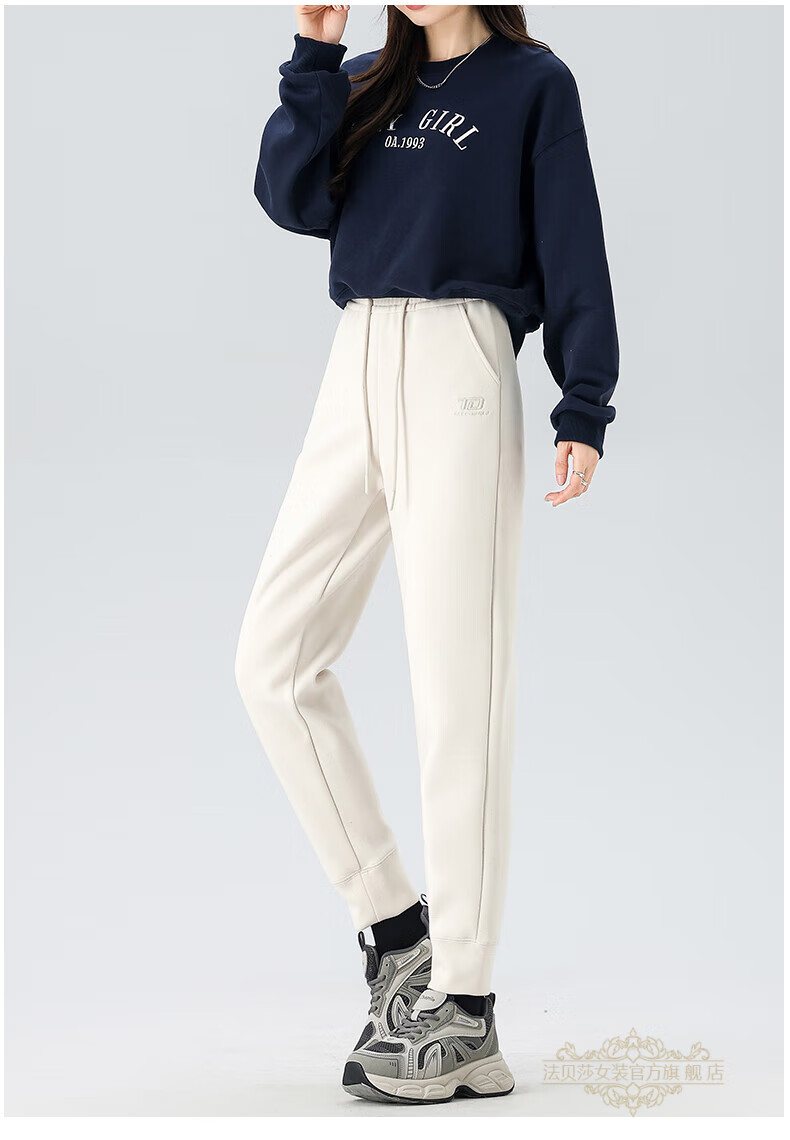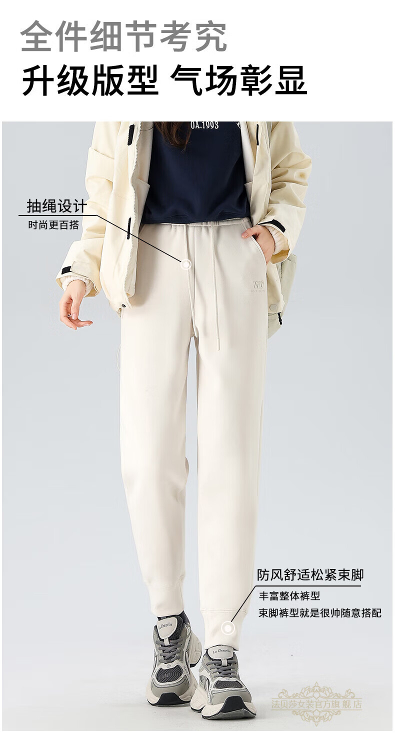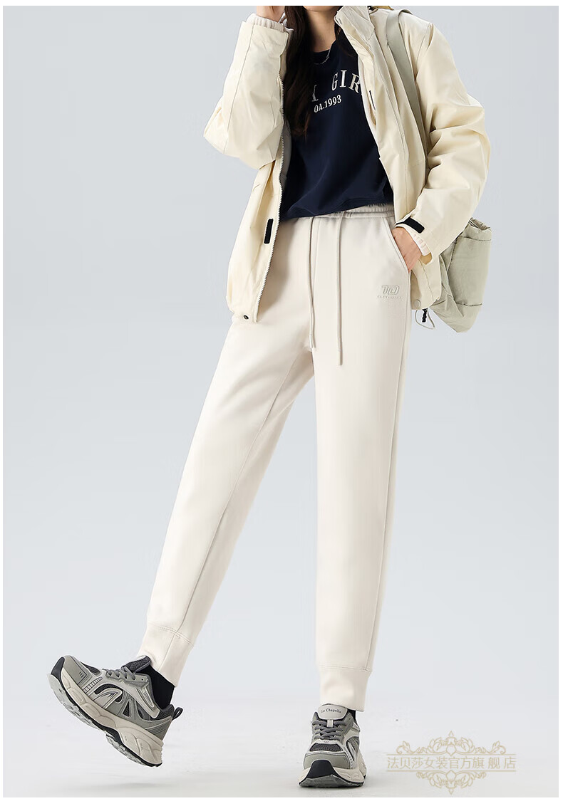 Fabesa brand warm casual down pants for women's outer wear new winter thickened cold-proof leggings pants glutinous rice white L