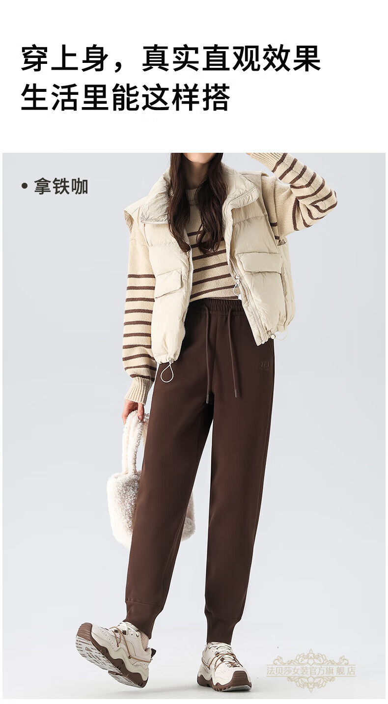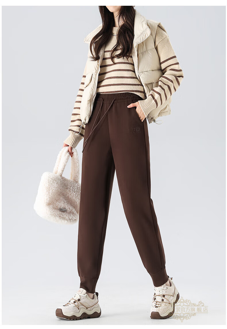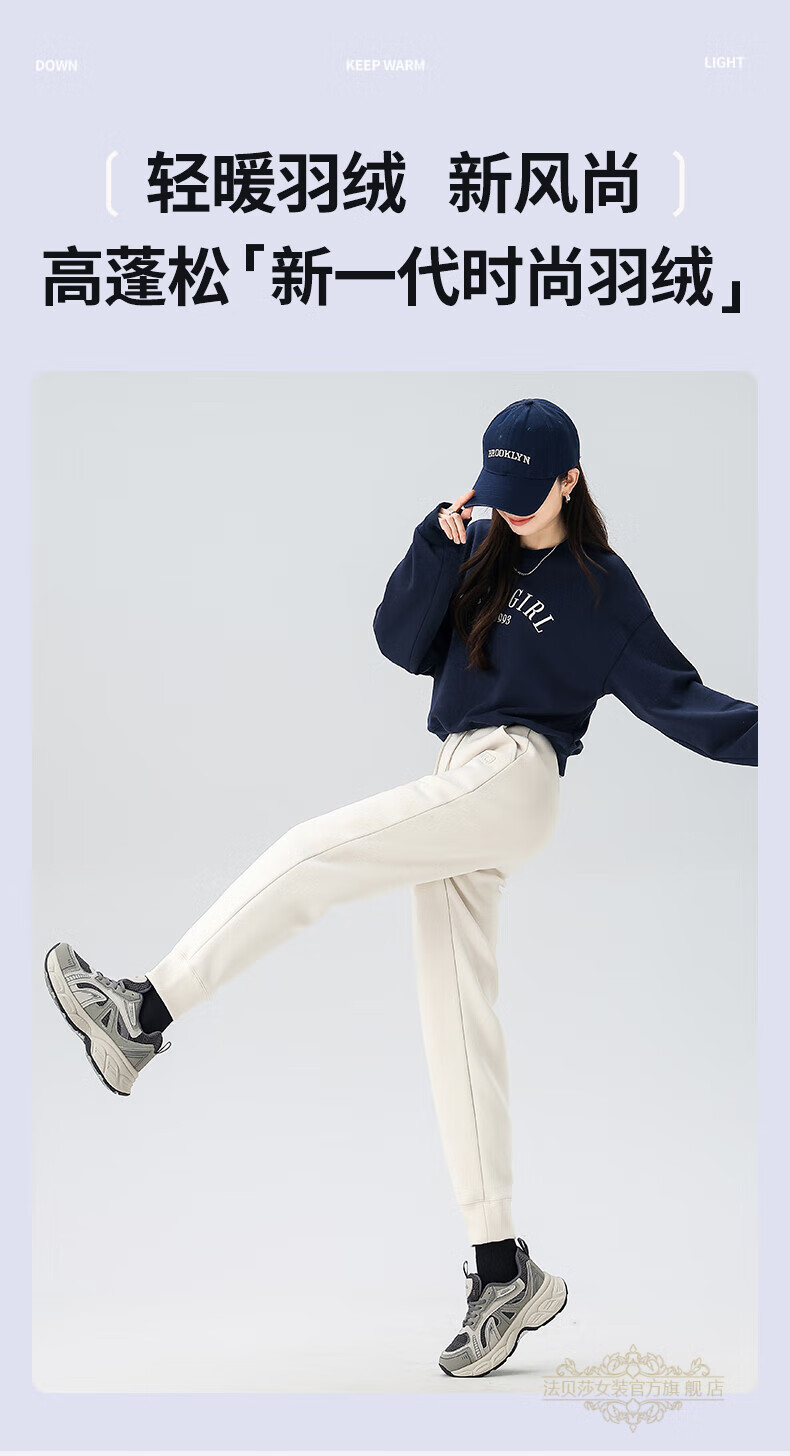 Fabesa brand warm casual down pants for women's outer wear new winter thickened cold-proof leggings pants glutinous rice white L