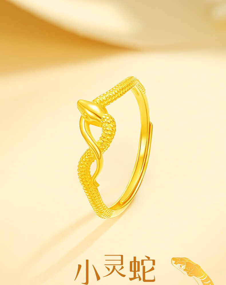 Chinese jewelry snake entwined gold ring women's 999 pure gold open ring birthday gift for girlfriend and wife gold weight about 2.8g pure gold ring rose gift box