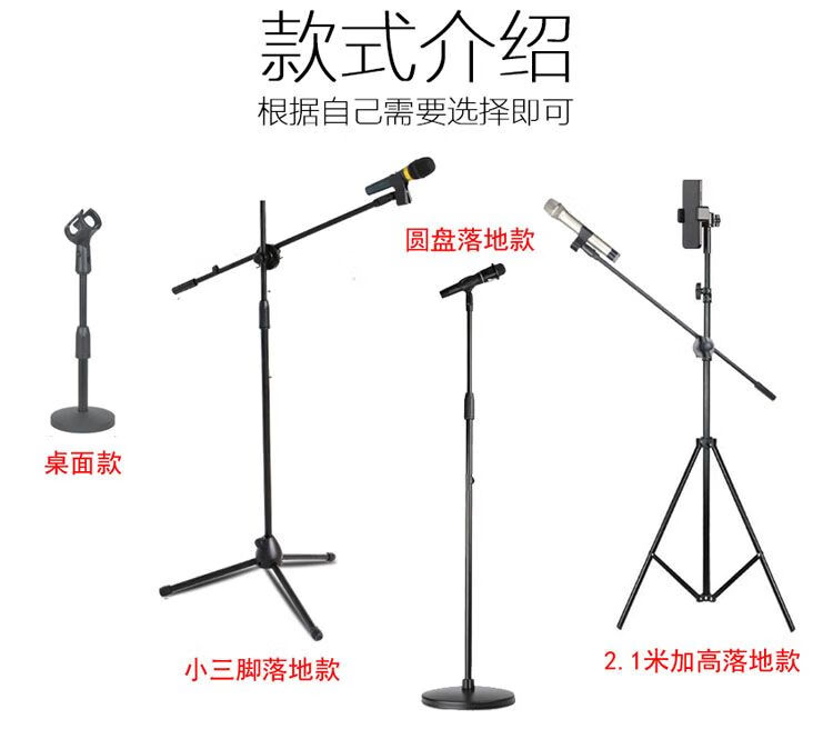 Aoyanlai microphone stand microphone cantilever floor tripod metal telescopic portable mobile phone live broadcast stage karaoke stand black (floor-standing 1.65 meter disc cantilever)