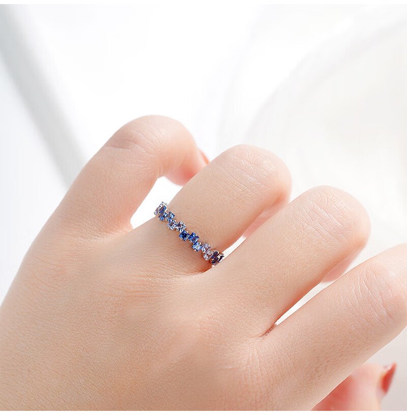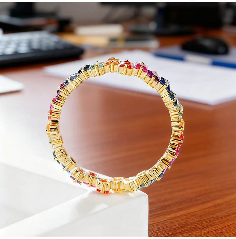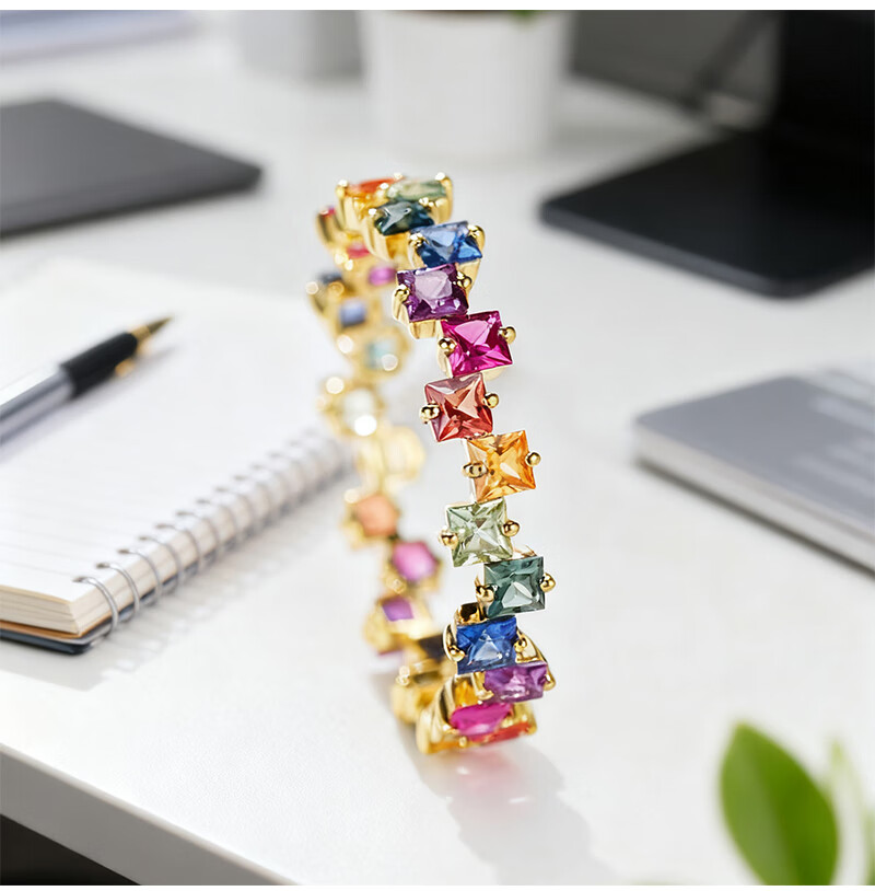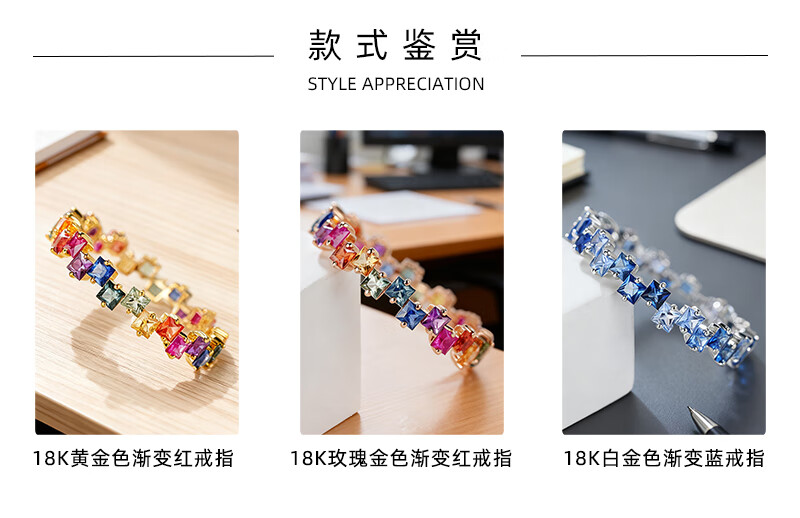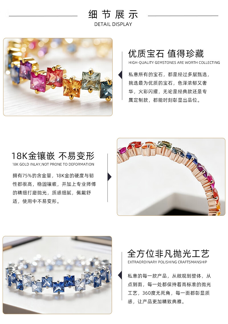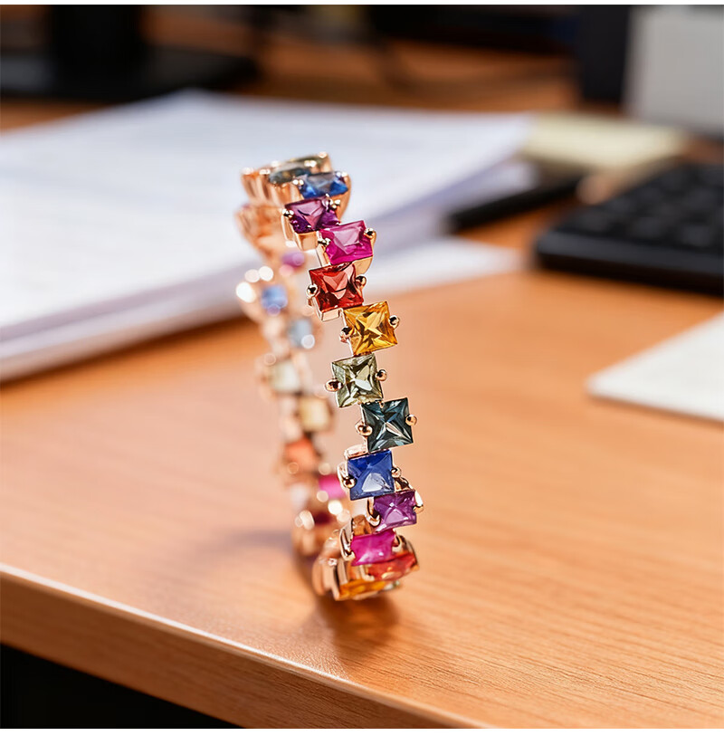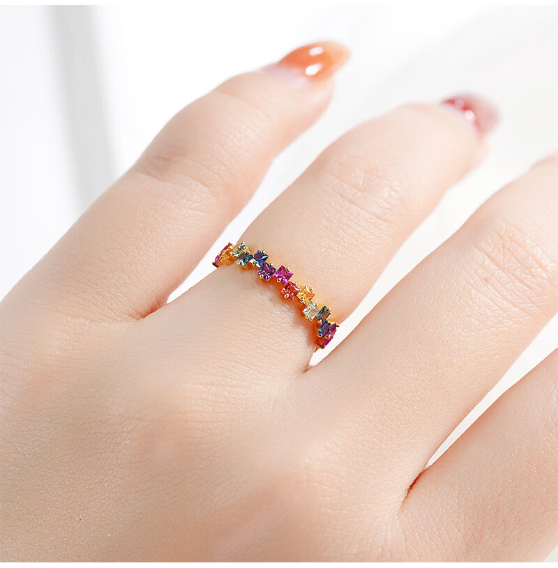 Private jewelry, natural colored gemstone 1.55 carat rainbow sapphire ring, 18K gold fashionable small sugar cube ring, rainbow color (18K yellow), ring number can be customized