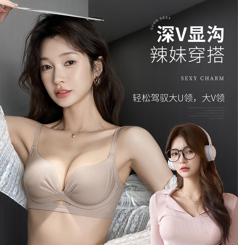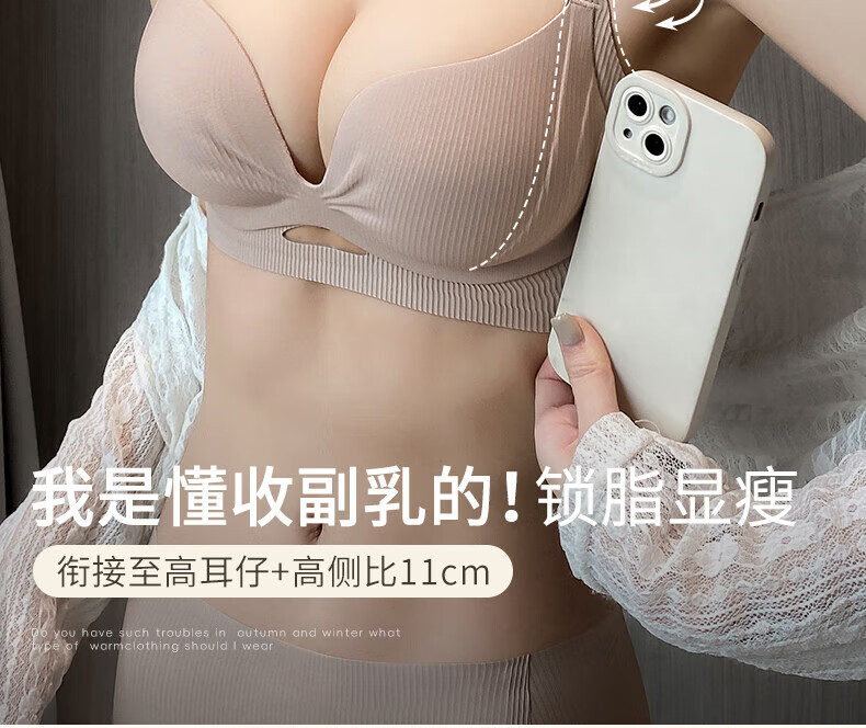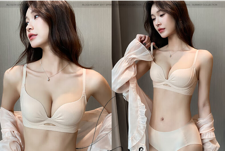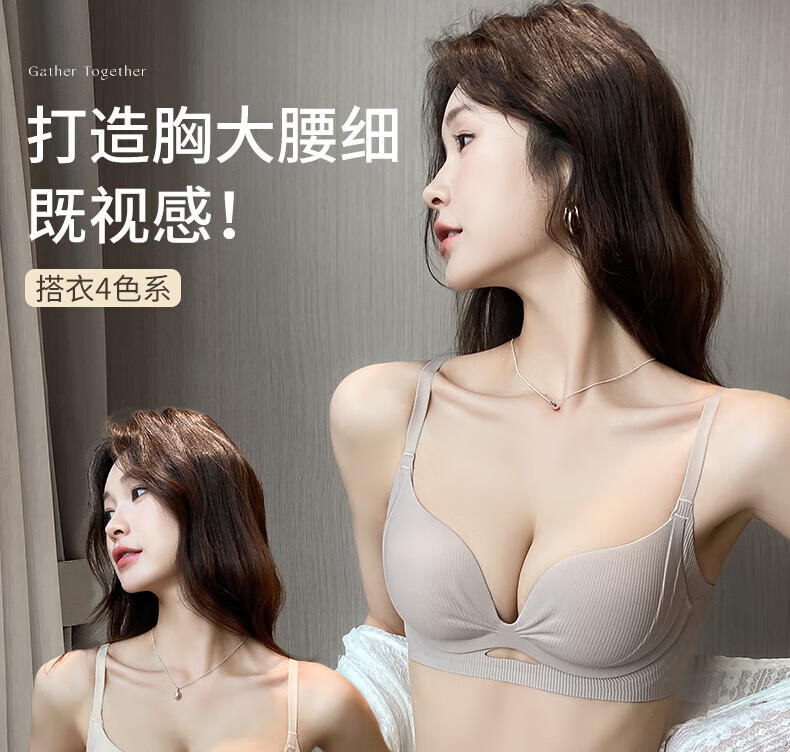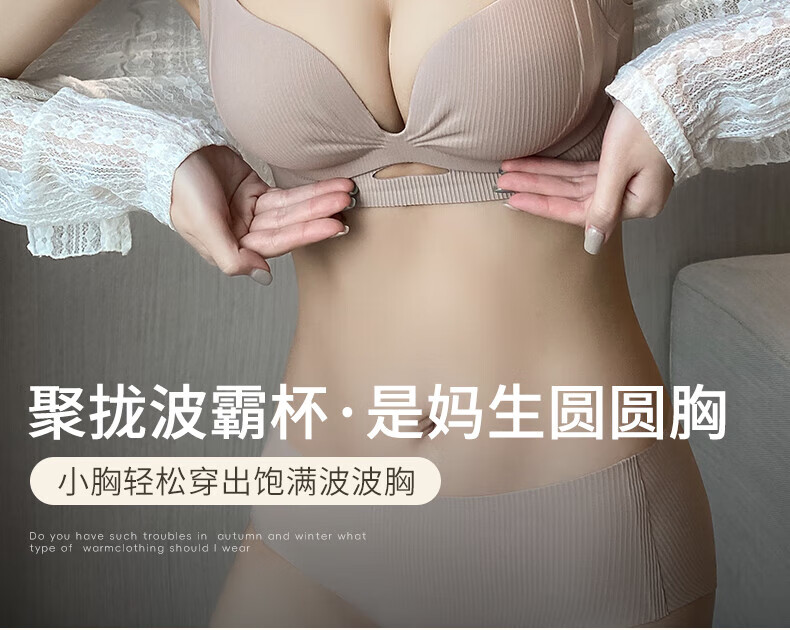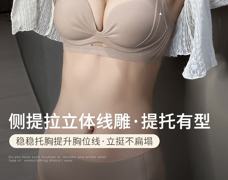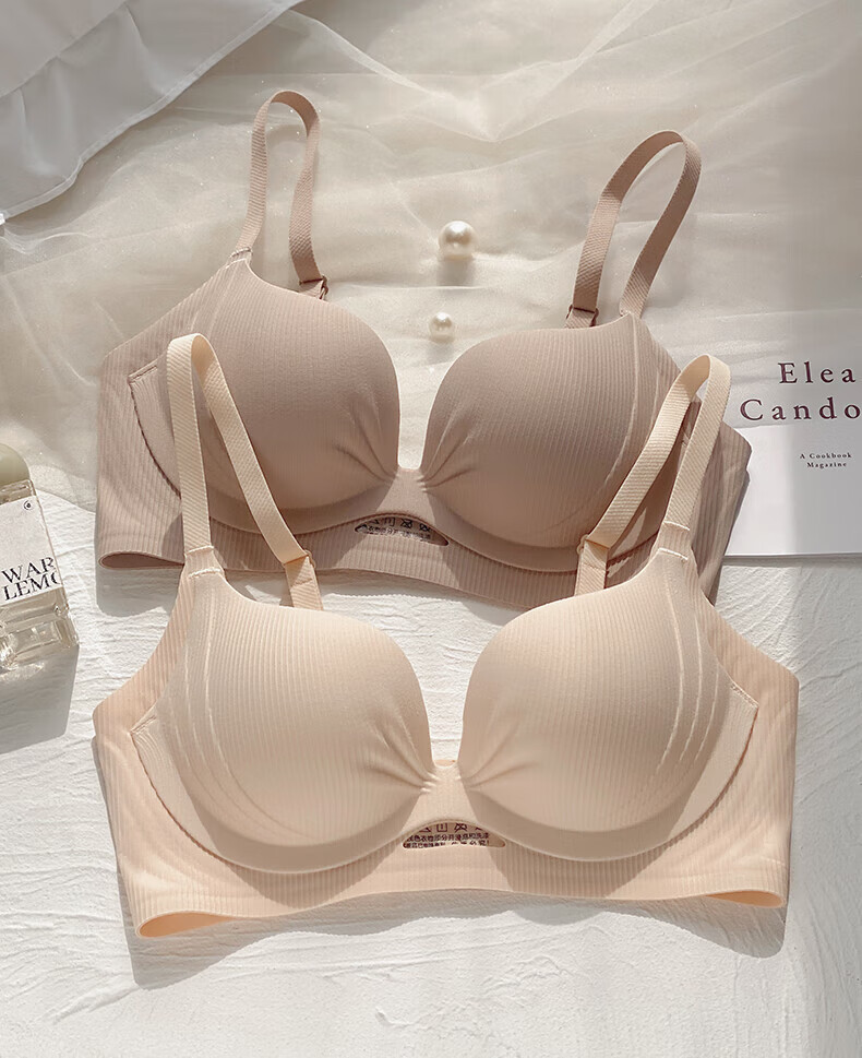 Duoqingmao (DUOQINGMAO) 2025 thin underwear for women, small breast push-up, secondary breast anti-sagging, brand genuine bra set, light coffee suit, push-up 1.8cm 70B (recommended 32/70AB)