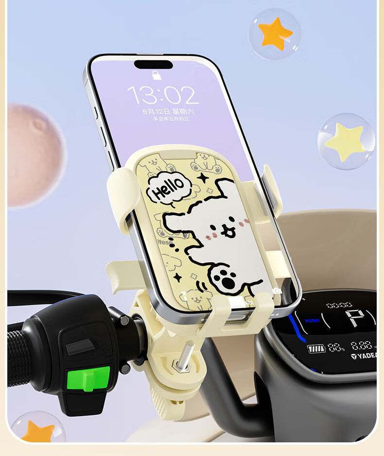 Preferred 2025 New Electric Vehicle Mobile Phone Holder Cartoon Cute Bicycle Motorcycle Shockproof Navigation Fixed Bracket Women's Handlebar Model Upgraded With Hook Second Pickup Second Put Hello Dog
