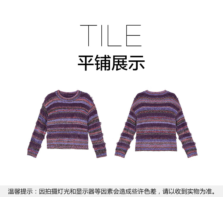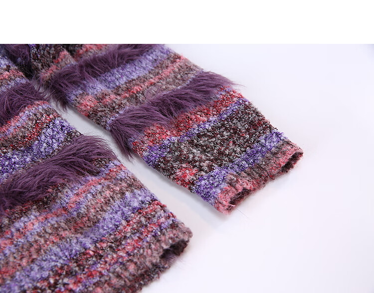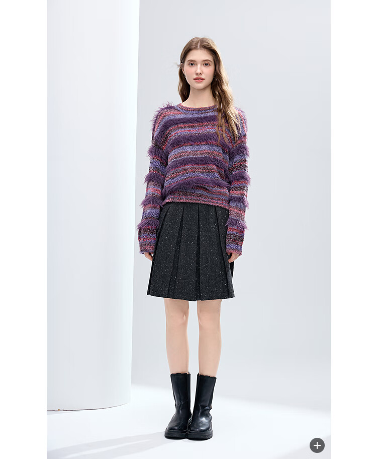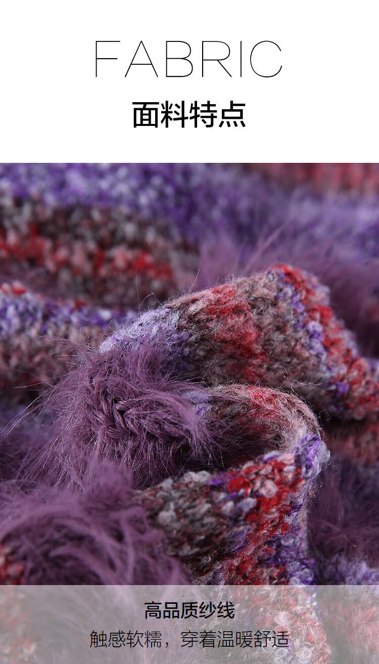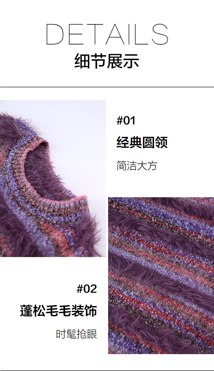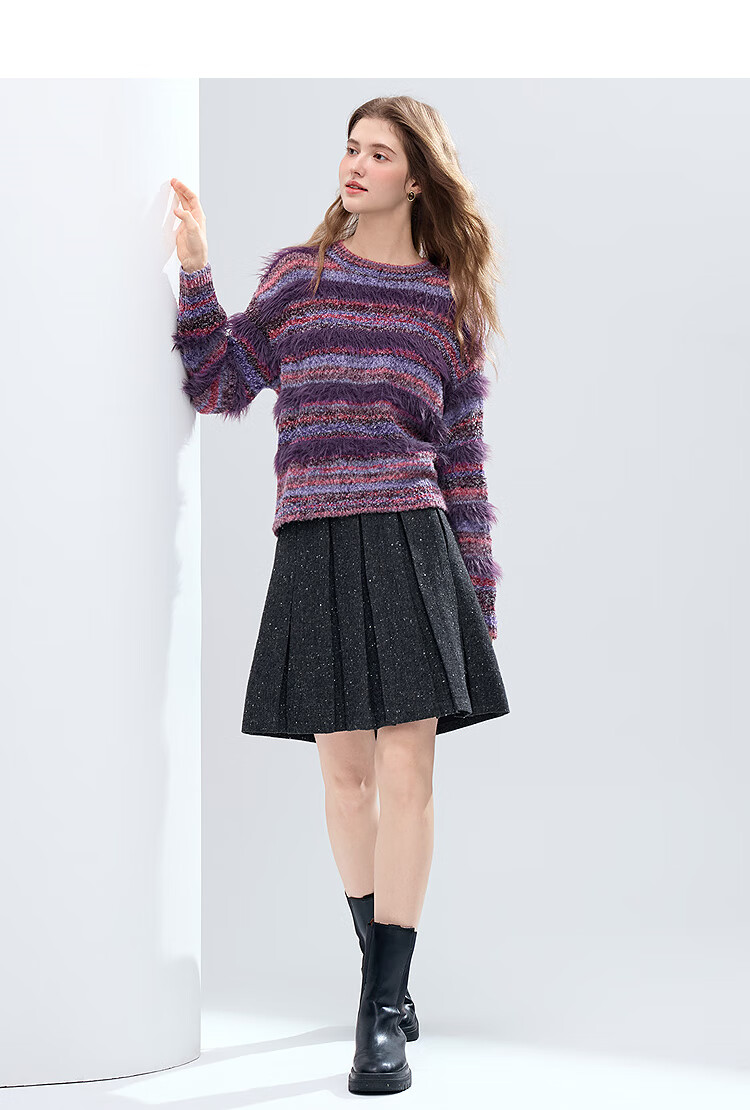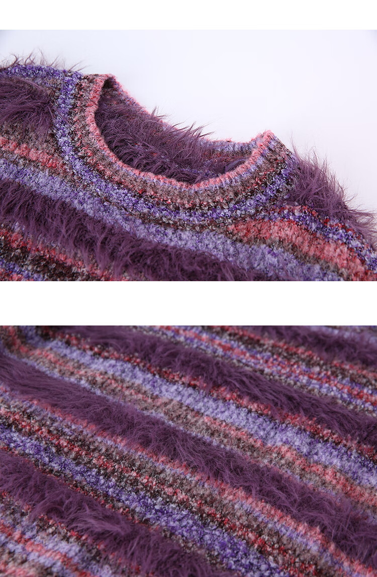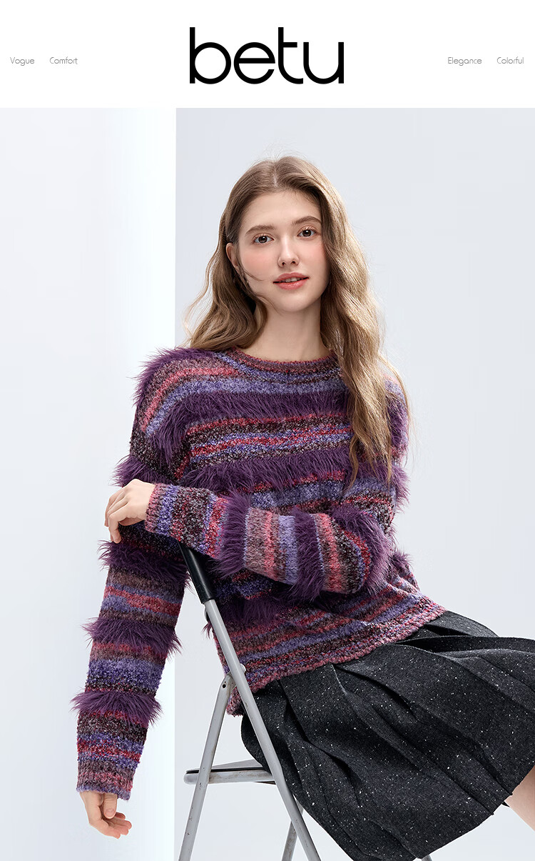 Betu Women's 2025 Winter New Sweater Round Neck Gradient Stripe Plush Decoration Slim Top Women 2511T43 Dark Purple M