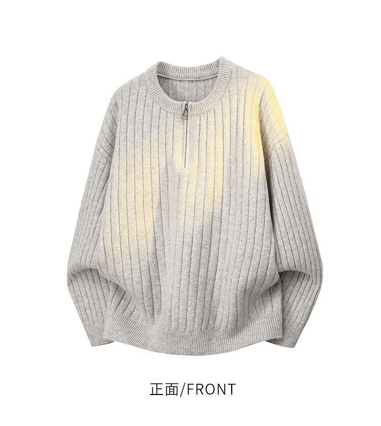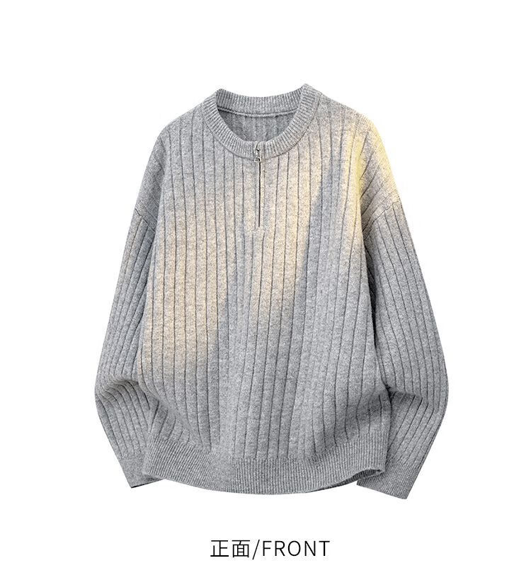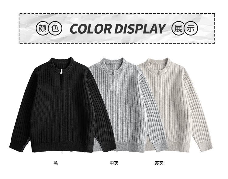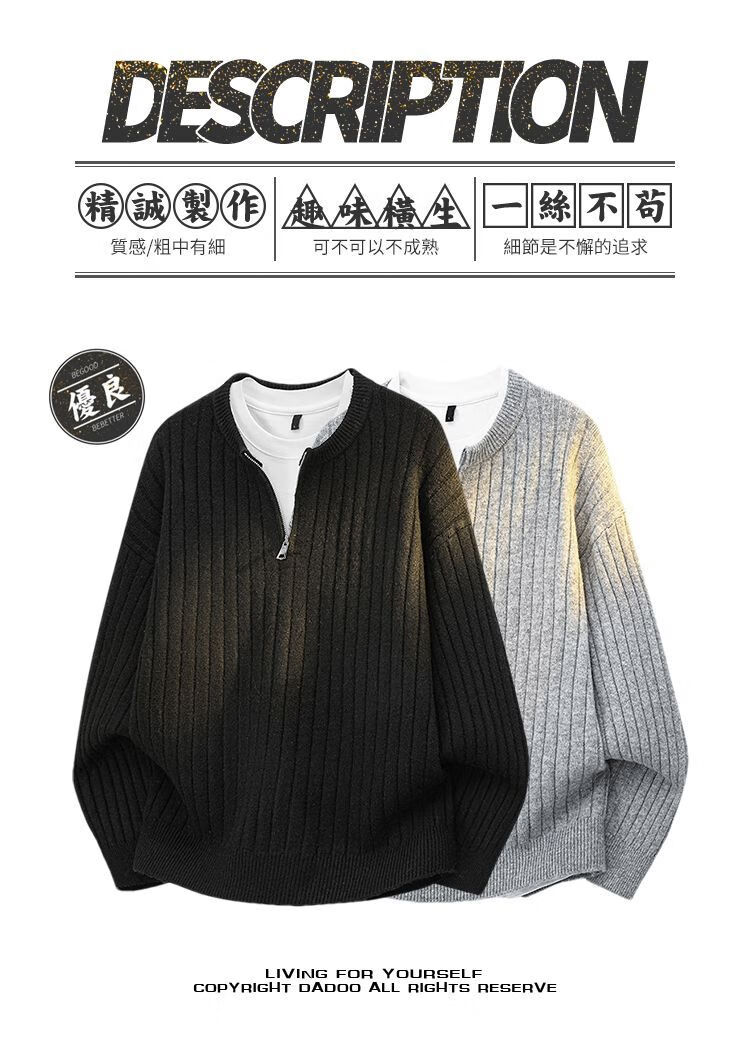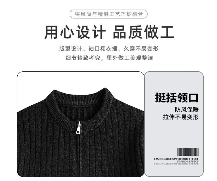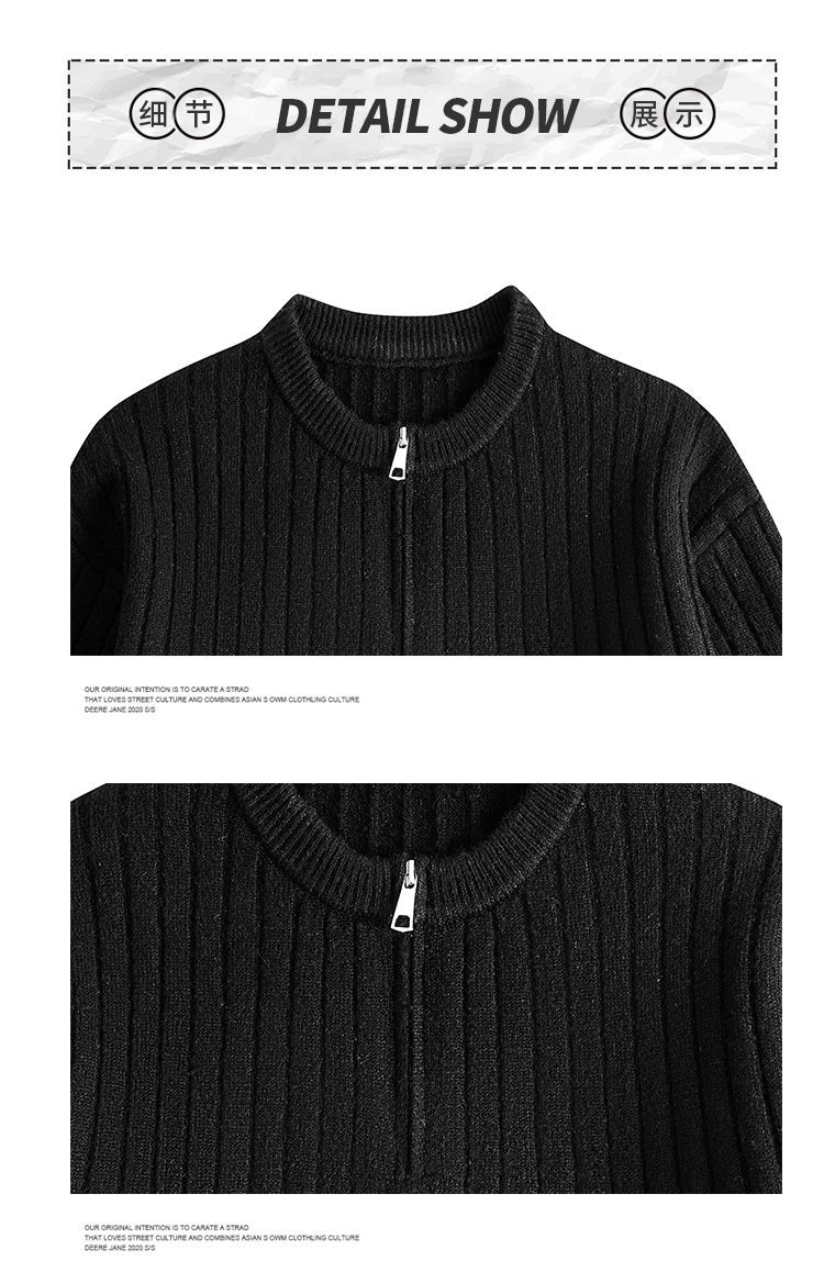 PANMAX American Henley collar hemp pattern sweater men's autumn and winter lazy sweater with heavy zipper sweater black M recommended 80-110Jin Jin equals 0.5 kg