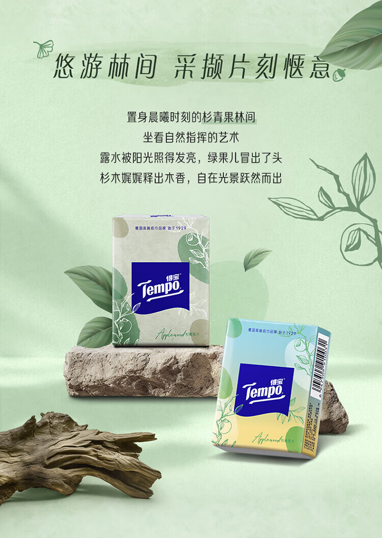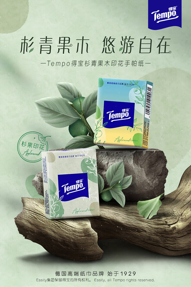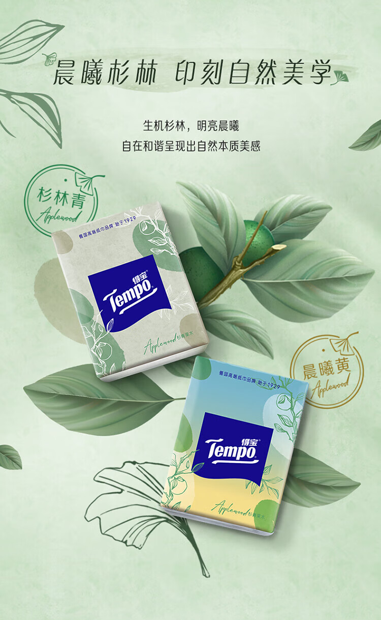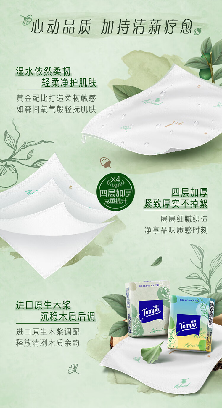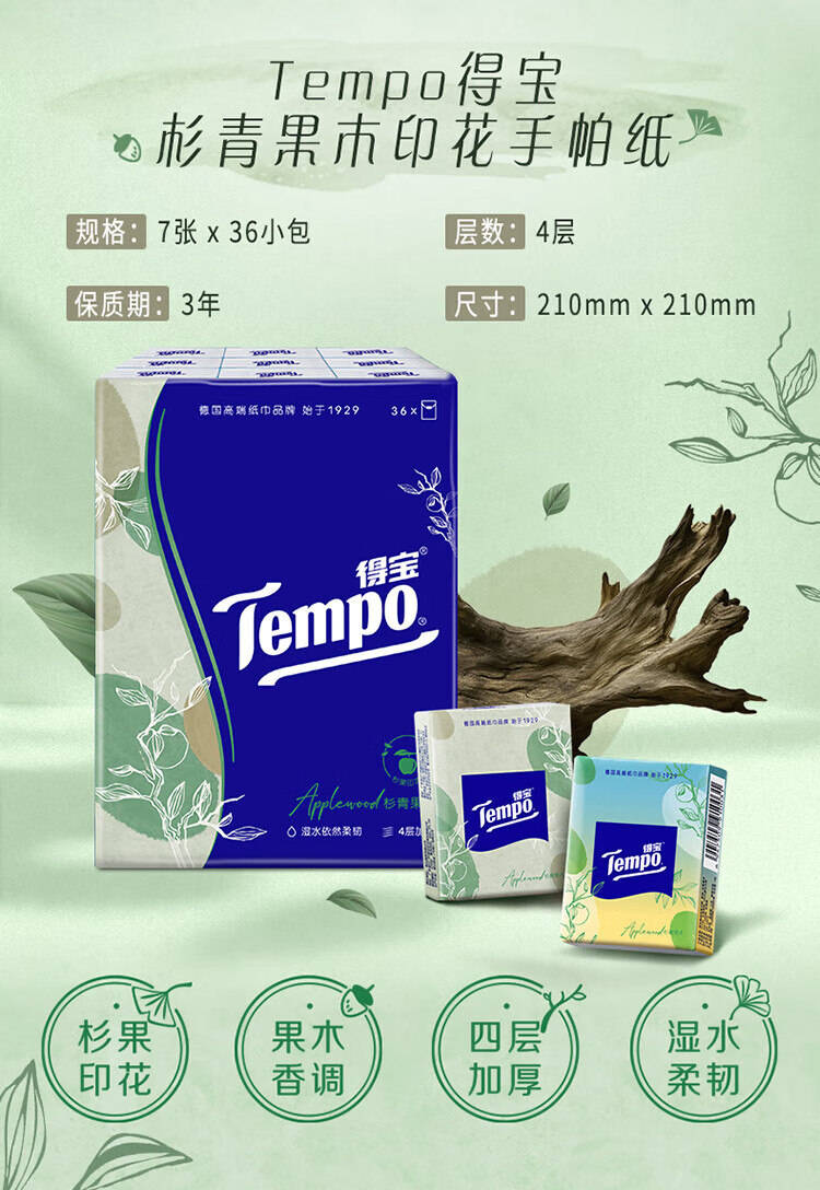 TEMPO Yibo same style handkerchief paper, portable tissue paper, apple wood fragrance, 4 layers, 7 sheets * 12 packs, will not break when wet, paper towel packet, apple wood fragrance, 4 layers, 7 sheets * 12 packs