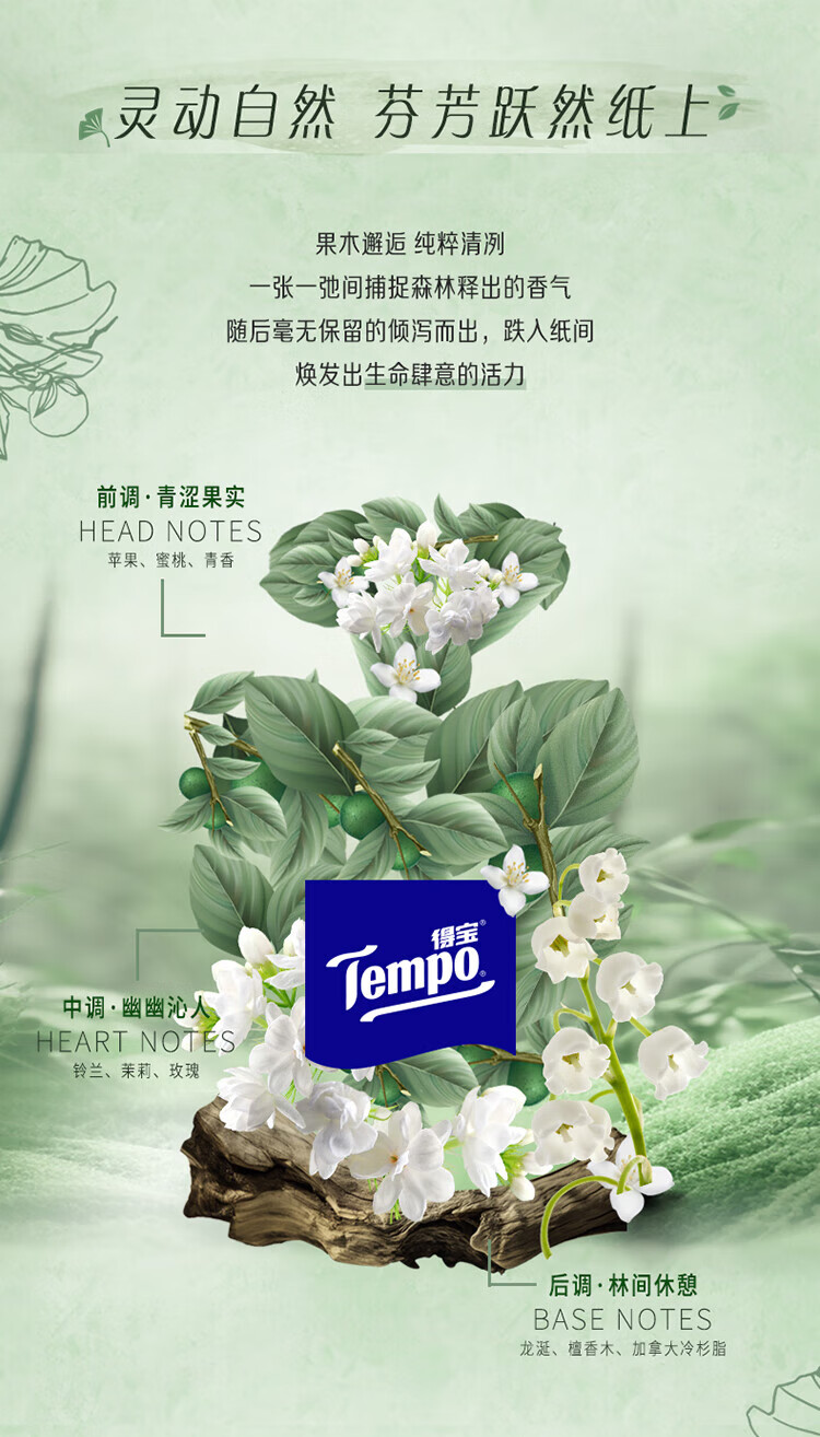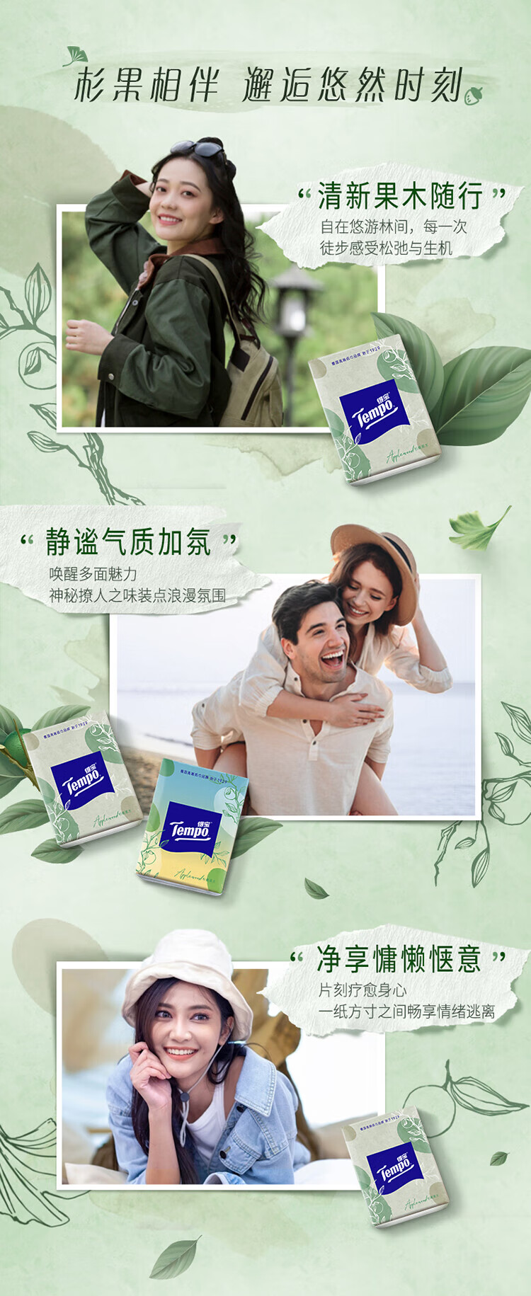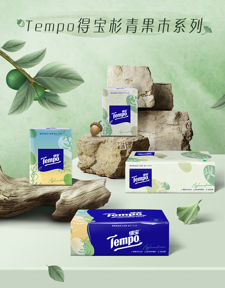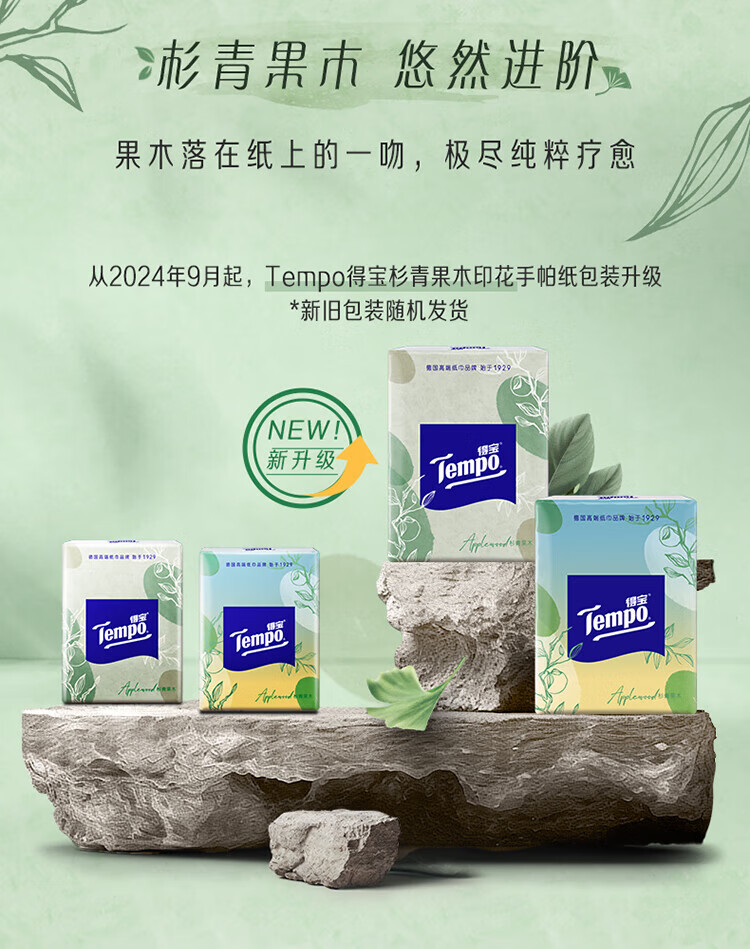 TEMPO Yibo same style handkerchief paper, portable tissue paper, apple wood fragrance, 4 layers, 7 sheets * 12 packs, will not break when wet, paper towel packet, apple wood fragrance, 4 layers, 7 sheets * 12 packs