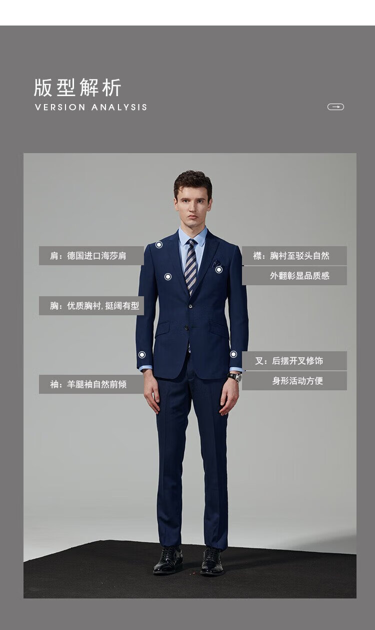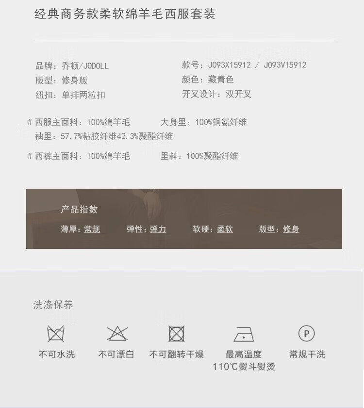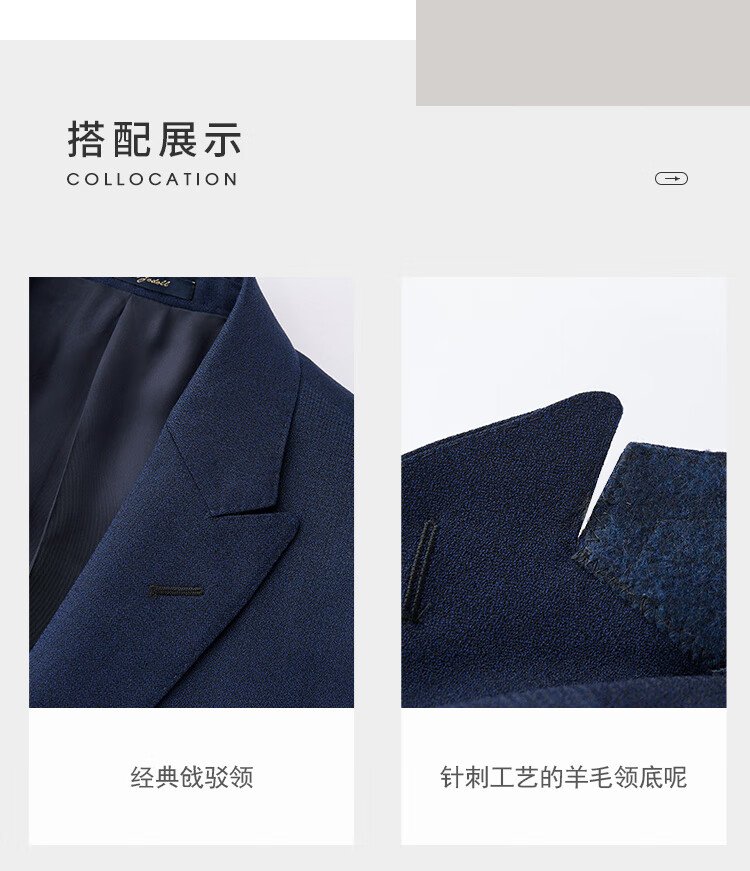JODOLL Men's 25 Autumn 100% Sheep Wool Suit Business Formal Workplace Versatile Peaked Collar Set Navy Navy XL 52A / Pants Size Remarks Inventory Details Contact Customer Service