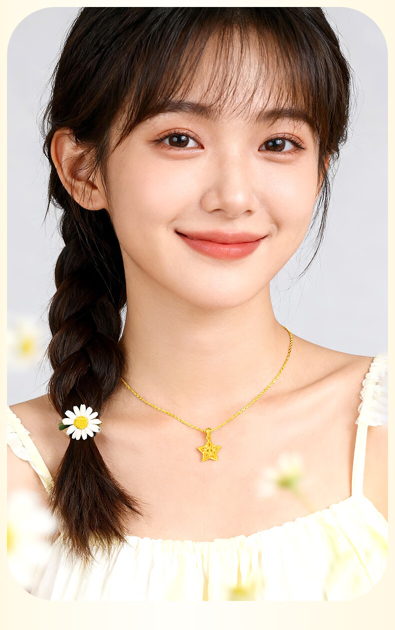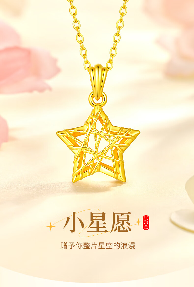 CHINA GOLD star 18k gold necklace female gold pendant jewelry birthday Christmas gift for girlfriend and wife to commemorate practical 18k star wish pendant + K gold chain