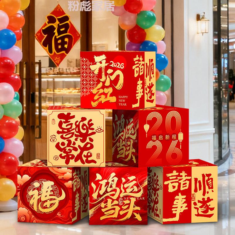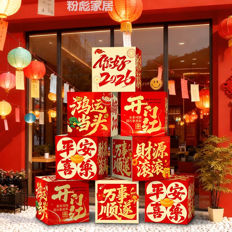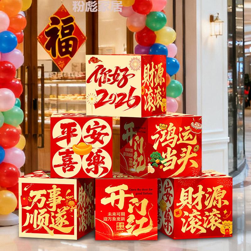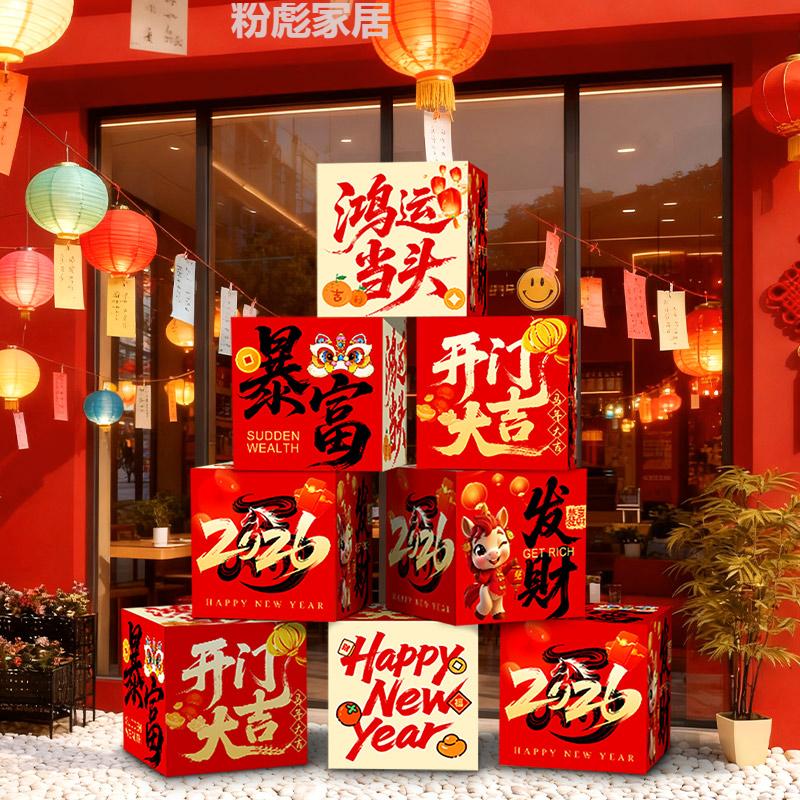 IGIFTFIRE2026 New Year's Day of the Year of the Horse, a good start to the new year, decorating the atmosphere, company, workplace, shop floor, stacking boxes, ornaments and props, 8 pieces, good luck + wealth