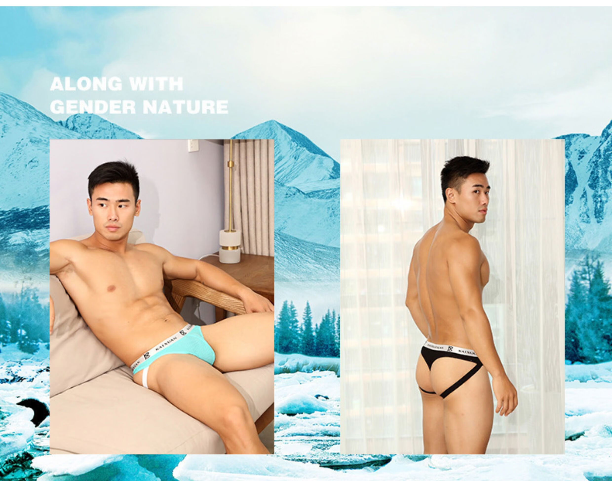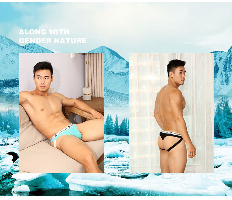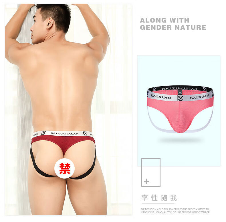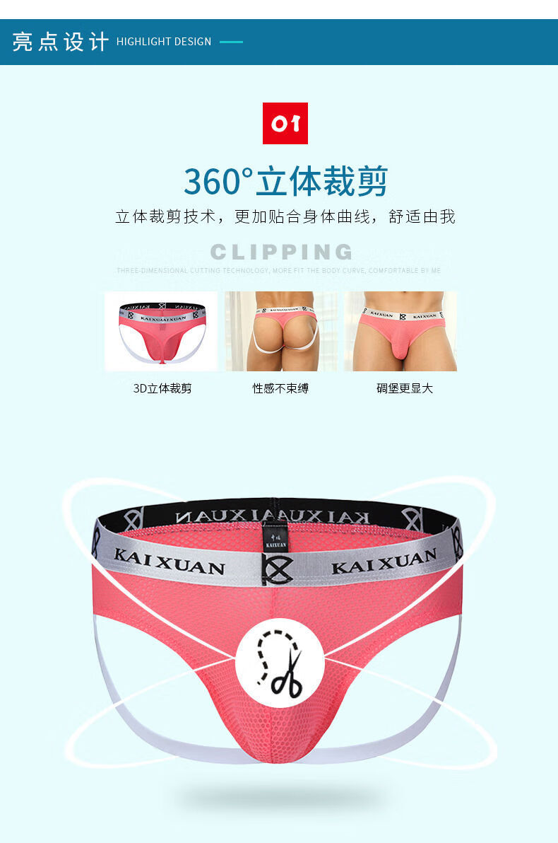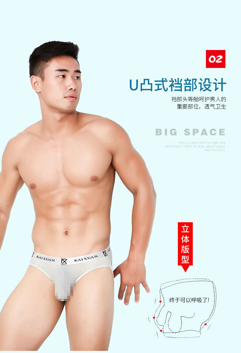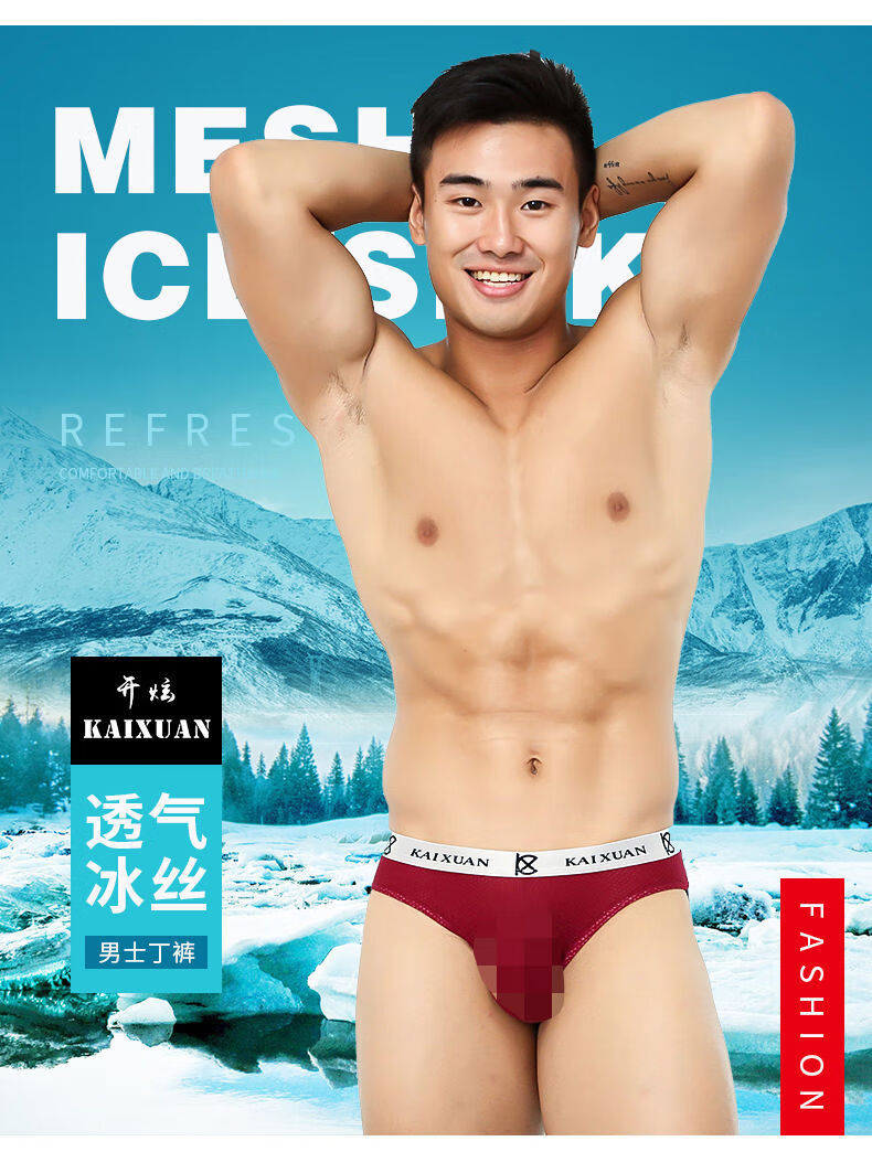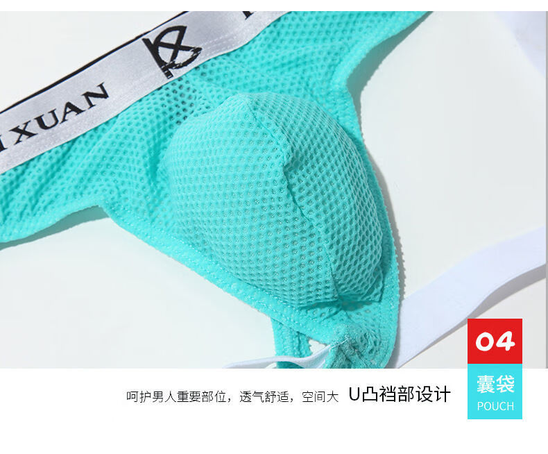 Men's underwear sexy pure desire triangle hot thong hip clip male U convex ice silk mesh low waist double thong head black S S